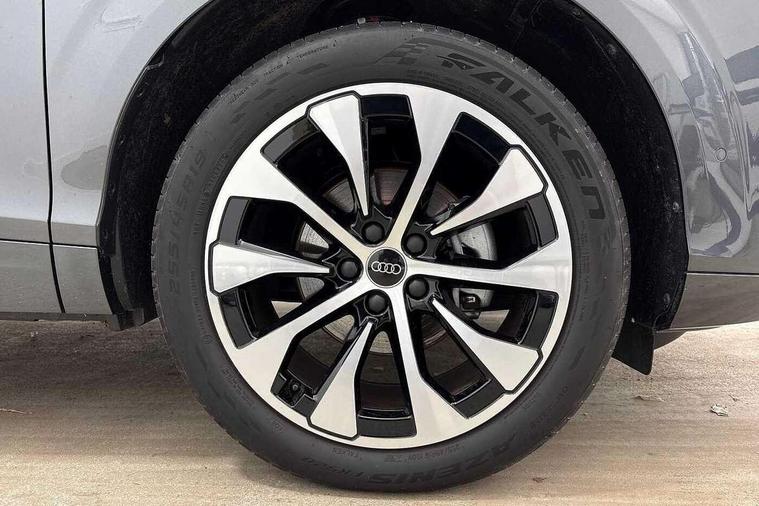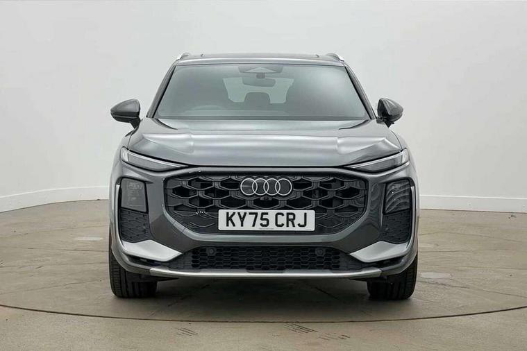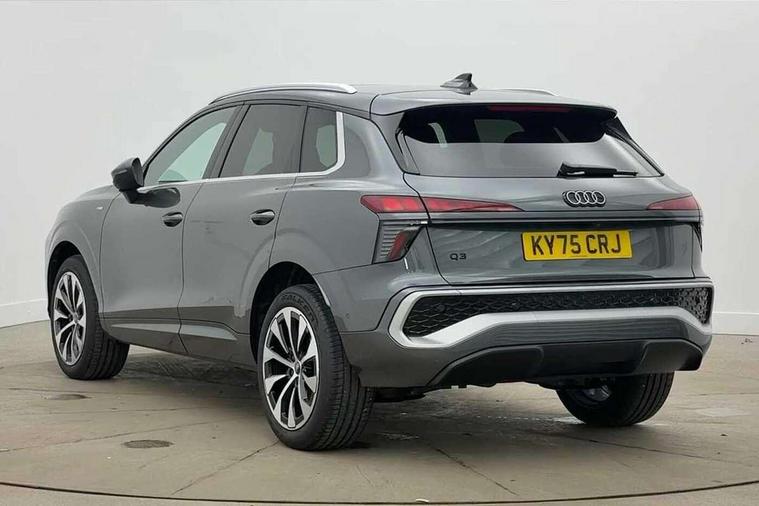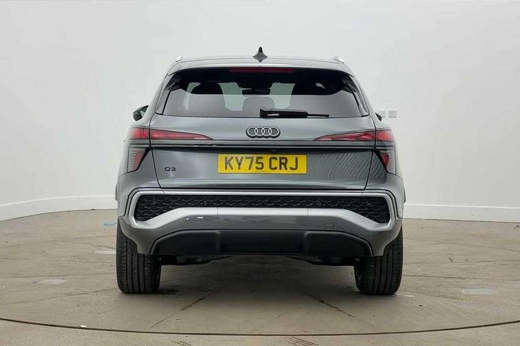 Adaptive cruise control, Audi connect emergency call and service, Audi connect remote and controls, Audi drive select (Balanced/Individual, effeciency, comfort and dynamic), Audi virtual cockpit plus - 11.9" display, Bluetooth interface, Camera based traffic sign recognition, Driver attention and fatigue monitor with driver monitoring, Front cross traffic assist, Lane departure warning with emergency assist, Panoramic curved display with 12.8" MMI navigation plus and MMI touch, Park assist plus with parking system and 360 display, Phonebox light with wireless charging, Reversing camera, Smartphone interface includes wireless Apple carplay/Android Auto, Start/stop system, Swerve assist and turn assist, Traffic sign based speed limiter, Voice control system with natural language interaction, Comfort suspension, Petrol Particulate Filter, 2 USB-C ports with charge and data functions, Audi sound system with 10 loudspeakers, subwoofer, 8 channel amplifier with 260 watts, DAB digital radio module, Acoustic glass for front door windows, Acoustic windscreen, Aluminium roof rails, Aluminium window trim, Audi Q3 lettering on the B-pillars, Auto dimming door mirrors, Auto dimming rear view mirror, Body colour door mirrors, Contrasting finish in volcano grey, Electrically folding, adjustable and heated door mirrors with integrated LED side indicators and kerb view function for passenger side, Full paint finish, Illuminated door sills with aluminium inserts at the front with S logo, LED daytime running lights, LED headlights plus with LED rear lights pro with continous light strip, illuminated Audi rings, rear, LED third brake light, Loading sill protector in stainless steel, Main beam assist, Privacy glass - dark tinted rear window, rear door and side windows, Projection light in the exterior mirrors - Projects a graphic element onto the ground, Q3 badging on the rear, Rain and light sensors, Rear side wing doors, Rear window, rear door windows and rear side windows in clear glass, Rear wiper, Sports bumpers, 3 seat bench in 2nd row, 3 spoke flat top and bottomed leather multi function sport steering wheel with gear shift paddles and "S" badging, 3-zone deluxe automatic air conditioning, 4 way lumbar support for the front seats - electric with horizontal and vertical adjustment in four directions, Black cloth headlining, Front and rear floor mats, Front and rear headrests, Front centre armrest, Heated front seats, Height and reach adjustable steering wheel, Interior storage compartment, Leather/artificial leather upholstery combination with S emblem + front sports seats, Luggage compartment lid, electrically opening and closing, Manual front seats with height adjustment, Rear seat bench plus with split folded 40:20:40, Single front passenger seat, Stainless steel pedals, Steering wheel operating unit, gloss black, Storage compartment in front centre console, Ambient lighting package pro - Q3, S line exterior styling pack - Q3, 3x3 point rear seatbelts, Convenience key with safelock, Driver and front passenger airbag with passenger airbag deactivation, Electromechanical parking brake, Electronic stabilisation control including ABS, ASR and EDL, First aid kit with warning triangle and high visibility vests, Front emergency brake assist, Hill hold assist, i - Size child seat mounting on the front passenger side and i - Size and top tether on the outer rear seats, Power operated child locks, Seatbelt monitoring, Three point automatic belts with belt tensioner and height adjustment, Tyre pressure loss indicator, Anti theft wheel bolts, Remote central locking, Thatcham approved category 1 anti theft alarm, Dark aluminium divergence inlay, Interior elements in dinamica microfibre, Interior trims in aluminium look, Tool kit and Jack,
