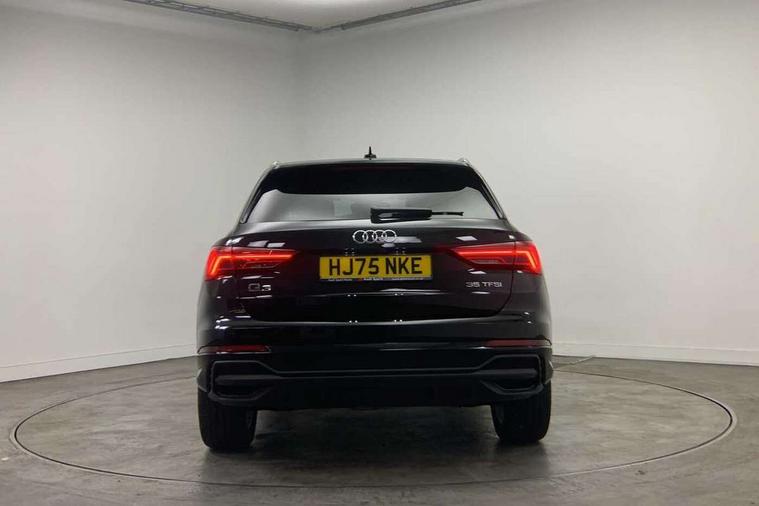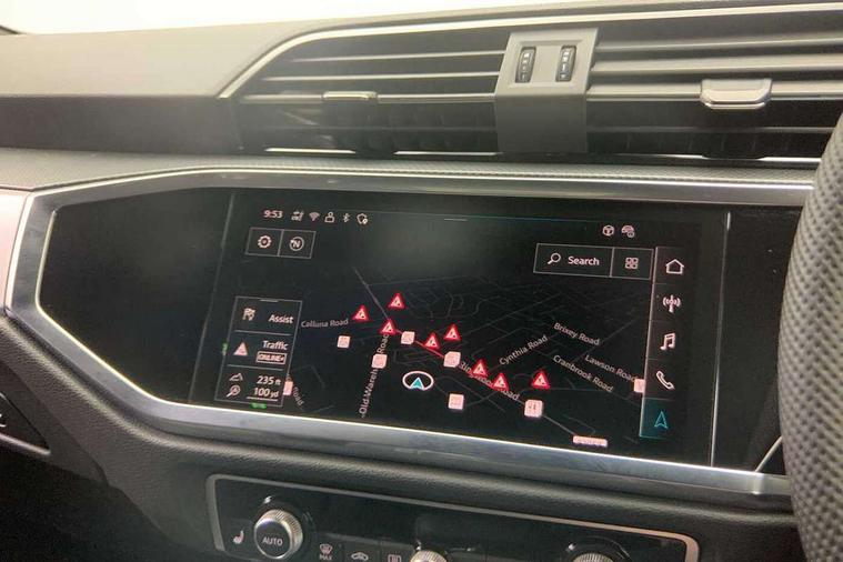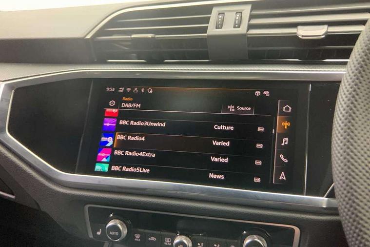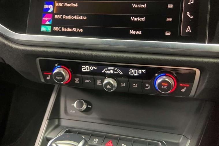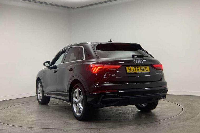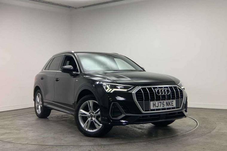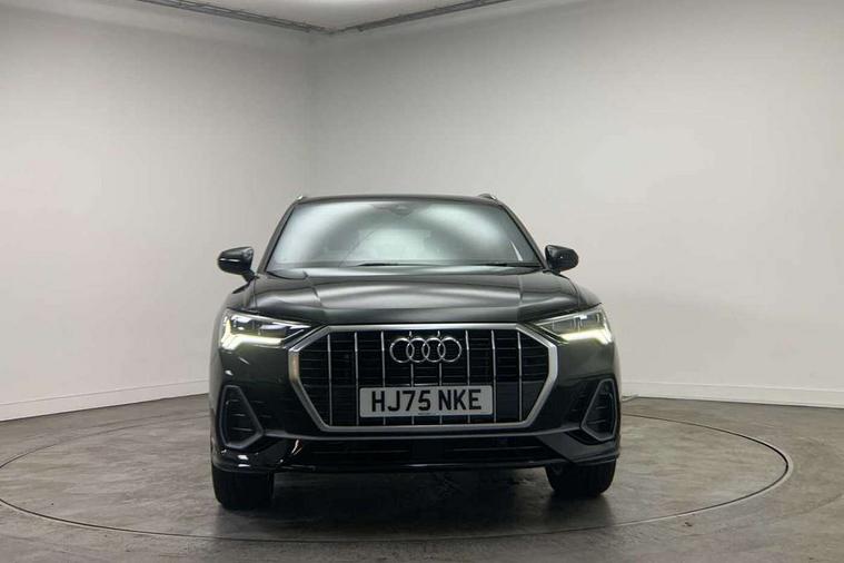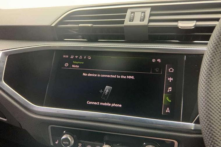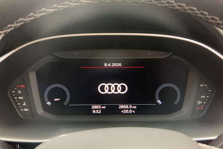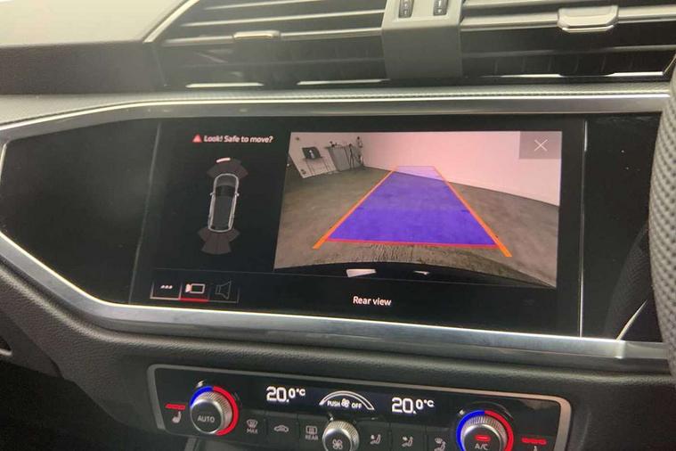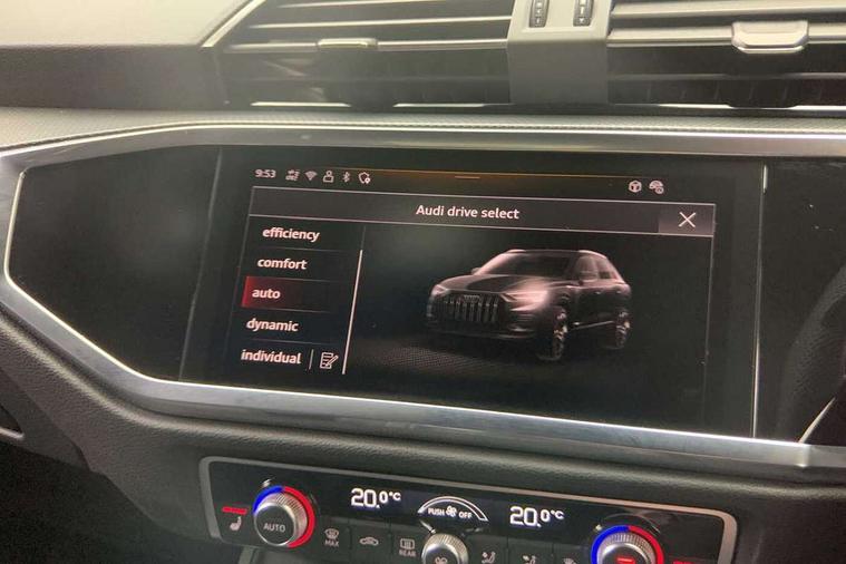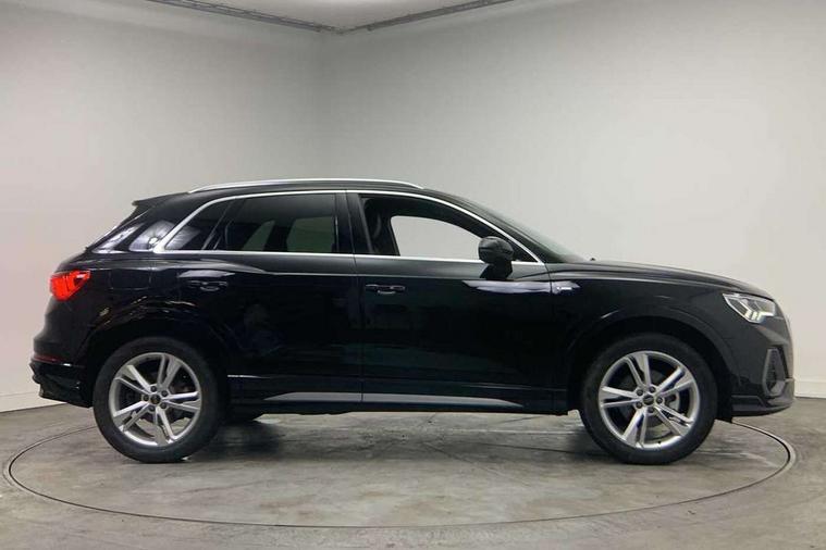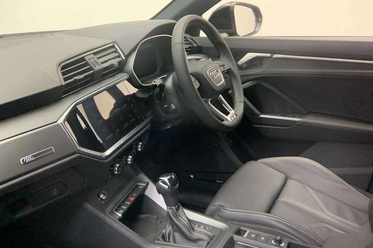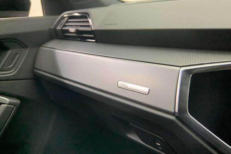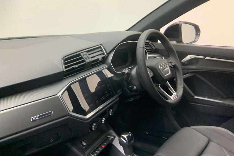 Amazon alexa Integration, Audi connect safety and service, Audi drive select, Audi lane departure warning, Audi Virtual Cockpit - 10.25" display, Bluetooth interface, Camera based traffic sign recognition, Distraction and Fatigue warning, Legal emergency call, MMI Navigation Plus with high resolution 10.1 inch touchscreen colour display, Power operated tailgate, Progressive steering, Service interval indicator, Smartphone interface includes wireless Apple carplay/Android Auto, Start stop system with recuperation, Voice control system with natural language interaction, Sports suspension, 2 USB-C ports with charge and data functions, 6 passive loudspeakers, DAB digital radio module, Acoustic windscreen, Aluminium roof rails, Aluminium window trim, Anthracite black radiator grille, Auto dimming door mirrors, Auto dimming frameless rear view mirror, Body colour front spoiler blade, Electrically folding, adjustable and heated door mirrors with integrated LED side indicators and kerb view function for passenger side, Front and rear electric windows, Front fog lights, Front side air inlets in matt platinum grey, Grille vertical bars in aluminium silver/Matt, High gloss black finish B and C pillars, LED Dynamic rear indicators, LED headlights with LED daytime running lights, LED rear lights, LED third brake light, Privacy glass dark tinted rear and rear-side windows (from B-pillar backwards), Rain and light sensors, Rear diffuser grille in grained matt black, Rear diffuser strip in matt anthracite black, Rear side wing doors, Rear wiper, S line badges on front wings, S Line front and rear bumpers and side skirts, Side skirt insert in matt Platinium grey, Variable front intermittent wipers, 12V socket in rear centre console, 3 seat bench in 2nd row, 3 spoke leather multifunction steering wheel features S badging and grips in perforated leather with contrast stitching, 40:20:40 folding with manual adjustment for 60:40 forwards/backwards position and backrest angle, Adjustable rear seat bench/backrest with centre armrest and cupholder, Black carpet mats, Black cloth headlining, Dual zone electronic climate control, Electric lumbar support, Front and rear black floor mats with contrast stitching in rock grey, Front and rear headrests, Front centre armrest, Height and reach adjustable steering wheel, Horizontal trim strip in matt platinum grey, Illuminated door sill trims with S logo, ISOFIX child seat mounting for front passenger with airbag deactivation and outer rear seat including top tether attachment point for outer rear seats, Luggage compartment sill protection in stainless steel, Manual front seats with height adjustment, Perforated leather gearknob, Single front passenger seat, Stainless steel pedals, Twin leather upholstery with front sport seats + S embossing, Non smoking pack - Q3, 3x3 point rear seatbelts, 6 airbags - Driver, front passenger, curtain and side windows, Audi pre-sense front with pedestrain and cyclist recognition, Electrically operated child locks on rear doors, Electromechanical parking brake, Electronic stabilisation control including ABS, ASR and EDL, Front seatbelt reminder, Hill descent control, Hill hold assist, Pre sense basic, Seatbelt monitoring, Tyre pressure warning, Warning triangle and first aid kit, Anti theft wheel bolts, Immobiliser, Remote central locking, Thatcham approved category 1 anti theft alarm, Aluminium look interior elements, Dark matt brushed aluminium inlay, Detail dashboard around MMI touch colour display in glass look, black with surround in aluminium look, Leatherette door armrest,