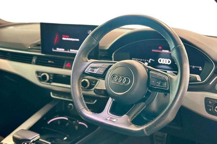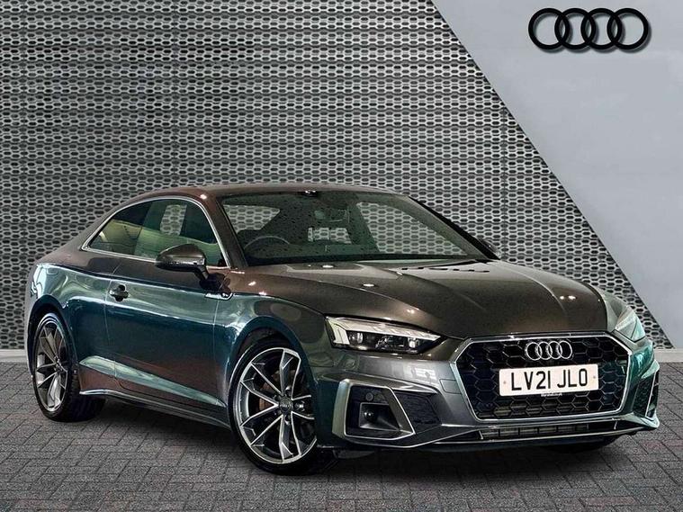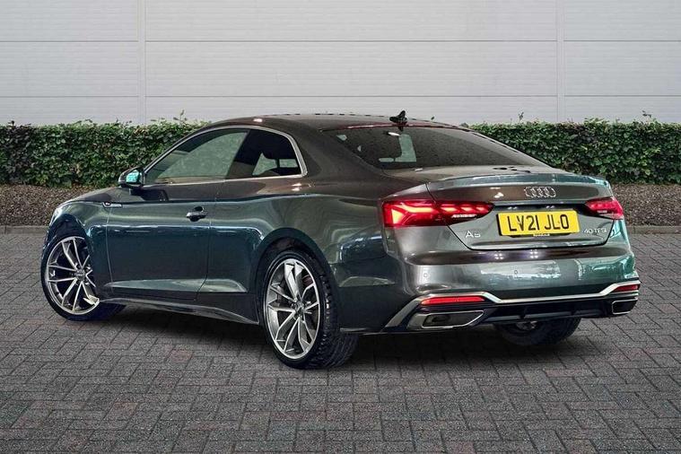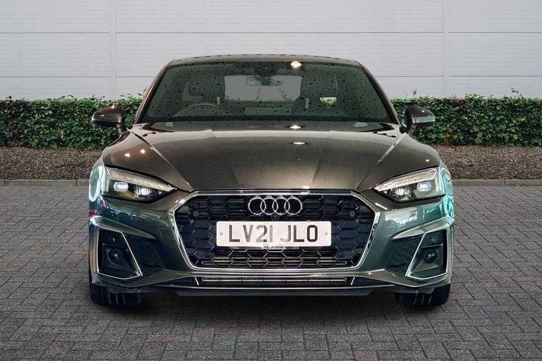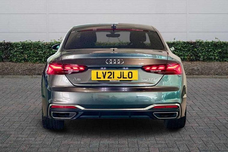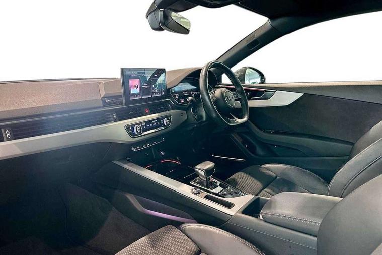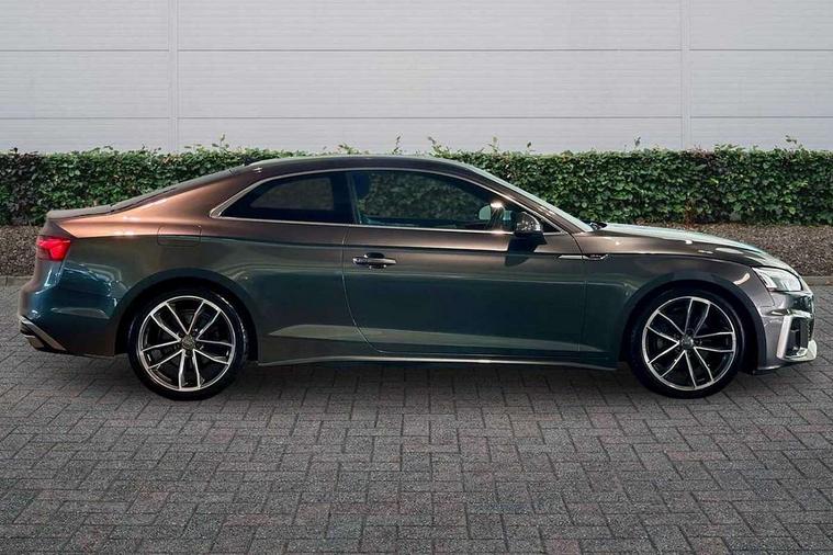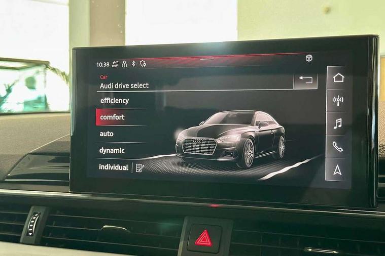 Audi connect safety and service (e-call), Audi connect with Amazon Alexa Integration, Audi drive select (Auto, Comfort, Dynamic, Efficiency and Individual), Audi parking system plus with front and rear sensors, Audi phone box with wireless charging, Audi smartphone interface, Audi virtual cockpit - 12.3" full colour digital instrument cluster, vehicle/engine speed, Radio/media information+Driver assistance systems, Automatic start-stop system with coasting functionality and efficiency programme, Bluetooth interface, Electric boot lid release, Electro-mechanical power steering, Email, calendar and text messages displayed via MMI, MMI nav+ with MMI touch - 10.1" high resolution MMI display, touch sensitive, 3D map, route/country info, dynamic route guide, personal route assist, Rear view camera, Service interval indicator, Voice control system, Sports suspension lowered by 23mm, 8 passive loudspeakers, CD player, DAB digital radio reception, Two additional USB ports for rear passenger in rear centre console, Two SDXC card slots, Audi matrix LED headlights with LED rear lights + dynamic front and rear indicators, Auto dimming rear view mirror, Body colour bumpers, Body colour door handles, Body colour front spoiler lip, Body colour side sill trim, Body coloured door mirrors, Electric adjustable heated door mirrors, Electric folding door mirrors, Electric front windows, Front fog lights, Honeycomb structure radiator grille in grained matt black, LED daytime running lights, Matt aluminium silver tailpipe trim, Privacy glass, Rain and light sensors, S line badges on front wings, S line front and rear bumpers with side skirts, S Line rear diffuser in matt titanium black with trim strip in matt aluminium silver, Side air inlets in grained matt black with matt aluminium silver inlay, Windscreen with acoustic glazing, 4 way electric lumbar support for driver and front passenger, 40/20/40 split folding 2 seater rear seat bench with rear centre armrest, Adjustable steering column, Black cloth headlining, Black perforated leather gearknob, Contrast stitching on seats, steering wheel and gear lever gaiter, Deluxe 3 zone electronic climate control, Front centre armrest, Front head restraints, Front/rear floor mats, Heated front seats, Illuminated door sill trim with S logo, ISOFIX child seat mounting and top tether, Luggage compartment mat, Manual seat adjustment, Rear headrests, Stainless steel pedals, Sunvisors with vanity mirrors, Tool kit, LED interior light pack - A5/RS5, 2 x 3-point rear seat belts, 6 airbags - Driver, front passenger, curtain and side airbags, Electromechanical parking brake, Electronic Stabilisation Control (ESC) including ABS, ASR and EDL, Front passenger airbag deactivation, Height adjustable front seatbelts, Hill hold assist, Multi collision brake assist, Pop-up bonnet for pedestrian protection, Pre sense city, Seatbelt monitoring, Tyre pressure warning, Variable restraint system, Warning triangle and first aid kit, Anti theft alarm system, Anti theft wheel bolts, Immobiliser, Keyless Go, Remote central locking, Matt brushed aluminium inlays, Tyre repair kit,