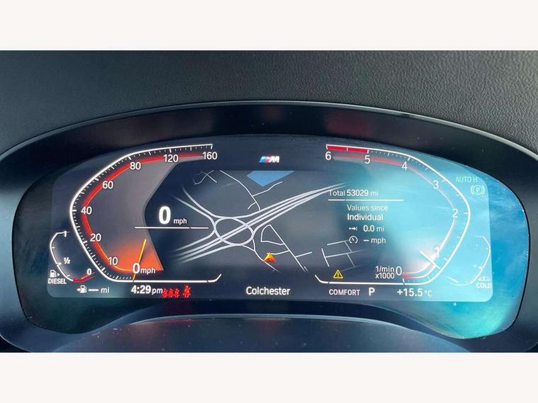 20GB hard disc drive (HDD) memory, Active Guard incl speed limiting and lane departure functions with auto steering, and front collision warning with brake intervention, Average speed gauge, BMW Live Cockpit Professional sat nav system including 10.25" high resolution display and Intelligent Voice Assistant, BMW Online services, BMW remote services, BMW Teleservices, Brake force display, Control display - 10.25" colour touch sensitive display screen, Fuel consumption and range, iDrive touch controller with shortcut buttons, Journey computer, Navigation System Professional Multimedia, Oil sensor for level and grade, On board computer, On-board diagnosis - OBD, Outside temperature display, Personal Profile, Real time traffic information, Service interval indicator, Speed limiting function, Voice control system, Anti roll bar front and rear, Automatic transmission with gearshift paddles, Diesel particulate filter, Drive performance control with ECO PRO comfort + sport mode, Variable vane geometry, Auxiliary input socket, Bluetooth audio streaming, BMW professional radio/CD/MP3, DAB Digital radio, Favourite buttons, Acoustic glazing, Active air stream kidney grille, All round anti-corrosion system, Auto dimming rear view mirror, Body colour door handles, Body coloured bumpers, Body coloured door mirrors, Body coloured side sills, Door handle illumination, Dynamic brake lights with LED technology, Electric front and rear windows with fingertip open/close + anti-trap facility and comfort closing function, Electrically adjustable and heated exterior mirrors includes integrated direction indicators, Follow me home headlights, Heated windscreen washer jets, Interior rear view electrochromatic mirror with automatic anti dazzle function, LED daytime running lights, LED fog lights, Left and right single chrome quadrilateral exhaust tailpipes, M aerodynamic bodystyling, M designation on left and right front side panels, Rain sensor with automatic headlight activation, xDrive designation on tailgate, 12V power socket in front and rear, 12V power socket in rear, 3 Spoke M sports leather steering wheel, Ambient interior lighting with 6 selectable light designs, Battery in luggage with jump start facility, Door sill finishers with BMW designation, Front and rear armrests integrated in door trim + centre console includes storage compartment and rear centre armrest includes 2 cupholders, Front and rear cupholders x 2, Front and rear door sill inlays with illuminated BMW M designation, Front and rear footwell lights, Height and length adjustable steering column and activation via lateral lever on the steering column, Lockable glove compartment with light, M specific floor mats, M specific key, M specific pedals, M specific steering wheel, Multi-function controls for steering wheel, Rear headrests, 3x3 point rear seatbelts, Anti-lock braking system (ABS), Automatic Stability Control (ASC), BMW emergency call, Brake assist function, Brake energy regeneration, Child seat ISOFIX attachment rear outer seats, Cornering brake control (CBC), Crash Sensor - activation of central locking release, hazard warning light and interior lighting, Deformation zones front and rear with door reinforcements and bumpers that regenerate, Driver/front passenger, rear and side airbags, Driver/Passenger airbags (Impact dependent), DSC - Dynamic Stability Control, Dynamic brake control, Dynamic Traction Control - DTC, Electromechanical parking brake with automatic drive away release and auto hold function, Electronic brake force distribution, Engine drag torque control, Front head restraints with anti-whiplash, Front passenger airbag deactivation, Head airbags for first and second row seats, Hill start assist, Seat belts front inertia reel with pyrotechnical belt latch tensioner, belt force limiter and belt restrainer, Side impact protection, Three inertia reel rear seatbelts, Two tone horn, Tyre pressure monitoring system, Warning triangle and first aid kit, Alarm system with remote control and engine immobiliser, Locking wheel bolts, Remote central locking,