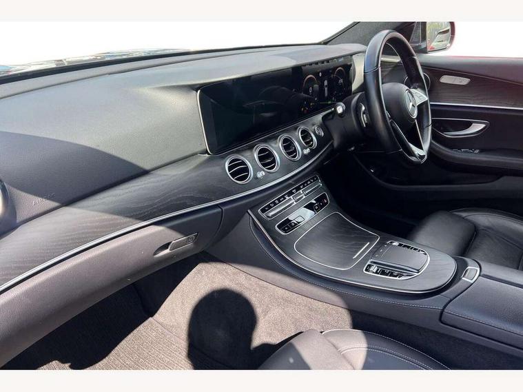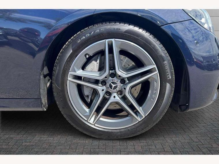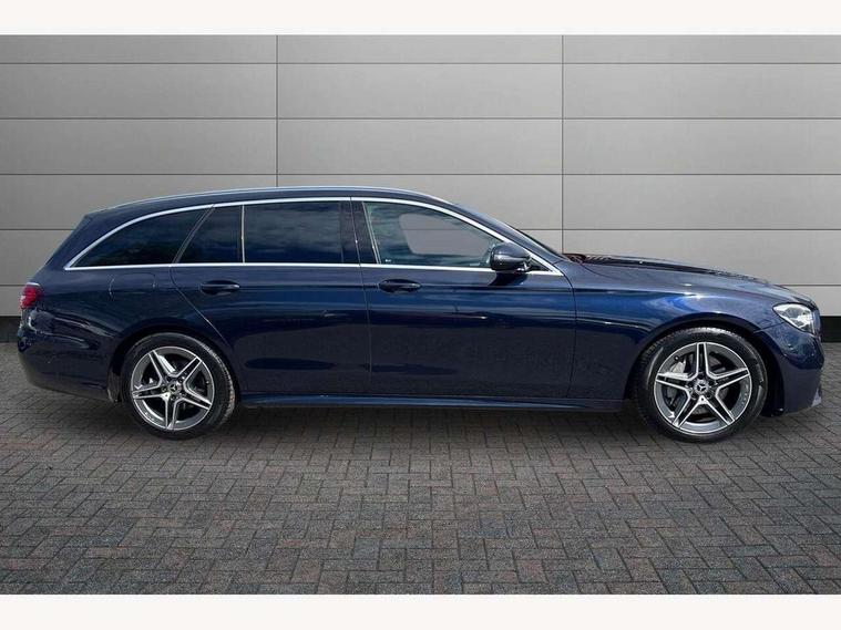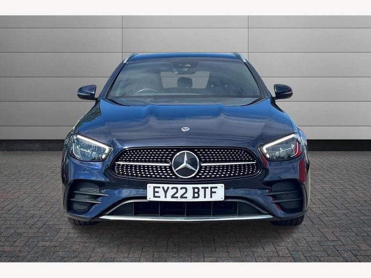 Attention assist, Blind spot assist, Brake wear warning display, Cockpit display 10.25" widescreen digital instrument cluster, Cruise control with variable speed limiter, Direct steer speed sensitive steering, DYNAMIC SELECT with a choice of driving modes (ECO, Comfort, Sport, Sport+ and Individual), Easy-pack tailgate - Powered opening/closing automatically, ECO start/stop function, Emergency call service, High resolution 10.25" multimedia colour display, MBUX voice control activated by keywords "Hey Mercedes", Mercedes connect me, Outside temperature display, Remote boot release, Service indicator (ASSYST), Smartphone integration via Android Auto/Apple CarPlay, Media Interface, USB and Bluetooth interface, Status display for rear seat belts in instrument cluster, Touchpad with controller, Traffic sign assist, Trip computer in multifunction display showing current fuel consumption, Wireless charging, 25 litre AdBlue tank, 66 litre fuel tank, 9G TRONIC 9 speed automatic transmission, Agility control sports suspension with selective damping system and lowered by 15mm, Diesel particulate filter, Incorrect fuelling protection, Rear air suspension with level control, 2 USB ports in centre console, 2 USB ports in the rear, MBUX multimedia system with DAB digital radio and touchpad including satellite navigation, 3rd brake light, Adaptive brake lights, Aerial integrated in rear window, AMG bodystyling front and rear aprons and side sill panels, Body colour door mirrors, Chrome pins diamond radiator grille, surround in high gloss black, single louvre in chrome with insert in high gloss black and integral star, Chrome roof rails, Electric windows with one touch opening/closing and obstruction sensors, Electrically adjustable and heated door mirrors, Illuminated front door sill panels with Mercedes-Benz lettering, LED High Performance headlamps including integral LED daytime running lamps and adaptive highbeam assist, LED rear lights, Privacy glass Includes rear side windows and rear windscreen, Rain sensor with automatic headlight activation, Rear side wing doors, Rear wiper, Tail lights, Top surround of side windows in polished aluminium, Visible twin pipe exhaust system integrated into bumper, 3 seat bench in 2nd row, 3 spoke multifunction flat bottom AMG steering wheel with chrome inserts and touch control buttons, trimmed in black nappa leather, 40:20:40 split folding rear bench seat, Artico man-made leather upper dashboard and beltlines with contrast stitching, Automatic child seat recognition sensor, Black door pins, Black roof lining, Central stowage compartment with 12 V socket in centre console, USB socket for use with Android Auto and Apple CarPlay, Courtesy lights in rear grab handles with reading light functionality, Floor mats with AMG lettering, Four way partially front electric seat adjustment, Front centre armrest with stowage compartment, Glasses compartment in overhead control panel, Glove compartment - lockable, air conditioned and illuminated, Head restraints for driver and front passenger (four-way adjustability) and in rear (two-way), Heated front seats, Interior lighting - 64 colour Ambient lighting, Leather upholstery, Seat occupancy sensor for front passenger seat, Single front passenger seat, Steering column manually adjustable for height and reach, Steering wheel multifunction with gearshift paddles, Steering wheel touch control buttons for audio and onboard settings, Sunvisors with illuminated vanity mirrors, THERMOTRONIC automatic climate control system with 3 climate zones, Mirror pack - E Class, Parking package with reversing camera - E Class, Seat comfort pack - E Class, Stowage pack - E Class Estate, 3x3 point rear seatbelts, Active bonnet pedestrian safety measure which detects an impact and raises bonnet, Active brake assist, Adaptive brake system with HOLD function and brake drying in the wet, Airbags - sidebag for driver and front passenger with combined thorax/pelvis bag, Anti-lock braking system (ABS), Childproof locks manually operated for rear doors and electrically operated for rear power windows, Driver and adaptive front passenger airbags, Drivers knee airbag, Electronic parking brake, Electronic Stability Programme, Hill start assist, ISOFIX child seat attachment points two outer rear seats, Perforated brake discs with Mercedes Benz lettering, Pre-Safe anticipatory safety system, Tyre pressure monitoring system, Warning triangle and first aid kit, Window airbags, Alarm system/interior protection/immobiliser, Central locking with interior switch, automatic locking and crash sensor with emergency opening function, Chrome surround in electric key, Open pore black ash wood trim and centre console in black open pored ash wood, 18" AMG 5 twin spoke light alloy wheels painted in tantalite grey with high sheen finish, Summer tyres, TIREFIT with tyre inflation compressor,