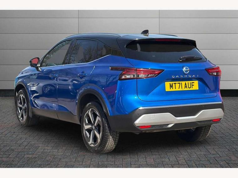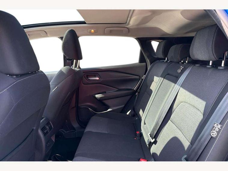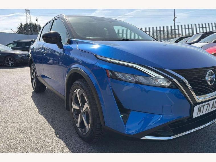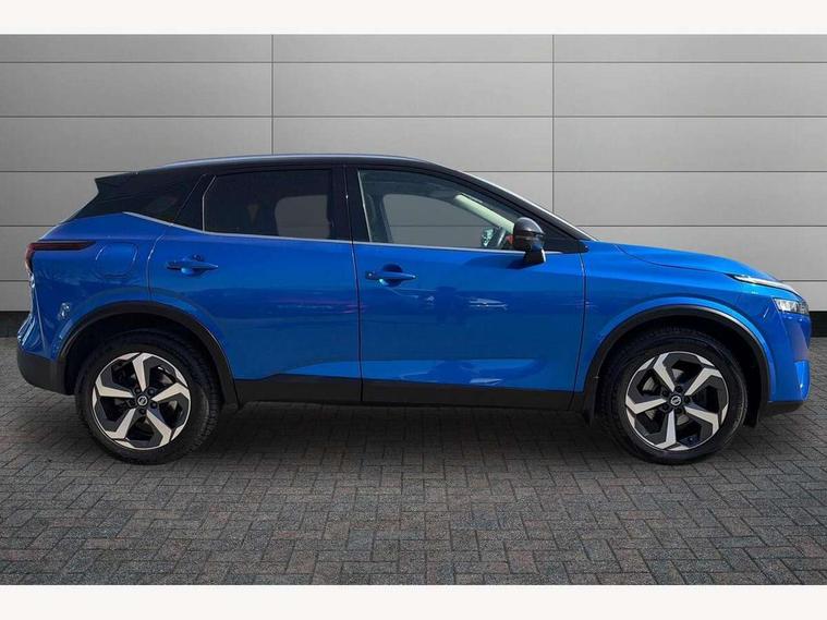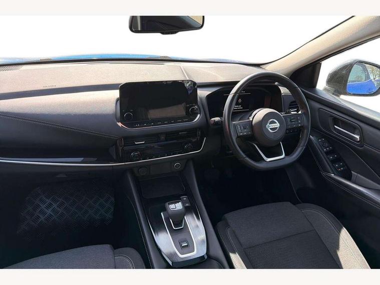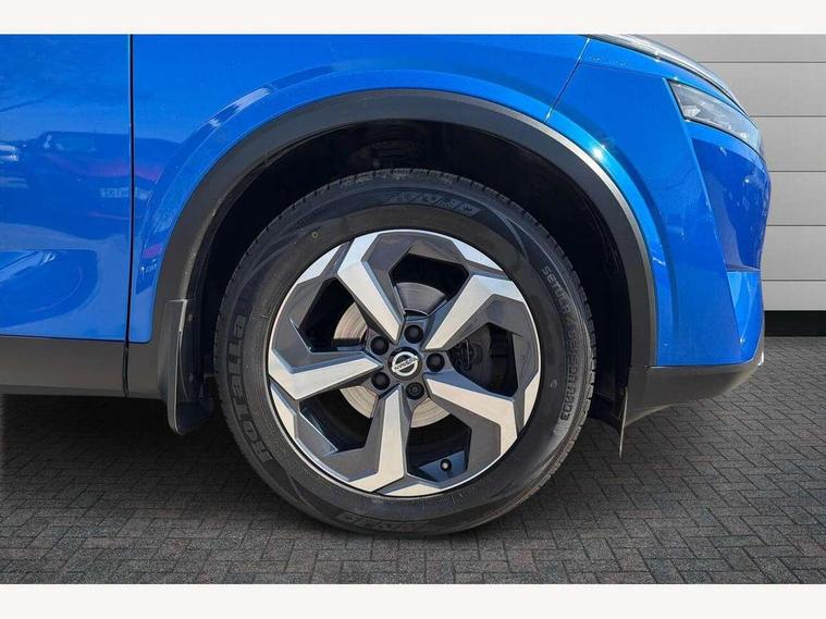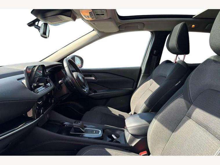 7" High definition full colour TFT screen combimeter, Blind spot warning, Drive modes (sport, normal, eco), Electric speed sensitive power steering, Emergency and breakdown call, Front and rear parking sensors, Idle stop/start system, Intelligent Cruise control (ICC), Intelligent driver alert system, Intelligent forward collision warning, Intelligent lane intervention, Lane departure prevention, Lane departure warning system, Maximum speed limiter, Moving object detection, Push button starter, Rear cross traffic alert, Traffic sign recognition with legal speed adjustment, Trip computer, 6 speakers, AM/FM audio system with DAB, Bluetooth audio streaming, Front USB connections (Type-A and Type-C), Rear USB charging only ports (Type-A and Type-C), Auto dimming rear view mirror, Auto rear wiper when reversing, Body colour mirror caps, Body coloured door handles, Bodyside mouldings, Chrome side window finisher, Electric auto folding door mirrors, Electrically adjustable and heated door mirrors with LED turn indicator, Follow me home headlights, High beam assist, Intelligent auto headlights, LED daytime running lights, LED Headlights, LED rear lights, One touch front and rear electric windows with remote opening and closing, Partially body coloured bumpers, Privacy glass, Rear reversing light (bulb lighting), Rear roof spoiler, Rear styling plate, Shark fin antenna, Splash free rain sensing wipers, Super UV and infrared cut glass, Three blink turn signal, 12v power socket in dashboard and luggage, 2 way electrical driver lumbar adjustment, 2x Rear coat hooks, 3 rear headrests, 4 grab handles, 6 Luggage hooks - 4 on floor, 2 on side, 60/40 split folding rear seat, Ambient lighting around centre console, Centre console storage tray, Chrome interior door handles, Cloth monoform upholstery, Driver and front passenger sunvisors with illuminated vanity mirrors, Driver seat back pocket, Dual zone automatic climate control with pollen filter, Front centre console and armrest, Front cupholder, Front door with bottle holders, Glovebox with light, Hard trunk cover, Height adjustable driver's seat, Height adjustable front headrests, Leather steering wheel, Luggage board system, Luggage space lighting, Manually adjustable passenger (slide recline + lifter), Multifunction steering wheel, Passenger seat back pocket, Rear armrest with 2 cupholders, Rear door bottle holders, Soft PVC kneepad, Steering wheel gearshift paddles, Steering wheel switches, Sunglasses holder, Tilt/telescopic adjustable steering wheel, Two rear isofix child seat anchorage points with top tether, Welcome light and console tray ambient lighting, Connectivity Pack - Qashqai, 3x3 point rear seatbelt pretensioners + load limiters, ABS, ESP, EBD and brake assist, Active brake limited slip, Auto hold function, Child locks on rear doors, Curtain and front side, far side airbags, Driver and passenger airbags, Driver, passenger and 2nd row rear seat belt reminder, Electronic parking brake, Front seatbelt pretensioners + load limiters, Height adjustable front seatbelts, Hill start assist, Intelligent blind spot intervention, Intelligent front emergency braking with pedestrian, cyclist recognition and junction assist, Intelligent rear automatic braking, Tyre pressure monitoring system, Vehicle dynamic control, Capless fuel filler, Engine immobiliser, Nissan i-key, Remote central door locking with deadlocking, Thatcham Cat.1 alarm, 18" Diamond cut alloy wheels,