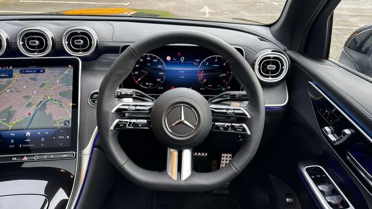 11.9" high resolution multimedia colour display, 12.3" Digital individually configurable instrument display, Acoustic presence indicator, Active lane keeping assist, Attention assist, Blind spot assist, Bluetooth interface for hands free telephone, Collision prevention assist plus, Cruise control with speedtronic variable speed limiter, Dashcam - front camera for video recording, Direct steer speed sensitive steering, DYNAMIC SELECT with a choice of driving modes (ECO, Comfort, Sport, Sport+ and Individual), eCall emergency call system, ECO start/stop function, Fingerprint scanner, Fluorescent jacket for driver, Hard disc navigation, Instrument display in miles with English lettering, MBUX augmented reality for navigation, MBUX navigation premium, MBUX voice control activated by keywords "Hey Mercedes", Mercedes me connect, Outside temperature display, Remote boot release, Remote services, Road sign recognition system, Service indicator (ASSYST), Smartphone integration, Status display for rear seat belts in instrument cluster, Traffic sign assist, Trip computer, Wireless charging, 48V Mild hybrid technology, 4MATIC permanent four wheel drive, 62 litre fuel tank, 9G TRONIC plus automatic transmission, Diesel particulate filter, Sport suspension, DAB digital radio tuner, MBUX extended functions, Mercedes benz sound system, Pre installation for Mercedes Benz Link, Adaptive brake lights, Adaptive high beam assist plus, Aluminium look running boards with rubber studs, Aluminium roof rails, AMG bodystyling front apron, rear apron and side skirts, AMG Line exterior, Auto headlights, Body colour bumpers, Body colour door mirrors, Digital light LED headlights, Electrically adjustable door mirrors, Front and rear electric windows, Headlight washers, Heat insulating dark tinted glass, Heated rear window, High level LED brake light, Integrated LED daytime running lights, LED indicator lights, LED rear fog lights, LED tail lamp, Motor way mode function and locator lighting, Noise acoustic glass, Radiator grille with Mercedes Benz pattern and integreated Mercedes star and louvre in dark grey matt with chrome inlay and black frame, Rain sensor windscreen wipers, Range adjustable headlights, Rear side wing doors, Rear wiper, Transparent Bonnet, Two chrome plated tailpipe trim elements, Variable front intermittent wipers, Welcome and follow-me home light functionality, Wider wheel arch for AMG wheels, 3 seat bench in 2nd row, 40:20:40 split folding rear seats, Ambient lighting premium, AMG line interior, Artico man-made leather upholstery, Audio and onboard settings control on multifunction steering wheel, Automatic child seat recognition sensor, Black fabric roof lining, Black floor mats with AMG lettering, Double cup holder in centre console, Easy-pack removable load compartment cover, Electrically height/reach adjustable steering column, Front centre armrest with stowage compartment, Front head restraints, Galvanised steering wheel gearshift paddles, Heated front seats, Illuminated door sill panels with Mercedes Benz lettering, Illuminated glove compartment, Instrument panel and beltlines in ARTICO manmade leather in nappa look, Multifunction sports steering wheel in nappa leather, Rear centre headrest, Rear head restraints, Rear top tether child seat ISOFIX attachment, Single front passenger seat, Sports pedals with stainless steel surfaces and rubber studs, Sports seats, Sun visors, THERMATIC 2 zone automatic climate control, Anti theft protection package - GLC, Boot comfort package - GLC, Exterior chrome package - GLC, Interior chrome package - GLC, Interior lighting pack - GLC, Keyless-Go comfort package - GLC, Memory pack - GLC, Mirror pack - GLC, Parking package with 360 degree camera - GLC, Seat comfort package - GLC, Stowage space package - GLC, USB Plus Pack - GLC, 3 rear 3 point seatbelts, Active braking assist, Anti-lock braking system (ABS), ASR traction control, Automatic front passenger airbag deactivation, Black seat belts, Brake calipers with Mercedes-Benz lettering + perforated brake discs, Braking system with larger brake discs on the front axle, Child proof door locks, Dual-stage airbags - driver and front passenger, driver knee bag and window bags for driver, front passenger and rear passengers, Electronic parking brake, Electronic stability programme (ESP) with curve dynamic assist and cross wind assist, Front and rear seatbelt reminder, Front passenger seat occupancy sensor, Front seatbelt pretensioners, Hill start assist, Tyre pressure monitoring system, Warning triangle and first aid kit, Automatic door locking, Guard 360 degree vehicle protection plus, Interior protection/immobiliser, Remote central locking, Centre console in metal structure finish, Metal structure trim, 20" AMG 5 spoke aerodynamically optimised light alloy wheels in painted black with high sheen finish, Summer tyres, TIREFIT with tyre inflation compressor,