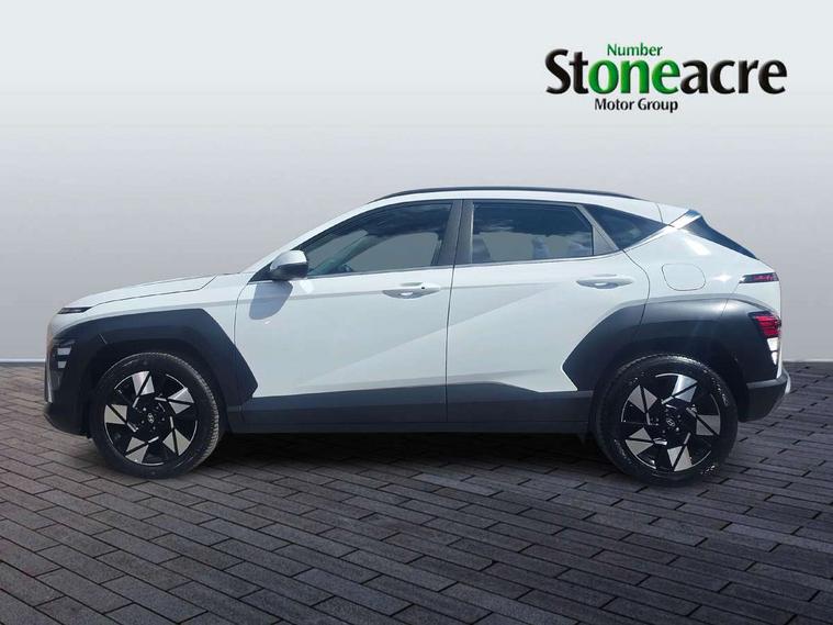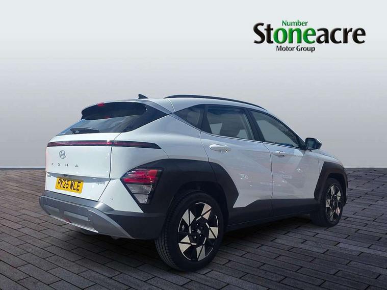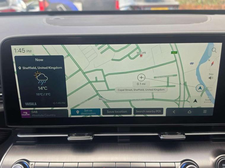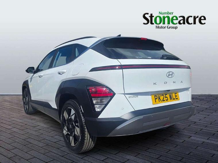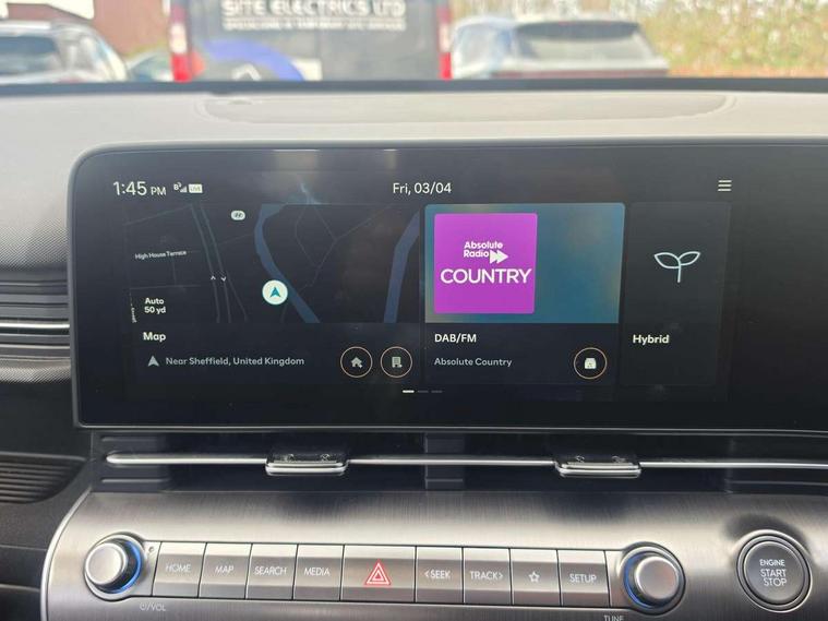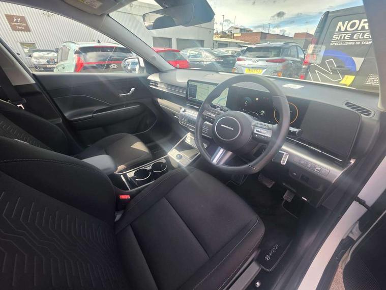 12.25" digital instrument cluster, 12.3" touchscreen centre console display satellite navigation with bluelink, live services and mapcare, Bluetooth connectivity with voice recognition, Driver status monitor (DSM), Driver supervision instrument cluster with 12.3" LCD display, eCall emergency call system, Feature on demand - Enabled, Forward collision avoidance assist (FCA 1.5) - Car, pededstrian, cycle and junction turning, Front parking sensor, HDA - Highway Drive Assist Level 1.5, Intelligent speed limit assist, Lane follow assist, Lane keep assist, Leading vehicle departure alert (LVDA), Parking system with rear camera and guidance system, PAS, Rear parking sensor, Rear view camera with dynamic guidelines, Roadside assistance, Smart cruise control with stop and go functionality, Wireless Smartphone Integration includes Apple CarPlay and Android auto, 2 front USB C and 2 rear USB C charging points, DAB Digital radio, Speakers - Front, rear and tweeters, Steering wheel audio, phone and cruise controls, Auto dimming rear view mirror, Automatic headlights with dusk sensor, Automatic windscreen wipers with rain sensor, Black painted wheel arch inserts, Body colour exterior door handles, Body coloured door mirrors, Door mirror LED indicator lights, Electric front windows with anti-trap mechanism and one touch control, Electric rear windows, Electrically adjustable and heated door mirrors, Full LED MFR headlights, LED daytime running lights, LED taillights, LED upper and lower rear lights, Power folding door mirrors, Rear roof spoiler with integrated LED brake light, Rear side wing doors, Rear skid plate - silver, Rear wiper, Roof rails, Tinted glass in front and rear doors, Windscreen auto defog function, 12V power outlet in front console, 2 zone climate control, 3 seat bench in 2nd row, Adjustable head restraints, Cloth upholstery, Driver and passenger front seat pockets, Driver's seat lumbar support, Driver/passenger manual seat height adjustment, Driver/passenger sunvisors and illuminated vanity mirrors, Floor mats, Height/reach adjustable steering column, Leather steering wheel, LED centre interior light, LED front interior light, Luggage compartment LED lighting, Luggage shelf, Metal paint effect interior door handles, Rear centre armrest with cupholders, Shift by wire SBW, Single front passenger seat, Vertical adjustment rear head restraints, Trailer wiring package - Kona, Airbag - front, front side, curtain and centre front airbag, Anti-lock brake system (ABS), Childproof rear door locks, Downhill brake control, Electric parking brake, Electronic stability control, Fixed 3 point for second row centre passenger seatbelt, Hill start assist control (HAC), Rear seat alert, Tyre pressure monitoring system, Alarm/immobiliser, Rear occupant alert, Remote central locking, Smart key with keyless entry and start/stop button, Five year annual vehicle health checks, 18" Alloy wheels, Temporary mobility kit (TMK),