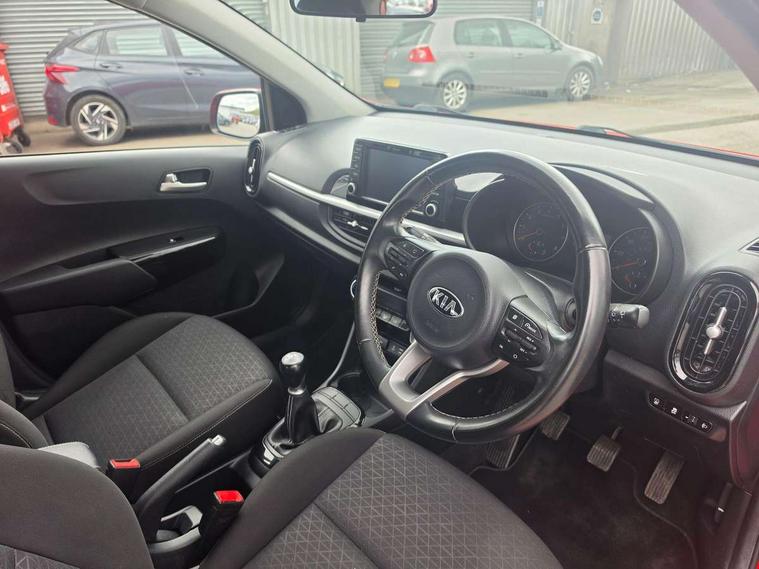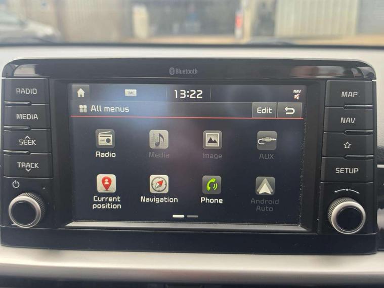 7" touch screen, Apple car play/Android Auto, Bluetooth audio streaming with voice recognition, Cruise control + speed limiter, Digital clock, Emergency stop signalling system, External temperature gauge, Kia connected services, PAS, Rear parking sensors, Reversing camera, Satellite navigation system, Supervision cluster, Tachometer, Trip computer, 6 speakers, DAB Digital radio, Steering wheel mounted controls, USB and auxiliary socket, Automatic headlights, Black grille with chrome surround, Body colour bumpers, Body colour door mirrors, Chrome door handles, Day/night rear view mirror, Daytime running lights, Electric adjustable/heated/folding door mirrors, Front and rear electric windows, Front fog lights, Headlamp levelling, Heated rear window, Rear wash/wipe, Tinted glass, Variable front intermittent wipers, Welcome home function, 12V socket, 60/40 split/folding 2nd row of seats, Assist grips, Automatic air conditioning, Centre console storage and sliding armrest, Coat hooks, Cupholders in centre console, Driver seat height adjust, Driver/passenger front seatback pockets, Front interior light, Glovebox, Height adjustable front seat head restraints, Height adjustable rear seat head restraints (x2), Isofix child seat attachment, Leather steering wheel and gear knob, Load area light, Premium cloth upholstery, Rear parcel shelf, Silver interior door handles, Slide/reclining front seats, Sunvisors with vanity mirrors, Tilt adjustable steering wheel, 3x3 point rear seatbelts, ABS/EBD, Automatic unlocking of doors in case of impact, Autonomous emergency braking, Curtain airbags, Dual front airbags, ESC + BAS + VSM + HAC, Front seatbelt pretensioners + load limiters, Front side airbags, Height adjustable front seatbelt anchors, Hill start assist, Passenger airbag deactivate switch, Rear child proof door locks, Seatbelt warning, Side impact protection, Traction control, Tyre pressure monitoring system, Anti theft alarm, Engine immobiliser, Folding key, Locking wheel nuts, Remote central door locking, Speed sensitive auto door locking, High gloss black centre fascia, 15" Alloy wheels, Tyre repair kit,