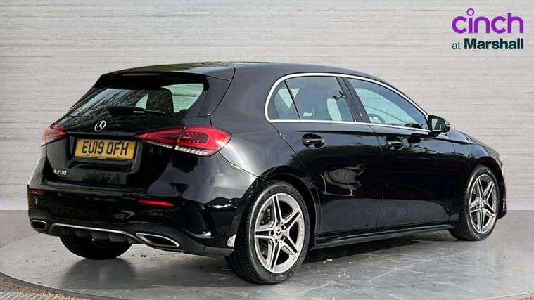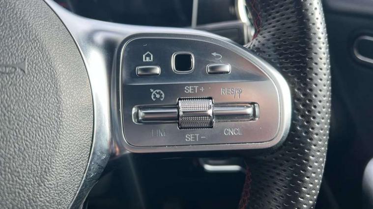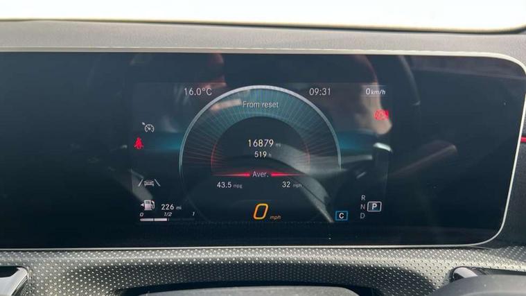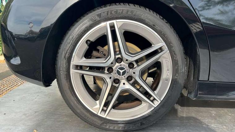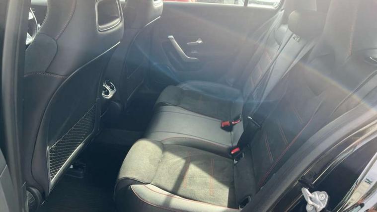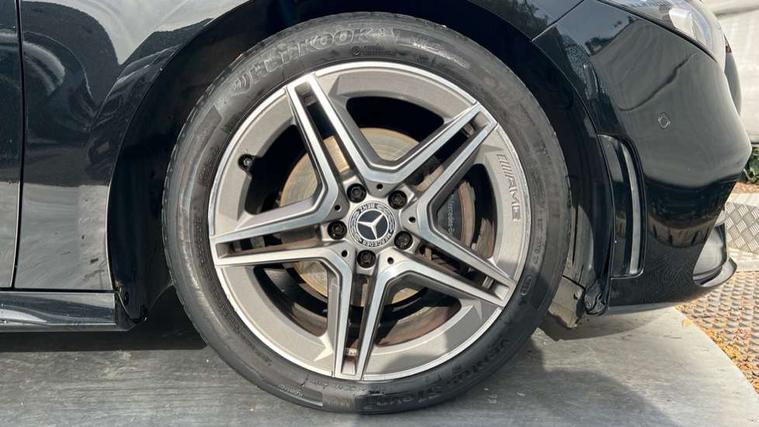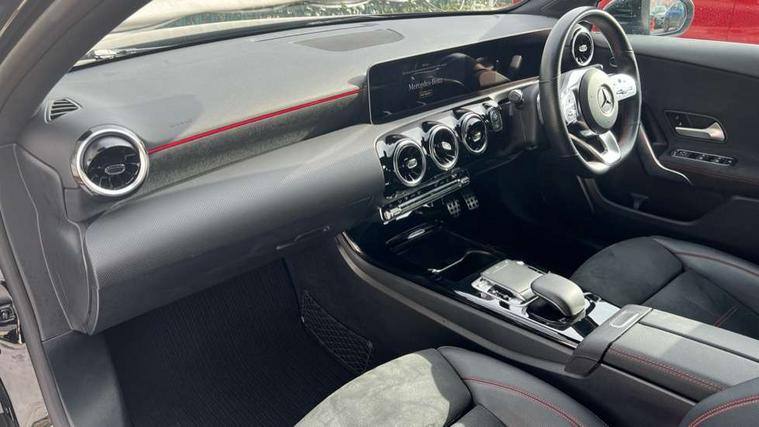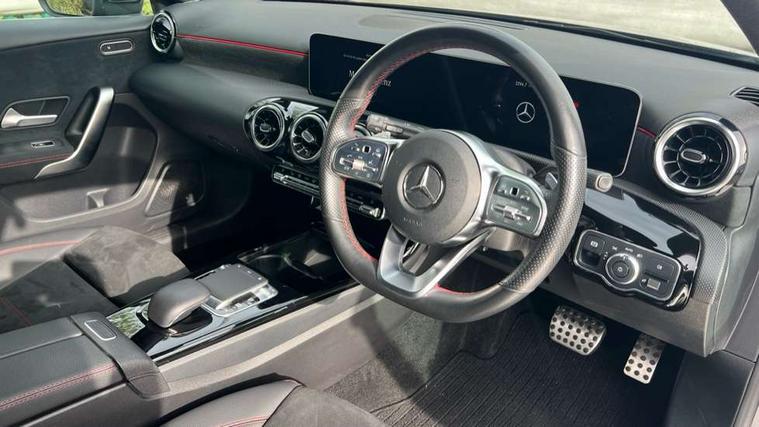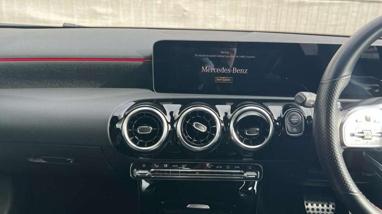 10.25" media display, 180 degree rear view camera with parking guidelines, 7" colour screen in instrument panel, Active lane keep assist, Active park assist with parktronic system including front and rear parking sensors, Attention assist, Brake pad wear indicator warning light, Direct steering, Direction indicators with lane change function, DYNAMIC SELECT with a choice of driving modes (ECO, Comfort, Sport, Sport+ and Individual), Fluid level warning indicator for fuel, oil, coolant and washer fluid, Hard-disk navigation, Lamp failure indicator, Mercedes me connect including emergency call system, accident recovery, breakdown and maintenance management, Outside temperature gauge, Radio aerial integrated into roof spoiler, Service indicator (ASSYST), Speed sensitive power steering, Stop/start system, Trip computer, Voice activation, Lowered comfort suspension, DAB Digital radio, Dual bluetooth interface, 2 USB ports (type C), MBUX multimedia system with DAB digital radio and touchpad including satellite navigation, Adaptive brake lights, AMG front, rear apron and side skirts, Blue tinted glass, Body colour bumpers, Body colour door handles, Body colour side skirt, Body coloured door mirrors, Chrome beltline trim, Diamond radiator grille with chrome pins and silver louvre + chrome insert, Electric adjustable and heated door mirrors with integrated LED side indicators, Electric front windows, Electric rear windows, Exhaust system - Twin trapezoidal tailpipes in polished stainless steel, Headlamp assist automatic headlamp activation, Heated glass rear windscreen + timer control, LED high performance headlamps with integrated LED daytime running lights, LED tail lamp, LED third brake light, Rain sensor windscreen wipers, Rear fog lights, Rear wiper, 12V socket, 3 Spoke flat bottom leather multi function steering wheel with perforated leather in grip area, 40:20:40 split folding rear seats, Air vents surround and cruciform nozzle in silver chrome, AMG floor mats with red stitching, Artico man-made leather/Microfibre Dinamica upholstery with red contrast stitching, Auto Mercedes-Benz child seat recognition sensor, Black roof lining, Brushed stainless steel sports pedals with rubber studs, Controller on centre console with chrome surround, Cup holder and stowage compartment lighting, Front centre armrest with storage compartment, Front door sills with Mercedes Benz lettering, Front doors with ambient and signal light, Front footwell lights, Front reading lamps, Front seat backs luggage nets, Front seat cushion length adjustment, Front signal exit lamp, Front vanity lights, Gearshift paddles on steering wheel, Handle recess/closing light, Heated front seats, Height/reach adjustable steering column, Illuminated glovebox, ISOFIX Child seat top tethers and anchor fixings, Load securing rings in luggage compartment, Luggage compartment cover, Manual height adjustable front seats, Oddments tray lighting, Rear head restraints, Rear Reading Lamps, Seat occupancy sensor for front passenger seat, Sports seats with integrated headrests, Storage compartment under load area floor, Sunvisors with illuminated vanity mirrors, Touchpad, Touchpad illumination, Twin front cupholders, Two zone thermotronic luxury automatic climate control, Mirror package - A Class, Seat comfort pack - A Class, 3 rear 3 point seatbelts, ABS with Brake Assist, Active bonnet, Adaptive brake assist with hold function and hill start assist, Brake calipers with Mercedes-Benz lettering + perforated brake discs, Childproof locks manually operated for rear doors and electrically operated for rear power windows, Crash responsive emergency lighting, Driver and passenger head and side airbags, Drivers knee airbag, Dual stage driver/passenger airbags, Electronic parking brake, ESP curve dynamic assist, ESP with ASR, Front and rear seatbelt reminder, Tyre pressure monitoring system, Warning triangle and first aid kit, Window airbags, Alarm system/interior protection/immobiliser, Keyless Go, Remote central locking and crash sensor with emergency opening function, Black seatbelts, 18" AMG 5 twin spoke light alloy wheels in titanium grey with highsheen finish, Tirefit sealant kit,