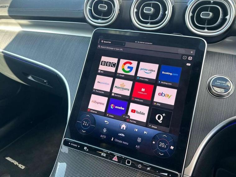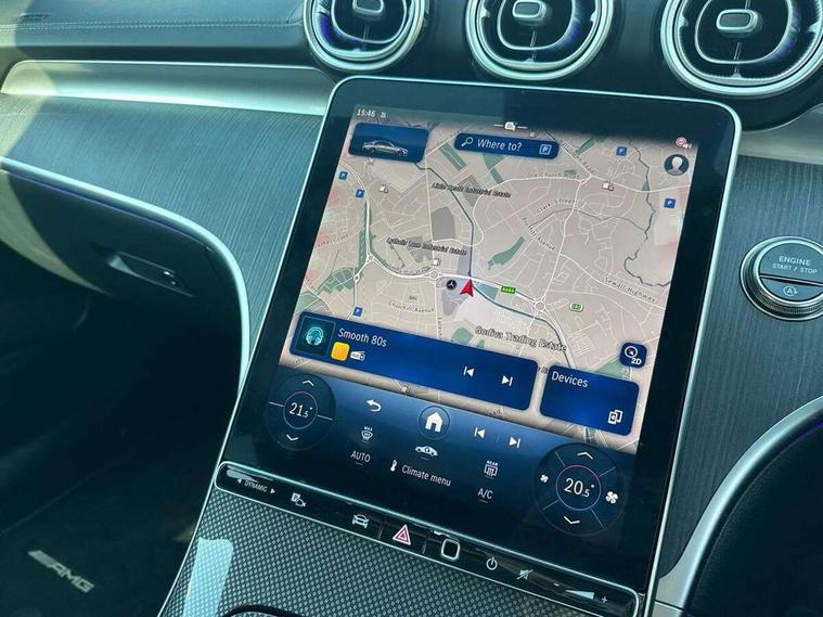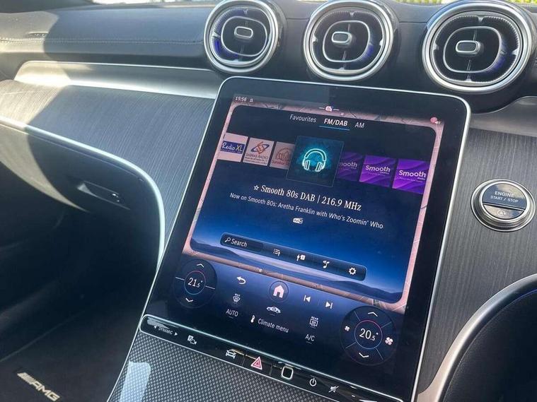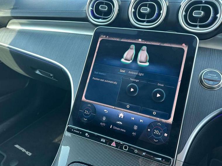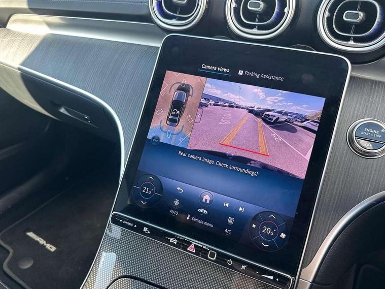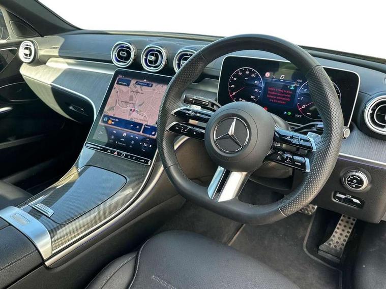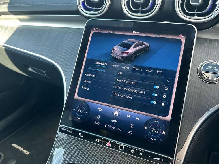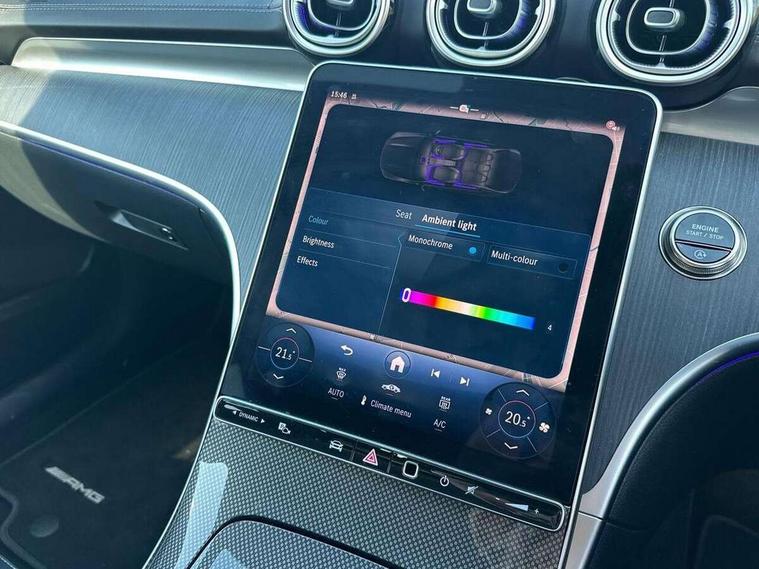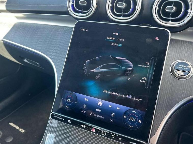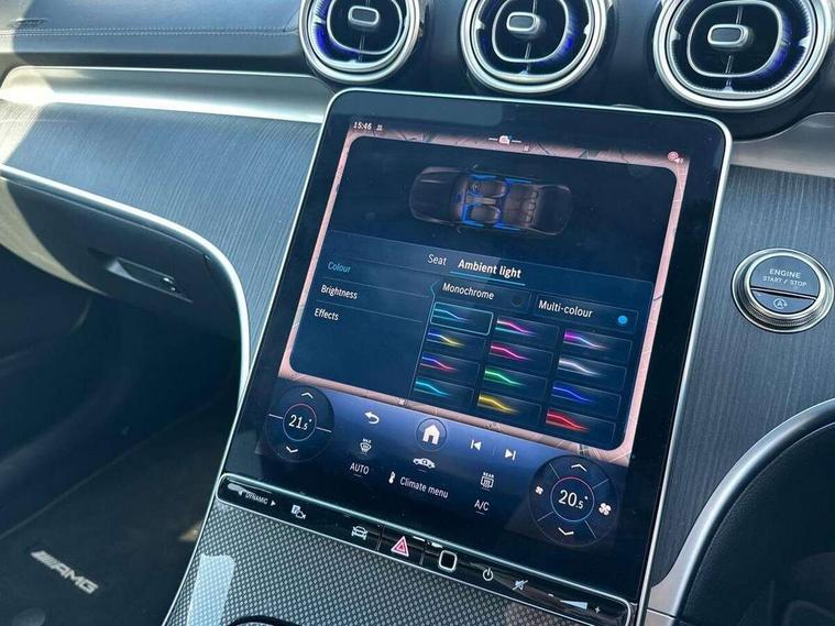 11.9" high resolution multimedia colour display, 12.3" digital instrument cluster display, Active blind spot assist, Active brake assist plus, Active lane keeping assist, Attention assist, Cruise control with speedtronic variable speed limiter, DYNAMIC SELECT with a choice of driving modes (Comfort, ECO, Sport, Sport+, Individual), E-call, Extended MBUX functions, Finger print sensor, Fluorescent jacket for driver, MBUX augmented reality for navigation, MBUX navigation premium, MBUX voice control activated by keywords "Hey Mercedes", Mercedes connect me, Mercedes me remote services, Outside temperature gauge, Pre-installation for digital key transfer, Remote boot release, Service indicator (ASSYST), Smartphone integration, Speed limit assist, Sports direct steer speed sensitive steering, Status display for rear seat belts in instrument cluster, Traffic sign assist, Wireless charging system for mobile devices, 66l fuel tank with increased capacity, 9G TRONIC 9 speed automatic transmission, Agility control sports suspension and lowered by 15 mm, Petrol Particulate Filter, Sporty engine sound system, DAB Digital radio, MBUX multimedia system, Adaptive brake lights, Adaptive high beam assist plus, AMG body styling front apron, rear apron and side skirts, AMG front bumper with sporty air intakes and chrome elements, AMG rear bumper with high gloss chrome elements, AMG side skirts in vehicle colour, B-pillar trim in glossy black, Body coloured bumpers, Body coloured door mirrors, Chrome beltline trim, Daytime running lights, Digital light LED headlamps, Electric windows with one touch opening/closing and obstruction sensors, Electrically adjustable and heated door mirrors, Green tinted glass, Heat insulating dark tinted glass, Illuminated front door sill panels, LED Indicators, LED tail lights, LED third brake light, Noise acoustic glass, Powerdomes on bonnet, Privacy glass, Radiator diamond grille with integrated Mercedes Benz star and louvre silver with chrome pins, Radio aerial integrated into rear window, Rain sensor with automatic windscreen wiper activation, Rear boot, Rear side wing doors, Two visible exhaust pipes integrated into rear bumper, 3 seat bench in 2nd row, 3 spoke flattened bottom AMG multifunction steering wheel in black nappa leather with chrome inserts and perforated leather in grip area, 40:20:40 split folding rear bench seat, Ambient lighting premium, AMG sports seats, Artico man-made leather upholstery, Audio and onboard settings control on multifunction steering wheel, Auto Mercedes-Benz child seat recognition sensor, Black air vents with silver chrome elements, Black floor mats with AMG lettering, Black roof liner, Door trim elements high gloss black with silver chrome surroundings and switches, Double cupholder in centre console, Electrically height/reach adjustable steering column, Folding rear seat backrest, Front and rear head restraints, Front centre armrest with storage compartment, Gearshift paddles on steering wheel, Heated front seats, Illuminated door sills with Mercedes Benz lettering, Illuminated glove compartment stowage, Overhead control unit in high gloss black, Rear top tether child seat ISOFIX attachment, Single front passenger seat, Sports pedals with stainless steel surfaces and rubber studs, Sunvisors with illuminated vanity mirrors, THERMATIC 2 zone automatic climate control, Interior lighting package - C Class, Memory package - C Class, Mirror pack - C Class, Parking package with 360 degree camera - C Class, Seat comfort pack - C Class, Stowage space pack - C Class, USB package plus - C Class, 3 rear 3 point seatbelts, Active bonnet pedestrian safety measure which detects an impact and raises bonnet, Adaptive brake system with HOLD function and brake drying in the wet, Anti-lock braking system (ABS), Black seat belts, Brake calipers with Mercedes-Benz lettering + perforated front brake discs, Child proof door locks, Drivers knee airbag, Drivers pelvis airbag, Dual stage driver/passenger airbags, Electric parking brake, Electronic Stability Programme (ESP), Front centre airbag between driver and front passenger seats, Front side airbags, Larger brake discs on front axle, Rear seatbelt warning indicator, Sports braking system, Tyre pressure monitoring system, Warning triangle and first aid kit, Window airbags for driver, front passenger and rear passenger, Central locking with interior switch, automatic locking and crash sensor with emergency opening function, Chrome surround in electric key, Dashcam, Keyless Go, URBAN GUARD vehicle protection (Thatcham Category 1) consisting of break-in, anti-theft alarm system (ATA), interior monitoring and tow-away protection, Artico man-made leather dashboard with contrast stitching, Centre console trim in metal weave, 19" AMG multi spoke light alloy wheels painted himalayas grey with high sheen finish, Noise reduced tyre with foam absorber, Summer tyres, TIREFIT with tyre inflation compressor,