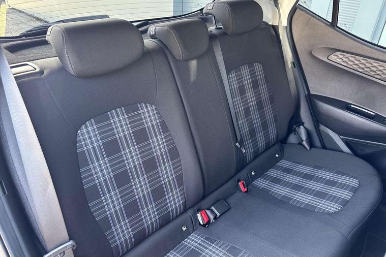 Apple car play/Android Auto, Bluelink mobile remote connectivity, Bluetooth connectivity with voice recognition, Cruise control, Driver attention alert system, eCall emergency call system, Forward Collision-Avoidance Assist (FCA) - Pedestrian/Cyclist, Front USB-C charging and USB-A data, Full-width 4.2" LCD instrument cluster, Intelligent speed limit assist, Lane departure warning system with lane keep assist - LKAS, Lane follow assist, PAS, Rear parking sensors, Rear view camera with guidelines, Roadside assistance, Start/Stop function, Tailgate, Trip computer, Wireless charging pad, 2 front/2 rear speakers, Rear USB-C device charger, Steering wheel audio, phone and cruise controls, 1 speed non intermittent rear windscreen wiper, Black finish on B pillars, Body colour door handles, Body coloured bumpers, Body coloured door mirrors, Electric folding door mirrors, Electric front windows, Electric rear windows, Electrically adjustable and heated door mirrors, Flat metal emblem, Front fog lights, Front grille in glossy black, Front intermittent wipers, Halogen bi-function headlights, Headlights inner with Black Blade design, Heated rear window, High beam assist, Indicator light on door mirrors, LED DRLs diamond mesh design, Privacy glass - Rear windows and tailgate, Rear roof spoiler with integrated LED brake light, Rear side wing doors, 12v power outlet - front, 3 seat bench in 2nd row, 60/40 split folding flat to floor rear seats, Air conditioning, Auto light control, Bottle holders in front/rear doors + front centre console, Cabin and luggage compartment interior lighting, Cloth upholstery, Driver + passenger vanity mirrors, Driver's seat height adjustment, Driver/passenger sunvisors with ticket holders, Floor mats, Front door pockets, Front Head Restraints - Vertical and Horizontal Adjustment, Front LED blue mood lighting, Glove compartment, Heated front seats, Heated steering wheel, Height adjustable steering column, Isofix child seat preparation, Leather multifunction steering wheel, Rear door pockets, Single front passenger seat, Vertical adjustment rear head restraints, 3x3 point rear seatbelts, Airbags - front, front side and curtain airbags, Anti-lock brake system (ABS), Autonomous emergency braking (AEB) with forward collision warning system, Brake assist function, Childproof rear door locks, Electronic stability control, Front and rear seatbelt reminder, Front seatbelt pretensioners, Hill start assist control (HAC), Passenger airbag deactivate switch, Traction control, Tyre pressure monitoring system, Immobiliser, Perimeter alarm, Rear occupant alert, Remote central locking, Second remote key, Smart key with motion sensor, Speed sensitive auto door locking, 16" alloy wheels, Tyre repair kit,