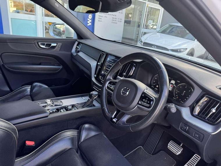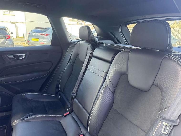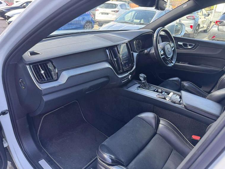 12.3" Active TFT crystal driver's instrument display, 9" Touch screen, Adjustable steering wheel force, Bluetooth hands free telephone kit, Drive mode selector, Front collision warning with full auto brake, Intelligent driver information system (IDIS), Lane keep assist with driver alert control, Oncoming Lane Mitigation, Power tailgate, Remote fuel flap release, Road Edge Detection, Service interval indicator, Speed limiter, Speed sensitive steering, Trip computer, Voice control system, Volvo on call, Active four-C chassis + four corner adaptive damper with electronic rear air suspension, Diesel particulate filter, DAB Digital radio, Active bending headlights with adaptive shadow technology, Adaptive brake lights, Auto dimming interior + exterior mirrors, Body colour bumpers, Dark tinted glass for rear windows + rear screen + side luggage area window, Dual integrated exhaust pipes with high gloss black surround, Electric folding door mirrors, Electric front+rear windows, Electrically adjustable and heated door mirrors, Headlamp cleaning system, Headlamp levelling, Heated aqua blades, High gloss black front grille, Home safe and approach lighting, Illuminated side steps, LED front fog lights with static cornering light function, LED Headlights + Active high beam incorporating daytime running lights, Matt silver finish door mirrors, Puddle lights, R Design tread plates, Rain sensor windscreen wipers, Rear wiper, Roof antenna, Roof spoiler, Silk metal grille surround, Silver matt window frame surround, Silver roof rails, Tinted windscreen, Visible VIN plate, 12V power point in luggage area, 12V socket in front + rear tunnel console, 3 spoke leather steering wheel with chrome trim, 60/40 split folding rear seat, A-pillar parking ticket holder, B Pillar ventilation, Black headlining, Bright metal luggage threshold, Centre armrest storage illumination, Centre console cupholders and storage, Contour sports seats with leather/nubuck upholstery, Door ambient lighting, Electric drivers seat with memory, height adjust and multi directional lumbar support + mirrors memory, Extended front seat cushions, Front and rear door pockets, Front footwell illumination, Front/rear reading lights, Gearshift paddles, Glovebox illumination, Head restraints for all seats, Heated front seats, Heated steering wheel, Height/reach adjustable steering column, High gloss black steering wheel remote infotainment controls, Illuminated driver/passenger vanity mirrors, Illuminated front cupholder, Illuminated luggage compartment, Illuminated tailgate, ISOFIX attachment on outer rear seats, Load cover, Multicolour theatre lights, Perforated leather gearknob, Perforated Leather Key Integrated Remote, Perforated leather steering wheel, Pollen filter, Rear armrest / integral cup holders / storage tray, Rear footwell illumination, Rear seat concealed storage, Sport pedals, Sports floor mats, Ticket holder, Underfloor stowage compartment, Vanity mirror with ticket holder, WHIPS - Whiplash Protection System, 5 three point seatbelts, ABS/EBD, City safety with steering support with Pedestrian + cyclist + large animal detection + front collision warning with full auto brake, Curtain airbags, Drivers knee airbag, DSTC-Dynamic Stability and Traction Control, Dual stage driver/passenger airbags, EBA, Electronic parking brake with auto hold, Fasten seatbelt reminder, First aid kit, HBA (Hydraulic Brake Assist), Hill descent control, Hill start assist, Passenger airbag deactivate switch, Road sign information display, Run off Road Protection, Seatbelt pre-tensioners, SIPS airbags, Tyre pressure monitor, Warning triangle, Anti-theft alarm including immobiliser/volume sensor + level sensor, Key integrated remote control central locking + fuel flap with deadlocking system and auto open/close power windows, Keyless drive (incudes keyless entry and start) with remote tag and handsfree tailgate open/close, Locking wheel nuts, Private locking for tailgate, Metal mesh inlays, Tailored instrument panel with contrast stitching,