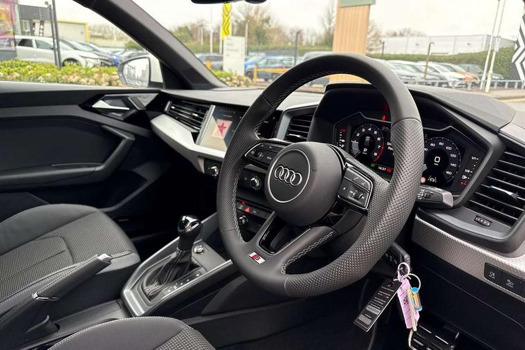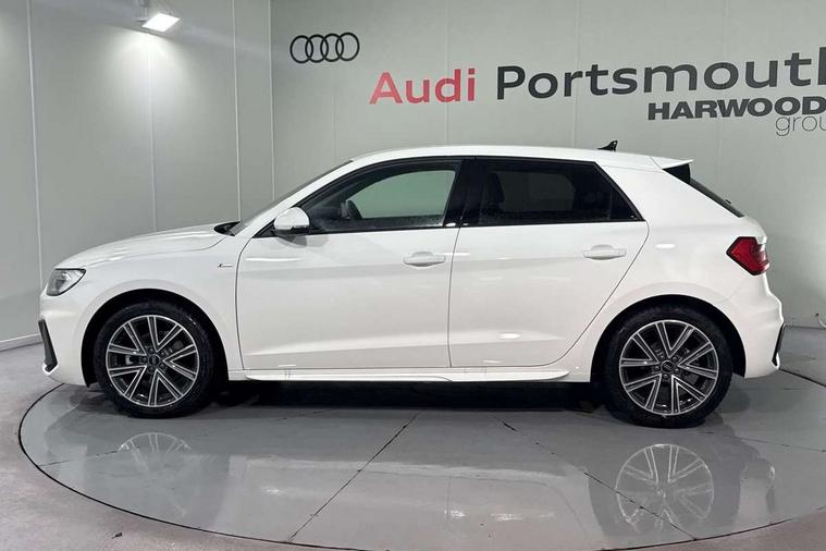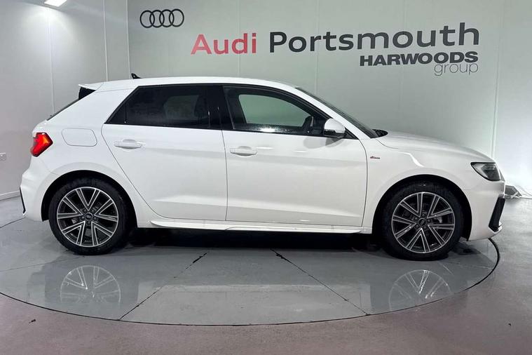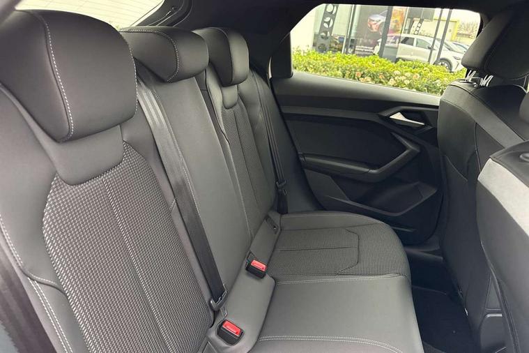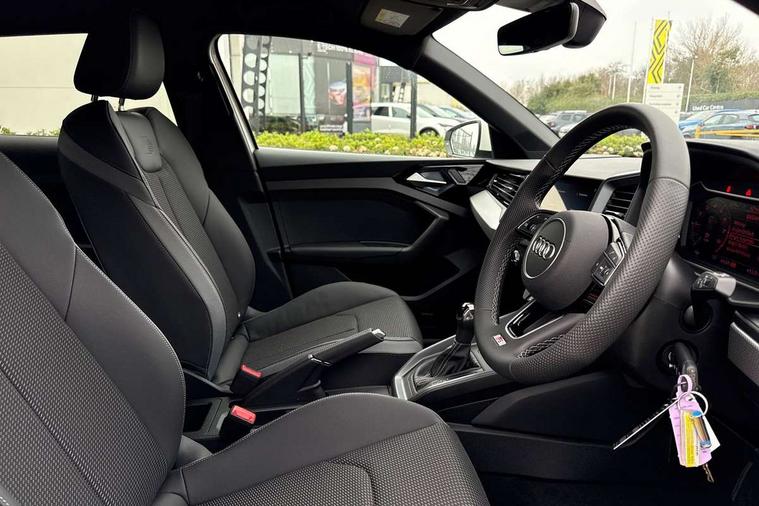 10.25" Digital instrument cluster display classis style instrument dials + speed, odometer, time, outside temperature, telephone menu + fuel level warning, Advanced driver attention and drowsiness monitor, Audi connect emergency call and service, Audi drive select, Audi remote connect and control, Bluetooth interface, Camera based traffic sign recognition, Cruise control, Driver's information system, Electromechanical power steering, Lane departure warning system, Rear parking sensor, Service interval indicator, Smartphone interface, Speed limiter, Start stop system with recuperation, Voice control system, Washer fluid level indicator, Sports suspension, 2 x USB type C connection points, 6 loudspeakers, DAB Digital radio, MMI radio plus with 10.1" colour MMI display screen and MMI touch, Auto dimming rear view mirror, Body coloured door mirrors, Door sill trims with aluminium inlays and S line logo in front, Electric front and rear windows, Electrically adjustable, heated, folding door mirrors with integrated LED side indicator, Front side air inlets in grained matt black and C frame in anthracite black, Headlight cleaning system, Heat insulating glass windscreen and side windows, Heated rear windscreen, High level LED brake light, LED daytime running lights, LED headlights with range control LED rear lights + dynamic rear indicators, Light and rain sensors, Privacy glass, Radiator grille and rear diffuser in matt anthracite black, Radiator protective grille frame in matt aluminium silver, Rear fog lights, Rear side wing doors, Rear wiper, Side front spoiler lips in grained matt black, 12V socket in centre console with two cup holders, 3 rear seats with headrests, 3 seat bench in 2nd row, 3 spoke leather multi-function plus steering wheel features S badging and grips in perforated leather with contrast stitching, 40:60 Split folding rear seat or fully collapsed, Black carpets, Black cloth headlining, Front and rear velour black floor mats with contrast stitching in fine silver, Front head restraints, Front passenger seat, Height and reach adjustable steering wheel, Interior lighting includes roof module, front and rear reading lights and right luggage compartment lighting, ISOFIX child seat mounting for front passenger and outer rear seats including top tether attachment point of outer rear seats, Leather gear knob with aluminium trim, Leather handbrake grip, Manual air conditioning, Manual height adjustable for driver and front passenger seat, Manually adjustable lumbar support in front seats, Stainless steel pedals, Ambient lighting package - A1, Luggage compartment pack - A1, S line exterior styling pack - A1 Sportback, 3x3 point rear seatbelts, Audi pre-sense front with pedestrain and cyclist recognition, Brake assist function, Driver and front passenger airbag with front side and head airbags, Electronic Stability Control including ABS, EBD, ASR and EDL, Front passenger airbag deactivation switch, Hill hold assist, Manual rear child locks, Seatbelt height adjustment for front seats, Seatbelt monitoring, Tyre pressure loss indicator, Warning triangle and first aid kit, Anti theft alarm, Anti theft wheel bolts, Immobiliser, Remote control key with safelock, Aluminium trim for control switches, air vents and digital instrument cluster, Black dashboard, Silver grey inlays polygon structure in diamond paint finish, Structured grey accent surfaces insert of air vents, interior door handle recesses and centre console in quartz paint finish,