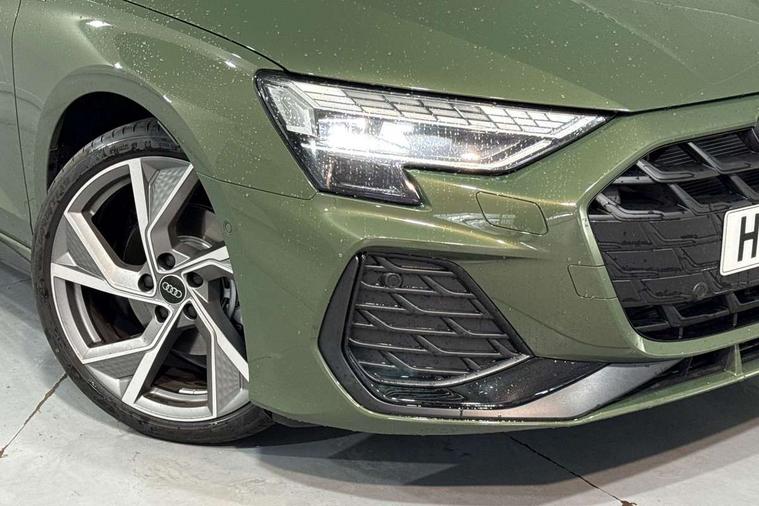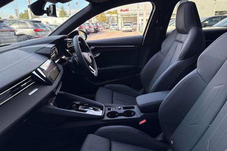 Adaptive cruise control (ACC), Adjustable speed limiter, Audi drive select (Auto, Comfort, Dynamic, Efficiency and Individual), Audi virtual cockpit plus - 12.3" full HD resolution dynamic digital instrument cluster, Automatic start/stop system with recuperation, Bluetooth interface, Camera based traffic sign recognition, Collision avoidance assistant, Driver attention and fatigue detection, e-Call (emergency call), Electromechanical power speed sensitive steering, Emergency assist, Intersection assist, Lane departure warning system, MMI Navigation Plus with high resolution 10.1" colour touch screen display, Park Assist with parking system Plus, Reversing camera, Service indicator, Smartphone interface with app store includes wireless Apple carplay, Android auto and Amazon alexa integration, Trip computer, Voice control system with natural language interaction, Diesel particulate filter, Sports suspension, Audi Phonebox light with wireless charging, Audi sound system - 10 loudspeakers including centre loudspeaker and subwoofer, DAB Digital radio, USB ports with charging function in the rear, Acoustic glass windscreen, All weather light, Anthracite grey Audi rings (front and rear), Audi beam uses LEDs to project the Audi logo onto the ground as you exit your A3, Auto dimming frameless rear view mirror, Automatic dynamic range control, Black accents front and rear bumpers, Black accents in the area of the Audi single frame grille, Black accents window trims strips, Dipped beam, main beam, position light and turning light, Electrically adjustable/heated/folding/auto dimming door mirrors with integrated LED indications + kerb view function for passenger side, Exterior model badging, Front and rear side air inlets in grained matt black with dark liquid chrome frame, Front electric windows, Front radiator grill in high gloss dark chrome, Heat insulating glass windscreen, Illuminated door sills with aluminium inserts at the front with S logo, Intersection light, LED 3rd brake light, LED brake lights, LED daytime running x3, LED headlights with LED rear lights and dynamic rear indicators, LED rear number plate lights, LED reverse light, LED tail lights, Light and rain sensors, Manoeuvring light, Motorway light, Privacy glass - dark tinted rear window, rear door and side windows, Rear diffuser and grill in grained matt black with inlay in dark liquid chrome, Rear electric windows, Rear side wing doors, Rear wiper, S roof spoiler, Side sill trim in dark liquid chrome, Static cornering light, 12V socket and storage compartment in front centre console, 3 seat bench in 2nd row, 3 spoke flat bottomed leather multifunction sport steering wheel with gear shift paddles, 3-zone deluxe automatic air conditioning, 4 way electrically adjustable lumbar support for driver and front passenger, 40/20/40 split folding rear seat bench, Black cloth headlining, Black front and rear floor mats, Front and rear centre armrest in artificial leather with contrasting stitching on armrests and instrument panel, Front and rear headrests, Heated front seats, Height and reach adjustable steering wheel, i-Size child seat mounting on the front passenger side and outer rear seats, i-Size and top tether on the outer rear seats, Manual boot compartment lid, Manually adjustable front seats, Rear centre armrest with cupholder, S badging on the steering wheel, Seat side bolsters, Single front passenger seat, Stainless steel pedals and front footrest in black, Twin leather upholstery with front sports seats S embossed logo, Aluminium interior elements pack - A3, 3x3 point rear seat belts, Driver and front passenger airbag with passenger airbag deactivation, Electronic Stabilisation Control (ESC) including ABS, ASR and EDL, First aid kit with warning triangle and 2 safety vests, Front side airbags with head airbags and interaction airbag, Hill hold assist, Pre-sense front with pedestrian and cyclist detection, Seatbelt monitoring, Tyre pressure loss indicator, Anti theft alarm, Anti-theft wheel bolts, Electronically operated child locks, Immobiliser, Black dashboard,