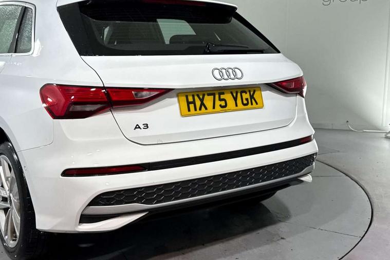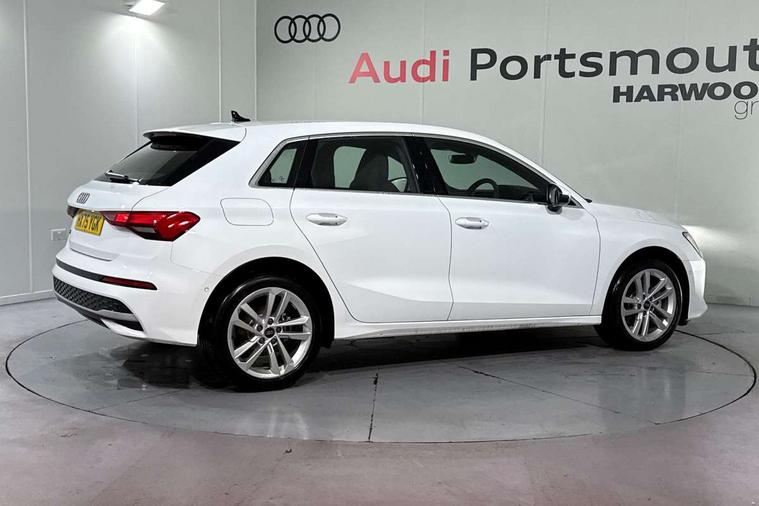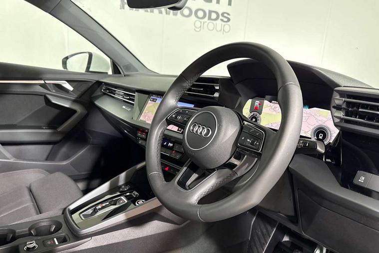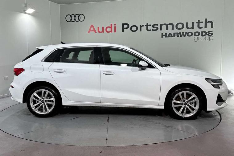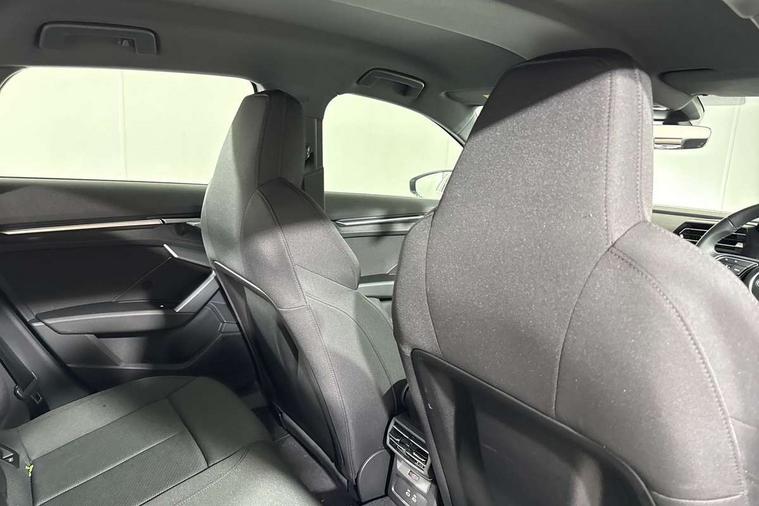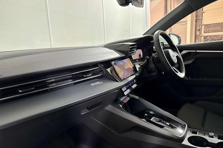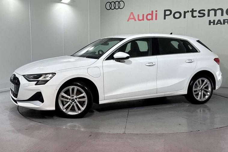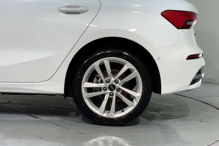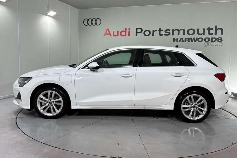 Adjustable speed limiter, Audi drive select, Audi smartphone interface with app store includes wireless Apple carplay, Android auto and Amazon alexa integration, Audi virtual cockpit plus - 12.3" full HD resolution dynamic digital instrument cluster, Automatic start/stop system with recuperation, Bluetooth interface, Camera based traffic sign recognition, Collision avoidance assistant, Cruise control, Distraction and Fatigue warning, e-Call (emergency call), Electromechanical power speed sensitive steering, Emergency assist, Lane departure warning system, MMI Navigation Plus with high resolution 10.1" colour touch screen display, Park Assist with parking system Plus, Service indicator, Trip computer, Voice control system with natural language interaction, 3 pin 10 amp domestic charging cable, CCS socket for DC charging, Charging cable for public charging, mode 3 (type 2), 32 A, Compact charging system, Industrial connector CEE 32 A, 230 V, length 1.6 m, Standard suspension, Type 2 socket for AC charging, Audi Phonebox light with wireless charging, Audi sound system - 10 loudspeakers including centre loudspeaker and subwoofer, DAB Digital radio, USB ports with charging function in the rear, 3rd brake light, Acoustic glass windscreen, Aluminium window trim, Auto dimming frameless rear view mirror, Body colour exterior mirrors, Body colour roof spoiler, Dipped beam, main beam, position light and turning light, Electrically adjustable/heated/folding/auto dimming door mirrors with integrated LED indications + kerb view function for passenger side, Exterior model badging, Front electric windows, Front radiator grill in high gloss dark chrome, Front side air inlets in grained matt black with silver frame, Heat insulating glass windscreen, LED daytime running lights, LED headlights and halogen rear lights, Light and rain sensors, Rear diffuser and grill in grained matt black with silver frame, Rear electric windows, Rear side wing doors, Rear window, rear door windows and rear side windows in clear glass, Rear wiper, 12V socket and storage compartment in front centre console, 3 seat bench in 2nd row, 3 spoke leather multifunction steering wheel with gear shift paddles, 3-zone deluxe automatic air conditioning, 4 way electrically adjustable lumbar support for driver and front passenger, 60/40 split folding rear seat bench, Black front and rear floor mats, Convenience auxiliary air conditioning, Front and rear headrests, Front centre armrest, Front door sill trims with aluminium inlay, Heated front seats, Height and reach adjustable steering wheel, Manual boot compartment lid, Manually adjustable front seats, Routine cloth upholstery with front sports seats, Seat side bolsters, Single front passenger seat, Steel grey cloth headlining, Aluminium interior elements pack - A3, LED interior lighting pack -A3, 3x3 point rear seat belts, Acoustic vehicle alerting system, Driver and front passenger airbag with passenger airbag deactivation, Electronic Stabilisation Control (ESC) including ABS, ASR and EDL, First aid kit with warning triangle and 2 safety vests, Front side airbags with head airbags and interaction airbag, Hill hold assist, Pre-sense front with pedestrian and cyclist detection, Seatbelt monitoring, Tyre pressure loss indicator, Anti theft alarm, Anti-theft wheel bolts, Electronically operated child locks, Immobiliser, Remote central locking with safelock, Black dashboard, Inlays in volcano grey fine paint finish, Tyre repair kit,