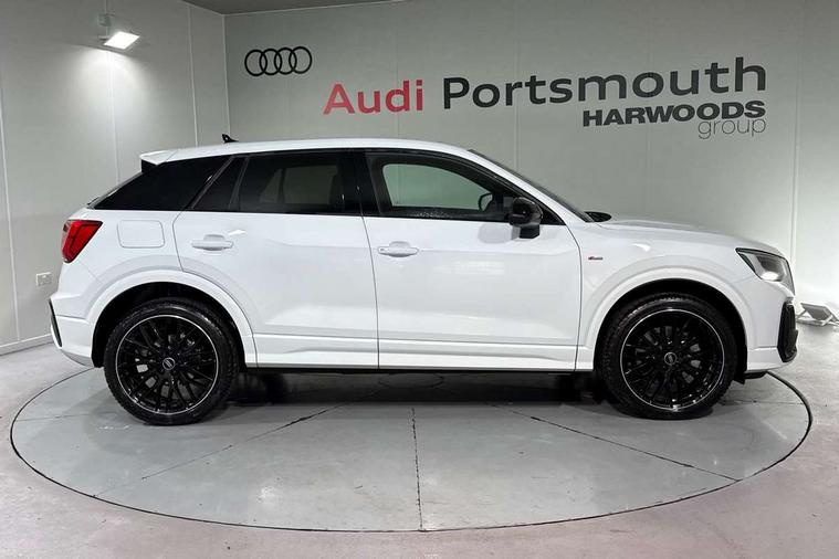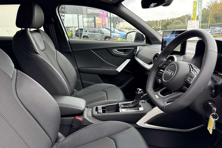 3D map display, Audi connect navigation and infotainment includes innovative services, Audi connect remote and control connects your vehicle to your smartphone, Audi drive select: S tronic - power steering assistance + engine + gearshift (modes: comfort, auto, dynamic, efficiency, individual), Audi smartphone interface - Apple carplay/Android Auto, USB connect, 2xSDXC card readers, voice control for navi, telephone, music and 3rd party apps, Audi virtual cockpit, Automatic start/stop system with recuperation, Bluetooth interface includes bluetooth audio streaming, Camera based traffic sign recognition, Cruise control, Distraction and Fatigue warning, E-call, Jukebox hard drive memory for music (10GB), Lane departure warning, MMI navigation plus with 8.8" touchscreen, Natural voice recognition, Power operated tailgate, Progressive steering, Rear parking sensors, Sport suspension, 6 passive loudspeakers, DAB Digital radio, USB type C port, Audi beam, Auto dimming rear view mirror, Black window trims, Bumper in full body colour paint finish, Electrically adjustable, folding, auto dimming and heated door mirrors with integrated LED side indicators, Front windscreen with grey tinted sunband, LED daytime running lights, LED headlights with dipped beam, high beam, position lights, indicators, LED rear lights, LED third brake light, Privacy glass - dark tinted rear and rear side windows from B-pillar backwards, Rear side wing doors, Rear wiper, Variable front intermittent wipers, Wheel arch trims in manhattan grey, 12V socket in front, 3 seat bench in 2nd row, 3 spoke flat bottomed multi-function leather sport steering wheel with gear shift paddles, 4-way electric lumbar support for front seats including manual seat height adjustment for both front seats, 60/40 split folding rear seat bench, Black carpets, Black cloth headlining, Front and rear head restraints, Front centre armrest, Front sport seats, Front/rear floor mats, Height/reach adjust steering wheel, Illuminated door sill trims with S logo, ISOFIX child seat mounting in front passenger and rear outer seats, Manual air conditioning, Single front passenger seat, Stainless steel pedals, Black styling pack - Q2, 3x3 point rear seatbelts, 6 airbags - Front, curtain and front side airbags, Electromechanical parking brake, Electronic stabilisation control including ABS, ASR and EDL, Front passenger airbag deactivation, Hill hold assist, Pre-sense front with pedestrian recognition, Seatbelt monitoring, Tyre pressure warning light with visual and acoustic warning, Warning triangle and first aid kit, Anti theft wheel bolts, Electronically operated child locks, Remote central door locking, Thatcham category 1 alarm, Aluminium interior element, Black dashboard, Gloss black centre console, Matt brushed aluminium trim inlays, Tool kit,