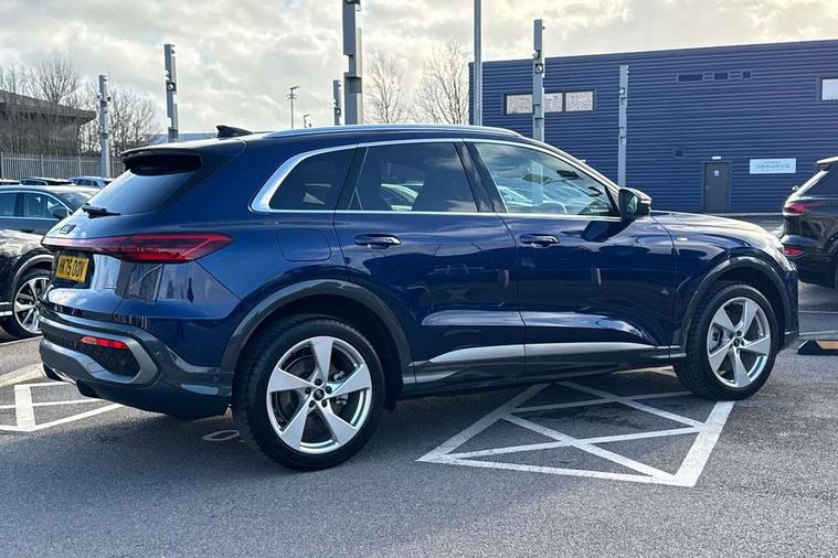Adaptive cruise control, Attention and drowsiness detection with driver observation, Audi application store, Audi connect emergency call and service, Audi digital key, Audi drive select, Audi smartphone interface, Audi virtual cockpit plus with 11.9" OLED colour display, Camera based traffic sign recognition, Front cross traffic intersection assist, Lane change assistant with exit warning system, rear cross traffic alert and rear turn assist, Lane departure warning system, MMI navigation plus with high resolution 14.5" OLED touchscreen colour display, Park assist plus, PAS, Reversing camera, Swerve assist and front turn assist, Traffic sign based speed limiter, Audi sound system impressive sound with 8 loudspeakers including centre speaker and subwoofer, 6-channel amplifier with a total output of 180 watts, DAB Digital radio, Smartphone compartment with wireless charging, Aluminium roof rails, Auto dimming rear view mirror, Body coloured door mirrors, Electrically adjustable heated and folding + automatically dimming exterior mirrors, Front and rear electric windows, Front door sill trims with aluminium inlays, illuminated with 'S' logo, Grill frame, inlay and front air inlets in matt anthracite chrome, Headlight cleaning system, Heated rear window, High beam assist, High gloss window surrounds, LED headlights plus incl. digital DRL, dynamic coming and leaving home function with turning/all weather/motorway/manouevring and intersection lights, LED rear lights pro incl. dynamic rear indicators and illuminated light strip with animated coming and leaving home function, Logo projection light in exterior mirrors, Privacy glass, Projection third brake light for rear window in LED, Radiator grille in phantom black, Rear and side windows with heat insulating glass, Rear honeycombe grille in matt black with inlay in matt anthracite chrome, Rear side wing doors, Rear wash/wipe, S Line badge on the front wings, S line bumpers in contrasting Volcano grey metallic paint finish, Windscreen with acoustic glazing, 3 rear head restraints, 3 seat bench in 2nd row, 3 spoke leather steering wheel with multi-function buttons with touch control, flattened on top and bottom, with S badging and contrast stitching, 4 way electric lumbar support for driver and front passenger, Black carpets, Comfort centre armrest front, Deluxe 3 zone electronic climate control, Front and rear floor mats, Front sport seats with integrated head restraints, Headlining in black cloth, i-Size child seat mounting on the front passenger side and outer rear seats, i-Size and top tether on the outer rear seats, Increased charging capacity for USB ports 2X100 Watts in rear, 2X60 Watts in front, Interior trim in aluminium look, Luggage compartment lid, electrically opening and closing, Manual steering column adjustment, S embossed logo on front sport seats, Single front passenger seat, Softwrap in black, Stainless steel pedals and footrest, Steering wheel grips in perforated leather and shift paddles, Ambient lighting package plus - Q5, Rear seat bench plus pack - Q5, Storage and luggage compartment pack with luggage net - Q5, 3x3 point rear seatbelts, ABS, Acoustic vehicle alerting system, Convenience key with safelock, Driver and front passenger airbag with passenger airbag deactivation, Electric child safety locks, First aid kit with warning triangle and high visibility vests, Front emergency brake assist, Front side airbags with head airbag system and front interaction airbag, Hill hold assist, Rear seat occupant reminder, Tyre pressure loss indicator, Anti-theft wheel bolts, Thatcham approved category 1 anti theft alarm, Accent surfaces and control buttons in gloss black, Anthracite matt brushed aluminium inlays with linear embossing, Black dashboard with contrast stitching, Upper and lower interior elements in artificial leather, Tyre repair kit,