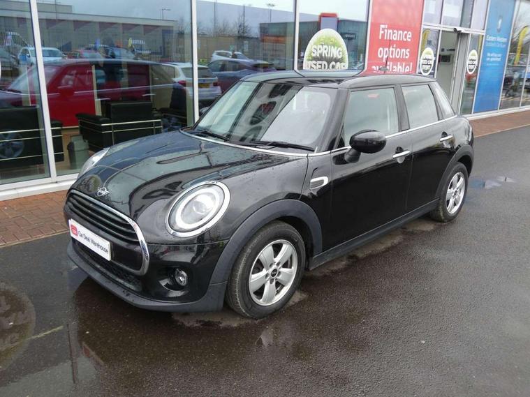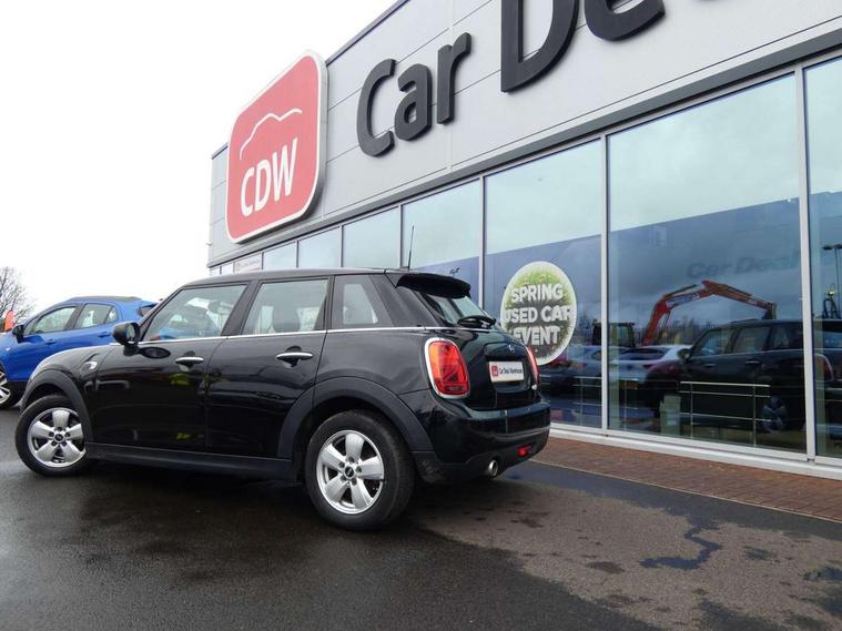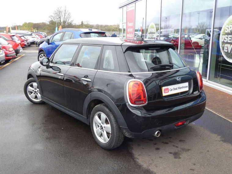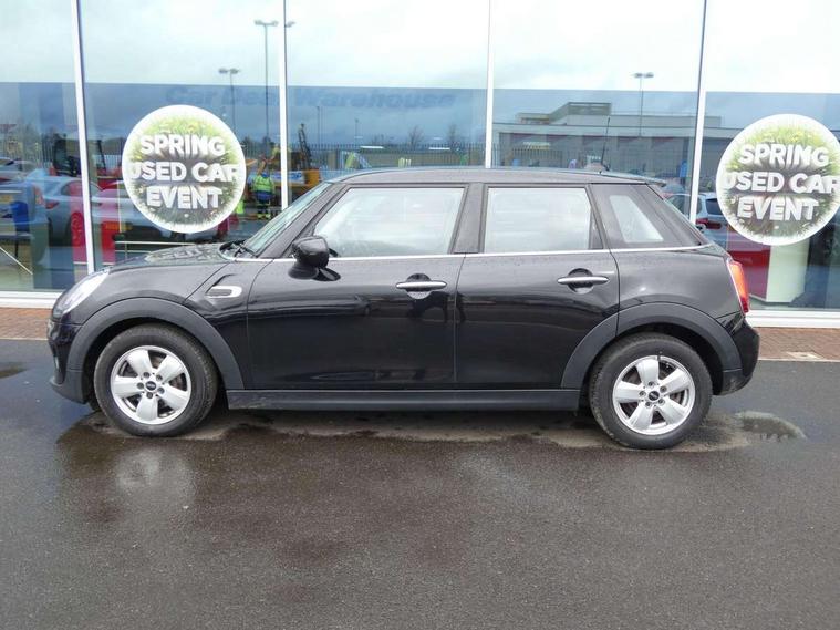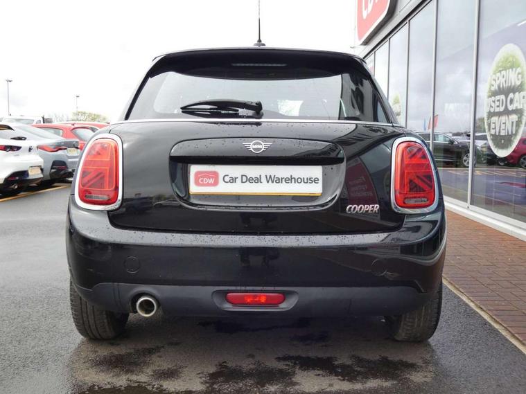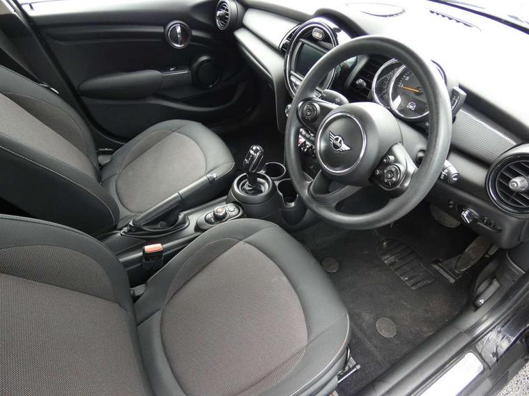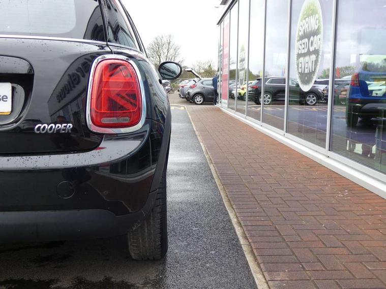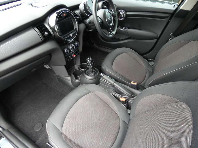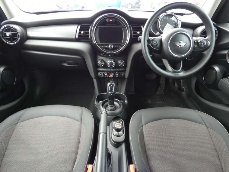 Automatic start/stop function with brake energy recuperation, Compatible mobile phone bluetooth with audio streaming, Electro-mechanical speed dependant steering assistance, Instrument cluster, Mini E-call, MINI TeleServices, On board computer, Service interval indicator, Double Vanos system, Fully variable valve control, Gear change indicator display, High precision injection, Steptronic transmission with double clutch, 6.5" touchscreen with LED ring, FM tuner and DAB digital radio, Automatic headlight activation switch, Body colour fuel filler cap, Chrome border high gloss black slats radiator grille, Dynamic brake lights, Electric front+rear windows, Heated rear window, Heated windscreen washer jets, LED headlight with closed ring and daytime driving lights, Left exhaust tailpipe with chrome finisher, Metal door sill strips with MINI imprint, Model logo Cooper on right of tailgate, Rain sensor window wipers, Rear fog lights, Rear LED lights with union jack design, Rear window wiper, Side scuttle panel with integrated indicator, Sun/heat protection glass, White indicator lenses, 12V Accessory socket in centre console, 4 lashing eyes in luggage compartment, 60/40 split folding rear seat, Carbon Black colour line, knee roll and door armrests, Chrome interior highlights, Colour line - Carbon black, Cupholders, Front and rear head restraints, Front and rear isofix with front passenger airbag deactivation, Glove compartment, Height and length steering column adjustment, Interior lighting with 12 basic colours selectable via toggle switch in roof, Leather gearshift lever and handbrake gaiters, LED reading lights, vanity mirror lights, front foot well light and spotlight on front seats, Manual air conditioning, Mechanical seat adjustment, driver seat height adjust, forward/back and front seats backrest, Mini logo projection on floor from drivers exterior mirror, Multifunction steering wheel, Satellite grey headlining, Storage compartments in doors, Sunvisors with vanity mirrors, 3 point seatbelts on all five seats, 6 Airbags - front, side, head and seat belt tensioners, Anti-lock braking system (ABS), DSC - Dynamic Stability Control, Front and rear disc brakes, Hill start assist, Single tone fanfare horn, Tyre pressure monitoring system, Alarm system with tilt sensor, monitoring doors, bonnet interior and tailgate, Electronic vehicle immobiliser, Start/stop toggle with keyless go, Tool kit, Tyre repair kit,