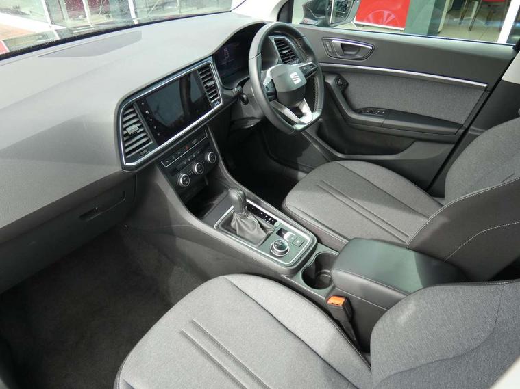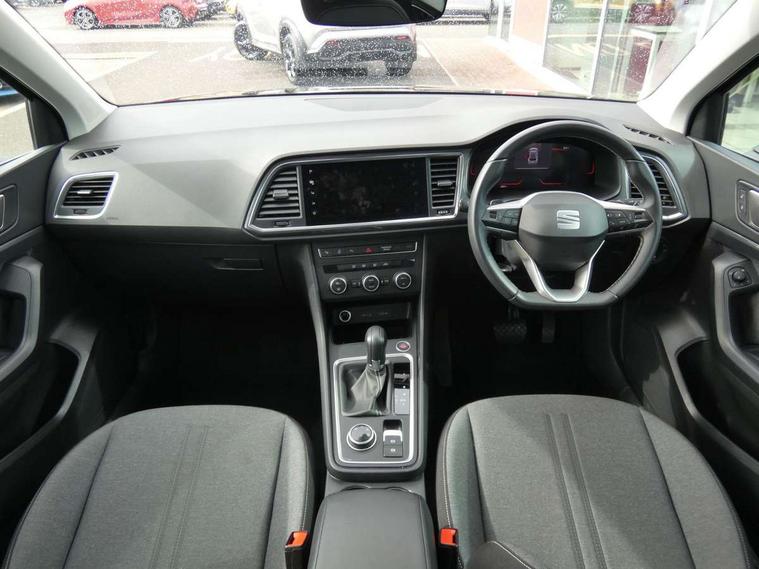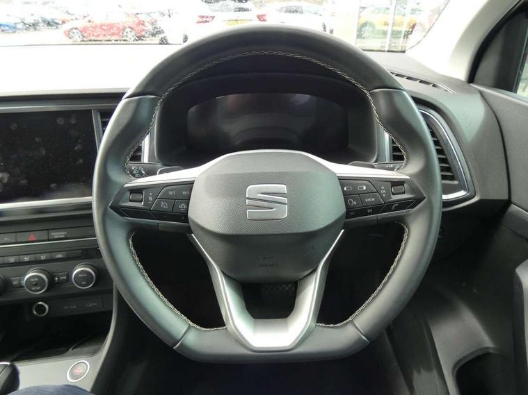 8" Digital cockpit, Colour multi-function on board computer display, Cruise control system with speed limiter, E-call, Outside temperature gauge, PAS, SEAT drive profile with driving experience button - Normal, Sport, Eco and Individual mode, gearshift, steering and throttle response, Self parking functionality (includes front and rear parking sensors), Start/stop system, Tailgate, Trip computer, wired and wireless full link smartphone integration, Wireless phone charger, Steering wheel mounted audio/phone controls, Black wheel arch surrounds, Body colour bumpers, Chrome front grille frame, Chrome roof rails, Chrome side window trim, Daytime running lights, Door mirrors with welcome light silhouette, Dynamic headlight range control with self adjusting whilst driving, Electric adjustable/heated/folding door mirrors, Front and rear electric windows, Full LED headlamps with lens and LED front fog lamps with cornering function, LED 3rd brake light, LED rear tail lights, Rear exhaust tailpipe, Rear fog lights, Rear side wing doors, Rear wash/wipe, Variable front intermittent wipers, 12V socket in front, 3 seat bench in 2nd row, 60/40 split folding rear seat, Cloth upholstery with front comfort seats, Drawer under right front seat, Dual zone climate control, Front and rear head restraints, Front centre armrest, Front seat back storage pockets, Height adjustable driver and passenger seat with lumbar adjustment, ISOFIX points in outer rear seats with top tether anchorage points, Leather sports steering wheel and gear knob, Rear armrest and easy back seat release mechanism from boot, Single front passenger seat, Steering wheel mounted gearshift paddles, Convenience pack - Ateca, Interior lighting pack - Ateca, Navigation system pack with DAB - Ateca, Safety and driving pack with attention and drowsiness assist - Ateca, 3x3 point rear seatbelts, ABS, Traction control system (TCS), Electronic stability control (ESC) and Electronic differential lock system (XDS), Airbags - Driver and front passenger airbag with deactivation, front side, two curtain and driver's knee airbags, Electric parking brake with auto hold function, Front and rear seatbelt reminder, Front assist with autonomous emergency braking, Hill hold control, Manual rear child locks, Single tone horn, Tiredness recognition system, Tyre pressure monitoring system, Alarm, Keyless entry, Locking wheel bolts, Remote central locking, Chrome interior detailing, 18" Performance machined alloy wheels 36/2 in nuclear grey,