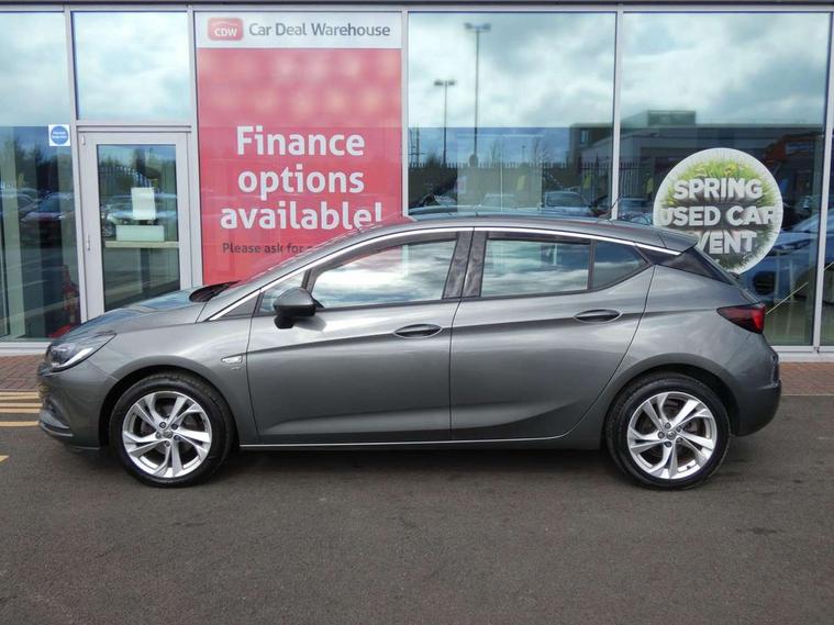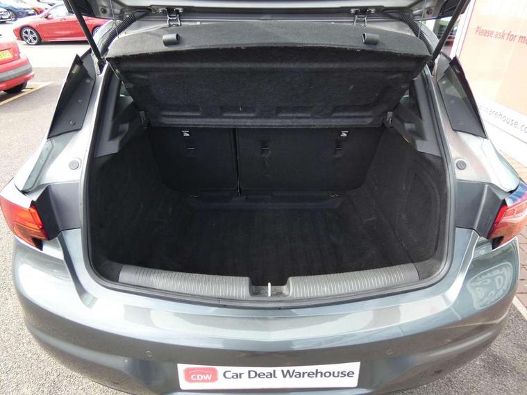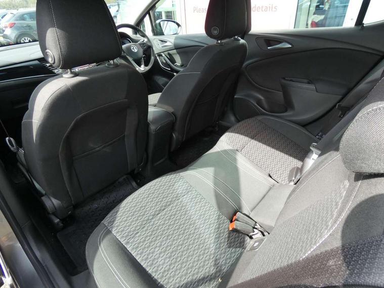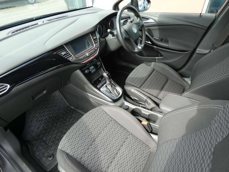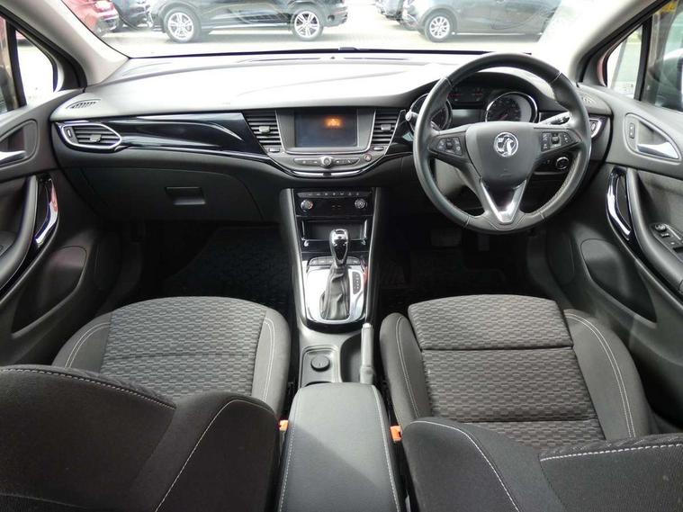 Central facia display with digital clock, outside air temperature and audio information, Cruise control + speed limiter, Digital fuel gauge with low fuel warning light, Digital water temperature gauge with warning light, Electric speed sensitive power steering, Facia mounted Sport switch, Gearshift up/down indication light, Left Key in ignition audible warning, Lights on audible warning, Monochrome display in instrument cluster, Multi function trip computer, Oil life monitoring system, Rev counter, Service due indicator, Speedometer, 6 speakers, R4 Intellilink infotainment with 7" screen, DAB, traffic program, USB/iPod, Bluetooth audio streaming A2DP, microphone and Apple Carplay/Android Auto, Steering wheel mounted audio controls, Adaptive brake lights, Automatic lighting control, Body colour door handles, Body colour rear roof spoiler, Body coloured door mirrors, Chrome effect upper window trim, Chrome front grille, Chrome headlight surround, Dipping rear view mirror, Door to door illumination, Electric front/rear windows/one touch facility, Front fog lights, Gloss black finish B pillar, Gloss black finish C pillar, Hazard warning lamps, Heated rear screen with timed cut off, High level LED centre rear brake light, Intermittent rear wash/wipe, LED daytime running lights, LED side repeat indicators, Rain sensor windscreen wipers, Rear fog lights, Reversing light, Side window demist vents, Solar heat absorbing windscreen and windows, Tinted windows, Tunnel detection for auto light control, Twin electrically adjustable and heated door mirrors, Two speed windscreen wipers with variable intermittent wipe, Windscreen demist vents, 12V electrical accessory socket in front, 3 spoke leather covered steering wheel with accent stitching, 60/40 split folding rear seat, Ambient LED downlighter in facia/centre console, Black door panels with black atlantis cloth inserts, Chrome interior door handles, Driver and front passenger illuminated vanity mirrors with flip up covers, Driver and front passenger sunvisors, Fade up/down courtesy light, Folding storage box on driver side lower facia, Four adjustable facia vents, Four load restraint lashing eyes, Front and rear door pockets, Front centre armrest with storage, Front courtesy lights, Front red LED ambient lighting, Front seat back storage pockets, Fully carpeted load area, Glovebox with lid, Height adjustable and removable rear head restraints (x3), Height adjustable front head restraints, Illuminated load area, Interior tailgate handle, Isofix child seat mounting points on outer rear seats, Luggage compartment cover, Plain black fabric side bolsters and surrounds, Reach + rake adjustable steering column, Rear courtesy lights, Satin chrome effect bezel on steering wheel, Storage compartment in centre console, Titanium headlining, Twin front reading lights with illuminated switches, Twin gas assisted tailgate struts, Twin rear reading lights with illuminated switches, Two drinks holders in centre console, Driver's ergonomic active seat pack - Astra SRi/SRi Vx-Line/Elite, Driver's ergonomic active seat pack with Formula cloth upholstery- Astra, 3x3 point rear seatbelts, Anti-lock braking system (ABS), Child locks on rear doors, Electronic Stability Programme, Height adjustable front seatbelts, Hill start assist, Passenger airbag deactivate switch, Pedal release system, Seatbelt pretensioners on front/outer rear seats, Seatbelt warning, Six airbags - Driver's dual stage airbag/front passenger's dual stage airbag/front seat side impact airbags/full size curtain airbags, Traction control, Tyre pressure monitoring system, Electronically protected audio, Engine Immobiliser & Deadlocks, Freewheeling door locks, Locking wheel bolts, Remote control central locking, Remote control ultrasonic security alarm system, Visible vehicle identification number, Black facia with piano black trim inserts, Instrument panel bar in piano black, Piano black trim inserts on front doors, Silver air vent surrounds,