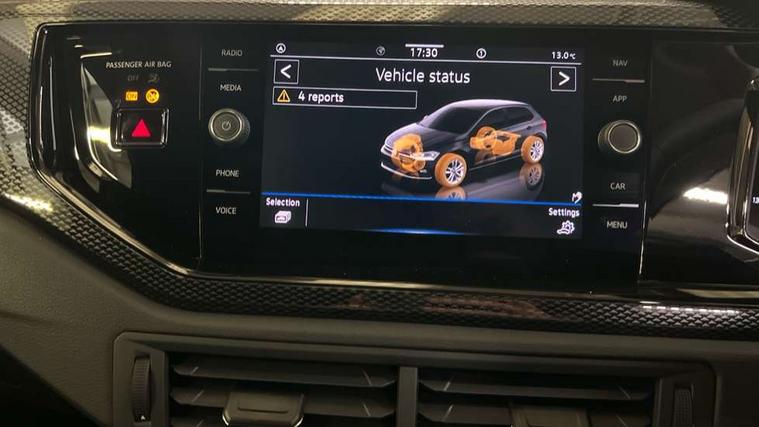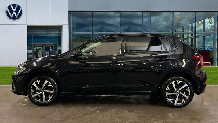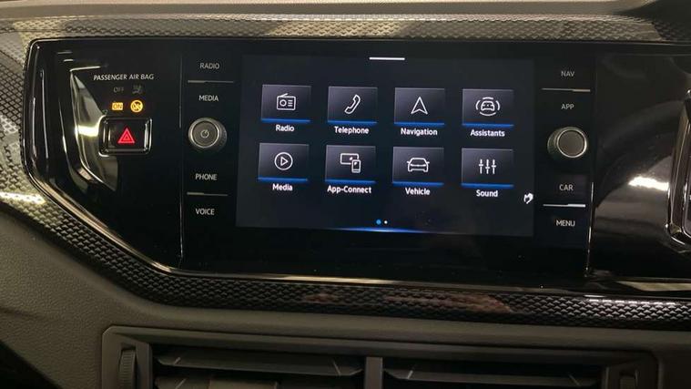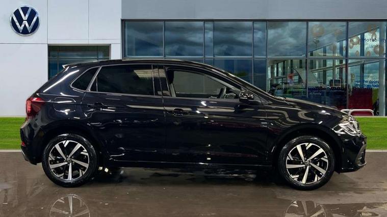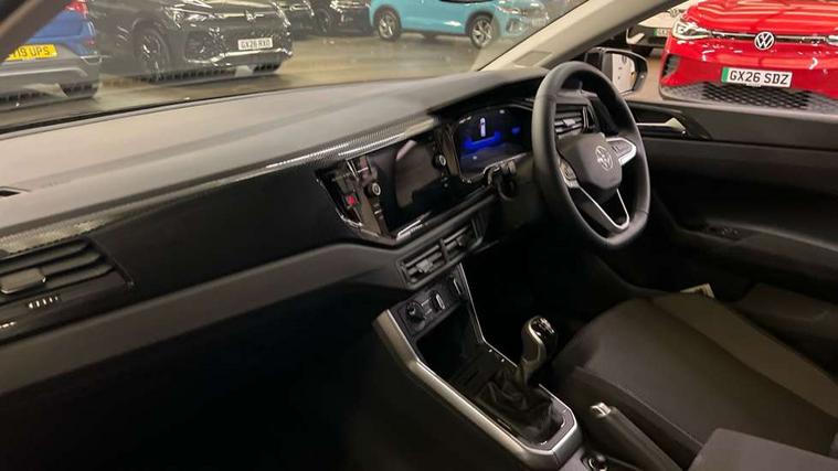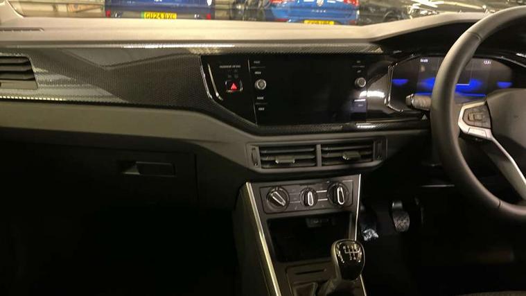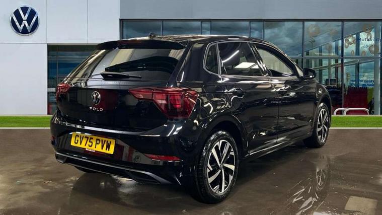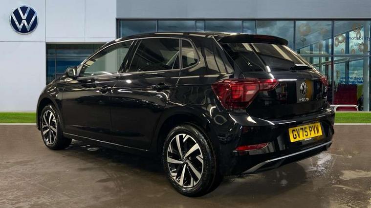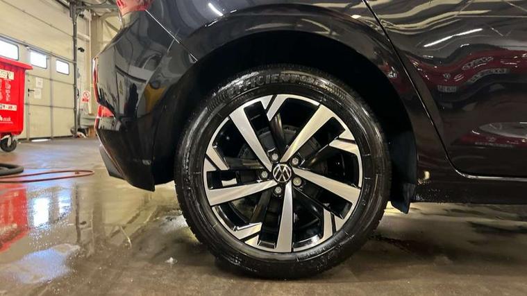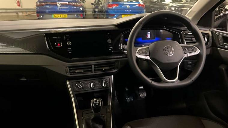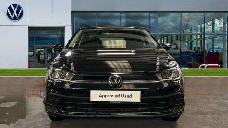 Adaptive cruise control without follow-to-stop and speed limiter, Advanced driver attention and drowsiness monitor, Bluetooth mobile phone interface, Dynamic road sign display, Emergency call service, Mobile phone preparation with inductive charging function, Multifunction front facing camera for distance control, Power assisted speed sensitive steering, Preparation for navigation system with media and internet package, Preparation for We connect and We connect plus, Rear view camera, Speedo and rev counter, electronic odometer, trip, service interval display and exterior temperature gauge, Standard rear axle, Travel Assist - Lane keeping system and traffic jam assist, Travel assist including emergency assist, Trip computer, Warning signal and warning light for front and rear seatbelts not fastened, Washer fluid level indicator, Wireless app connect, Front wheel drive, Rear shock absorpion, Start-stop system with battery regeneration (recuperation - energy recovery during braking), DAB Digital radio, Diversity antenna for FM reception, Automatic dimming interior rear view mirror, Automatic headlight control with LED separate daytime running lights with coming/leaving home function, Body colour bumpers with chrome inserts, Body colour door handles, Body colour door mirrors, Electric front windows, Engine badge deletion, Headlight range adjustment, Heat insulating and laminated safety glass windshield, LED Headlights, LED rear combination lamps, Power folding adjustable/heated exterior mirrors and front passenger exterior mirror lowering function, Rain sensor, Rear electric windows, Rear fog light, Rear side wing doors, Rear tinted glass from B-pillar backwards approx 65% tinted, Rear windscreen washer and wiper with interval delay, Third brake light, 12V power socket in centre console, 2 front and 2 rear reading lights with switch off delay and dimmer, 2 USB-C ports in the front, 2 USB-C charging sockets on the center console in the rear, 3 rear head restraints, 60/40 split folding rear seat and rear seat bench not split, Carpet mats, front and rear, Ceramique roof lining, Chrome plated radiator grille inserts, air vent surrounds and light switch surrounds, Door and side trim panel, Driver and front passenger seat height adjustment, Driver/passenger sunvisors with illuminated vanity mirrors, Front centre armrest, Front seat backrest storage pockets, Front standard seats, Handbrake lever handle in leather, Hartley/Thomas cloth upholstery, Headliner in recycled material, Isofix child seat preparation easy-fit (for two outer rear seats, and front passenger seat) compatible with I-size, Leather trimmed gear knob, Luggage compartment cover, Luggage compartment lighting, Removable luggage compartment floor, Single front passenger seat, Standard climatic zones, Standard pedal cluster, Three spoke leather wrapped multifunction steering wheel, Light and vision pack - Polo, 3 point height adj front seatbelts + pretensioners, 3 point seat belt for centre rear seat, 3 point seatbelts, outer rear with ECE lable, ABS, Driver and front passenger airbag with front passenger airbag deactivation, Drivers and front passengers safety optimised head restraints, ESC (Electronic stability control) + EDL (Electronic Differntial lock) and ASR (Traction control), Extended and predictive pedestrian/ cyclist protection, Front assist with autonomous emergency braking (for Adaptive Cruise Control ACC up to 130 mph), Front curtain and side airbags with center airbag, Front disc brakes, Hill hold control, Manual child lock in rear doors, Rear drum brakes, Single tone horn, Tyre pressure loss indicator, Alarm with interior protection, Anti-theft alarm system with interior monitoring, backup horn, and towing protection, Anti-theft wheel bolts, Electronic engine immobiliser, Lava stone black gloss/matt decorative inserts in dash and front door panels, 16" Torsby alloy wheels, Low rolling resistance tyres,