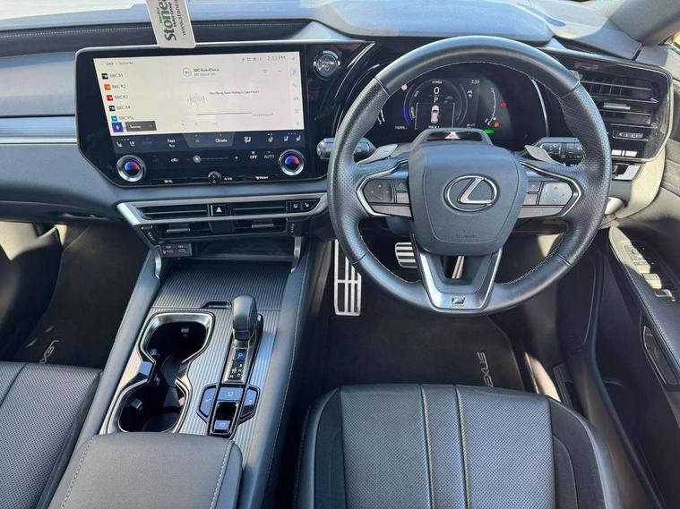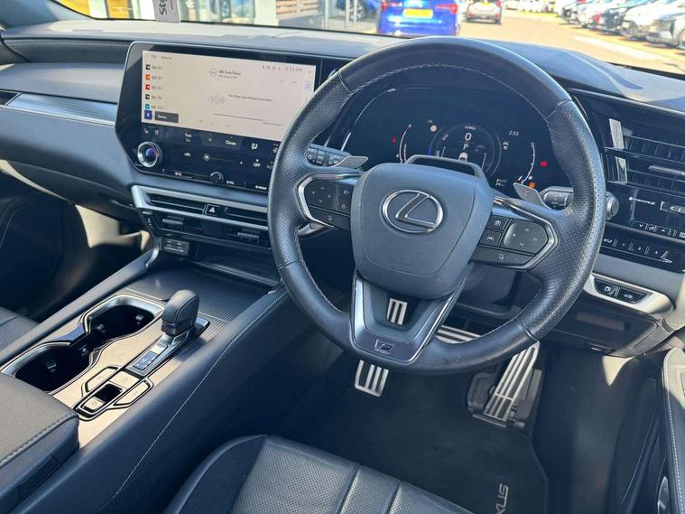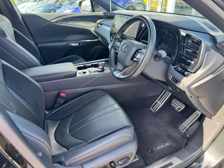 360 degree panoramic view monitor, Bluetooth mobile phone connectivity, BSM - Blind spot monitoring, Drive mode selector, E-call, Fully automated parking, Head up Display, Lexus link connected services including over the air updates, MM21 Lexus link pro - 14" HD touchscreen with embedded and cloud based navigation, voice assistant, connected services, over the air and always online, Push button starter, Rear cross traffic alert, Speed sensitive electric power assisted steering, Ultrasonic parking sensors, Wireless Apple CarPlay and wired Android Auto, Wireless Smartphone charger, Adaptive variable suspension, Direct 4 automatic transmission, Vehicle Stability Control (VSC), 12 speakers audio, 5 USB ports (3 front USB C and 2 rear USB C), DAB Digital radio, 3 projector bi-beam LED headlight with adaptive high beam system with bladescan technology, Auto dimming rear view mirror, Auto headlights, F SPORT exterior styling, F SPORT front and rear bumpers, F SPORT grille, Front and rear black window frame mouldings, Front and rear one touch power windows with voice command, Headlight washers, Heated, auto-folding door mirrors, auto dimming with rerverse tilt, turn indicators and panoramic view sensors, Intelligent clearance sonar, L-shaped rear light bar, LED brake lights and rear lights with emergency brake signal, LED cornering headlights, LED daytime running lights, LED front and rear fog lights, LED Indicators, Power back door with kick sensor, Privacy UV glass, rear doors and tailgate, Rain sensor windscreen wipers, Rear side wing doors, Rear wash/wipe, Roof rails, Variable front intermittent wipers, 12V accessory port centre console and luggage compartment, 2 cup holders in centre console, 2 way electric lumbar support for driver and front passenger, 2 x Sunvisors with vanity mirror and lamp, 3 rear headrests, 3 seat bench in 2nd row, 40:20:40 split folding rear seats, 64 colour LED ambient interior illumination with 14 pre-set themed colour tones, 8 way electrically adjustable front seats, Active sound control, Driver seat memory function, Easy access driver seat, Easy access steering wheel, F sport aluminium pedals, F SPORT heated and power adjustable steering, F Sport interior styling, F SPORT lever type shift control, Front aluminium scuff plates, Front headrests, Front tray in front of centre console, Glovebox, Heated and ventilated front seats, Leather steering wheel, Manually adjustable rear seats, Rear resin scuff plates, Single front passenger seat, Smooth F SPORT leather upholstery, Textile carpet mats, Three zone climate control air conditioning system with Nanoe technology, Two way opening centre armrest with storage, 2 x Isofix child rear seat restraints, 3 point ELR front and rear seatbelts with pretensioners, ABS, Black brake calipers, Curtain shield airbags (front and rear), Driver and front passenger 2 stage airbag, Driver/front passenger side airbags, Drivers knee airbag, E-Latch with safe exit assist, EBD + Brake Assist, Electronic parking brake, Electronically controlled braking, Extended lexus safety system+ 3 - lane change assist, front cross traffic assist, Front and rear left/right force limiters and tension reducers, Front and rear left/right seatbelt reminders, Front centre airbag, Hill assist control, Lexus safety system+ 3 - dynamic radar cruise control, pre collision system day and night, lane tracing assist, road sign, Manual child lock in rear doors, Passenger airbag cut-off device, Traction control, Tyre pressure warning, 2 x remote key fobs, Customisable auto door lock, Locking wheel nuts, Motion sensor key, Smart keyless entry, Thatcham category 1 alarm + immobiliser, VIN etching, Aluminium inlays, 21" F SPORT alloy wheels,