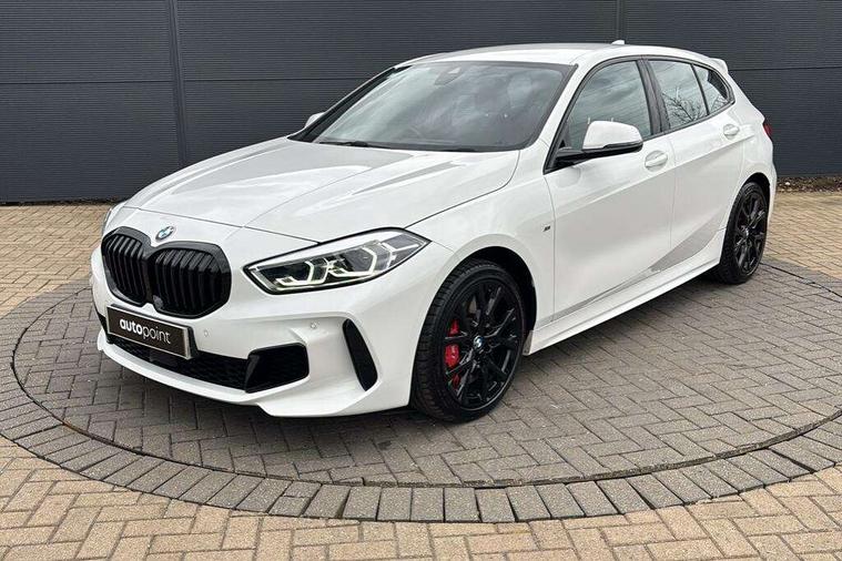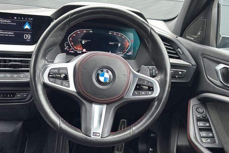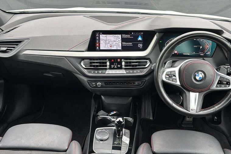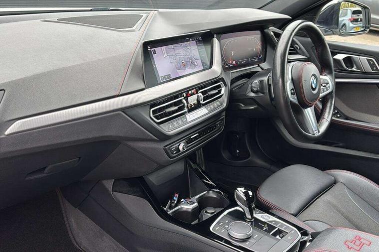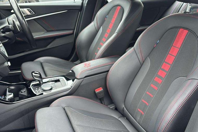 Active guard plus, Attentiveness assist, BMW ConnectedDrive online services, BMW Teleservices, Check Control warning system for monitoring of lights and door/luggage compartment open warning, Cruise control with brake assist, Eco pro mode, Electric power steering with Servotronic steering optimised at all speed ranges, Front axle single joint with specific axle kinematics to minimise drive influences on steering + provide increased rigidity agile driving behaviour, Integrated owners handbook, Lane departure warning system, Oil sensor for level and grade, On board computer, Optimum shift indicator, Personal Profile, Pull away assistant, Rigidly mounted rear subframe - Multi link construction with separate spring / damper configuration and excellent driving characteristics, Speed limit Info including no-overtaking indicator, Speed limiter, Aluminium lightweight construction, Anti roll bar front and rear, Balancer shaft, Double VANOS twin scroll turbocharging system, Drive Performance Control, Eight speed sport automatic transmission with gearshift paddle switches, Electronic differential lock, High precision injection, Larger fuel tank capacity (50 litres), M sport suspension with M128i xDrive specific settings, Petrol Particulate Filter, Twin tube gas filled shock absorbers with degressive characteristic curve, VALVETRONIC engine management, DAB Digital radio, Auto dimming rear view mirror, Automatic headlight beam throw control, Automatic windscreen wipers and automatic headlight, Black chrome tailpipe finishers, BMW individual high gloss shadow line with extended content, Body colour door handles, Body colour mirror caps, Body colour roof trims, Chrome 'M' logo side designation, Chrome kidney grille frame with Satin Aluminium struts, Direction indicator side lights in exterior mirrors, Fading support, Folding side mirrors with auto dimming/folding wing mirrors with auto dimming, Follow me home headlights, Front and rear bumper system with replaceable deformation elements, Front and rear electric windows with open and close fingertip control, anti trap facility and comfort closing, Front door sill finishers in black plastic with M designation in metallic look, Green tinted heat protection glazing, Heated, electrically adjustable exterior mirror aspheric on driver side, convex on passenger side, High gloss shadowline window frame, Recess cover mirror frames and B/C pillar embelisher trim, High level third brake light, Integrated front windscreen with washer jets, Kidney frame and struts in high gloss black extended, LED daytime running lights, LED eyebrow turn indicators, LED front fog lights, Lightweight engineering, Matt black air guide grilles, Matt black wheel arch trim, Model designation on electric bootlid, Nearside reverse light in rear light cluster, Preparation for high beam assistant, Rear fog lights, Rear side wing doors, Rear window wiper, Shark fin antenna, Trailer stabilisation logic, Visible VIN plate, Welcome lighting, 12V power socket in front centre console with blanking plug, 3 rear seat head restraints, 3 seat bench in 2nd row, Anthracite headlining, Black boot net with lashing eyes, Cargo function on 2nd seat row, Centre armrest in black/red highlight including embroidered 'ti' designation in red, Child seat ISOFIX attachment for two outer rear seats and front passenger seat with anchorage points, Conditioned based service, Driver and front passenger seat heating, Floor mats with red binding, Folding rear clothes hook, Four grab handles integrated in roof lining, Front and rear door pockets with bottle holders, Front and rear side armrest integrated into door trim, Front armrest, Front sports seats, Glove compartment, Height adjustable front head restraints, Instrument panel top section , door armrests and door panels in black/red highlight, Luggage compartment for bag hooks on left and right, foldable luggage compartment liner and four lashing eyelets, Manual adjust steering wheel, Multi-function controls for steering wheel, Single front passenger seat, Storage compartment in centre console, Sun visors with vanity mirrors and insert tab, Three spoke M sport design multi function leather steering wheel in unique red stitching, Two front centre console cupholders, Two zone automatic air conditioning, Additional interior lighting pack - 1 Series, BMW live cockpit professional pack- 1 Series, Connected pack professional - 1 Series, Interior lights pack - 1 Series, M Sport exterior styling aerodynamics pack - 1 Series, 2 tone horn, 3 point seatbelts on all seats, front pyrotechnic belt tensioners, stopper and belt force limiters, rear coded belt buckles, Airbags - Front driver/passenger, front and rear curtain head protection, front side, manual deactivation of front passenger airbag, Anti lock braking system (ABS) with brake assist, BMW emergency call, Brake drying, Braking readiness, Child proof locking system in rear door, City braking function, Comfort modes, Cornering brake control, Crash sensor activating central locking release, hazard warning lights, fuel cut off, interior lighting + activation of safety battery terminal clamp, Driver and front passenger seat belt security check, Dynamic stability control + (DSC+), Dynamic Traction Control - DTC, Electrically operated hand brake including automatic hold function, Front and rear disc brakes, M Sport brakes with red calipers, M Sport seatbelts, Seatbelt warning, Side impact protection, Tyre pressure monitoring system, Warning triangle and first aid kit, Central locking switch for all doors, fuel filler cap and luggage compartment, Deadlocking function system to all doors, Drive away locking system on all doors and luggage compartment with de-activated in iDrive settings, Locking wheel bolts, Remote control with integrated key with High-gloss Black inlay and M designation and 1 button for open/ close lock, window, open luggage compartment, Start/stop button illuminated in centre console with keyless engine start and 