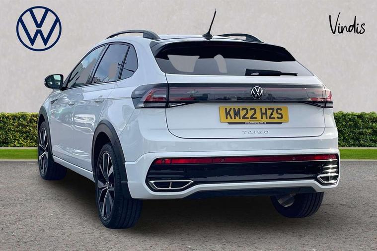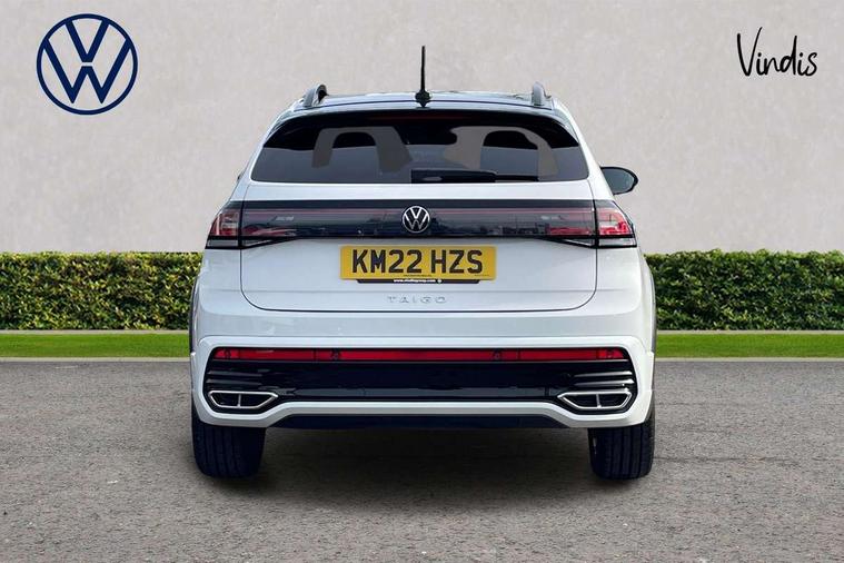 App-Connect including App-Connect Wireless, Digital cockpit pro - 10.25" high resolution TFT dash display screen with customizable menus and information, Driver alert system, Driving profile selection, e-Call (emergency call), Power Steering, Travel assist including emergency assist, Washer fluid level indicator, Wireless Charging including Bluetooth, Start-stop system with battery regeneration (recuperation - energy recovery during braking), XDS electronic differential lock for improved traction and handling, Digital radio reception (DAB+), Diversity antenna for FM reception, WeConnect plus, Aspherical driver's exterior mirror, Auto headlights, Body coloured bumpers, Body coloured exterior mirror housings and door handles, Bumpers in R-Line style, Electric windows, External USB type C socket and charging sockets, Front fog lamps with cornering function, Front scuff plates with R-Line logo, Headlight range control, LED headlamps, LED rear combination lamp, LED third brake light, Left convex exterior mirror, Power folding adjustable/heated exterior mirrors and front passenger exterior mirror lowering function, Rear fog light on one side, reversing light on both sides, Rear side wing doors, Rear wash/wipe with intermittent wipe setting, 12V socket in centre console, 2 front reading lights, 3 rear head restraints, 3 seat bench in 2nd row, Air care climatronic air conditoning system with active combination filter and 2-zone temperature control, Ambient lighting with logo projection, Black carpets, Black roof lining, Child seat anchor for child seat system i-Size, 2x top tether and child seat anchor in front on front passenger side, Chrome bezel for instrument cluster, vents, door handles + gear shift, Driver and front passenger seat height adjustment, Front + rear carpet mats, Front centre armrest, Front footwell illumination, Front sports comfort seats, Height and reach adjustable steering wheel, Interior ambient lighting and surround lighting, Karoso artvelours cloth upholstery, Leather trimmed gear knob, Leather wrapped multifunction steering wheel, Luggage compartment floor, Luggage compartment light, Lumbar support for driver's and front passengers seat, Seat covers in grey + titanium black, Single front passenger seat, Split folding backrest with centre armrest and unsplit rear seat bench, Stainless steel pedals, Storage compartment under front seats, Sun visors with illuminated vanity mirrors, Chrome Package - Taigo, Drivers assistance pack - Taigo, Light and Sight pack including High beam assist - Taigo, 2 x 3-point seatbelts/outer rear seats with ECE label, 3-point seat belts in front with pretensioner and height adjustment, 3-point seatbelt for centre rear seat, Driver and front passenger airbags with front passenger airbag de-activation, front side and curtain airbags, Driver and front passenger safety-optimised head restraints, Electronic stability control, Extended and predictive pedestrian/ cyclist protection, Front and rear disc brakes, Front curtain and side airbags with center airbag, Hill start assist, Manual rear child locks, Single tone horn, Tyre pressure loss indicator, Anti-theft alarm system with interior monitoring, backup horn, and towing protection, Anti-theft wheel bolts, Grey anodised matte decorative inserts in dash and front door panels, Low rolling resistance tyres,