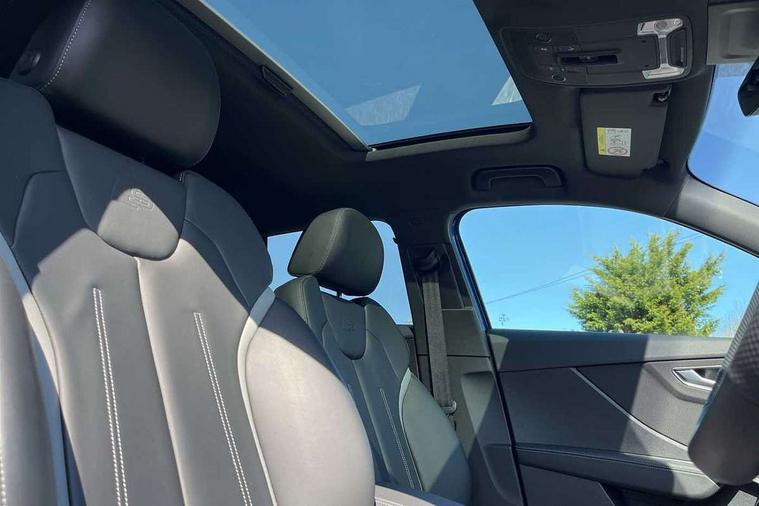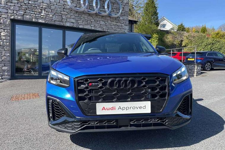 3D map display, Adaptive cruise control with active lane assist/emergency assist, Audi connect navigation and infotainment includes innovative services, Audi connect remote and control connects your vehicle to your smartphone, Audi drive select: S tronic - power steering assistance + engine + gearshift (modes: comfort, auto, dynamic, efficiency, individual), Audi phone box with wireless charging, Audi side assist including rear cross-traffic assist and audi pre sense basic, Audi smartphone interface - Apple carplay/Android Auto, USB connect, 2xSDXC card readers, voice control for navi, telephone, music and 3rd party apps, Audi virtual cockpit, Automatic start/stop system with recuperation, Bluetooth interface includes bluetooth audio streaming, Camera based traffic sign recognition, Distraction and Fatigue warning, E-call, Instrument dials with S logo, Jukebox hard drive memory for music (10GB), Lane departure warning, MMI navigation plus with 8.8" touchscreen, Natural voice recognition, Park assist system including front parking sensors, Power operated tailgate, Progressive steering, Rear parking sensors, Reversing camera, Traffic jam assist with emergency assist, Quattro all wheel drive, S sport suspension lowered by 20mm, DAB Digital radio, SONOS premium sound system, USB type C port, Audi beam, Auto dimming rear view mirror, Black window trims, Brake lights, tail lights, reversing lights, and rear number plate lights in LED technology, C-Pillar blade in Brilliant black, Electrically adjustable, folding, auto dimming and heated door mirrors with integrated LED side indicators, Exterior mirror caps in Brilliant black, Front windscreen with grey tinted sunband, LED daytime running lights, LED third brake light, Matrix headlights with LED rear lights, dynamic rear indicators, cornering lights, Privacy glass - dark tinted rear and rear side windows from B-pillar backwards, Quattro decals on rear side flank, Rear side wing doors, Rear wiper, S design body styling - SQ2 front bumper, S design underbody protection, SQ2 rear diffuser, S design radiator grille with horizontal struts and SQ2 logo, S specific dual-branch black tailpipes, with twin tailpipes on both the left and right in black, Sport bumpers in manhattan grey, Variable front intermittent wipers, Wheel arch trims in manhattan grey, 12V socket in front, 3 seat bench in 2nd row, 3 spoke leather trimmed multi function steering wheel with paddleshift features S badging, 4-way electric lumbar support for front seats including manual seat height adjustment for both front seats, 40/20/40 split folding rear seat bench with centre armrest and cupholder, Black carpets, Black cloth headlining, Dual zone electronic climate control, Fine Nappa leather upholstery with S embossed logo, Front and rear head restraints, Front centre armrest, Front sport seats, Front/rear floor mats, Heated front seats, Height/reach adjust steering wheel, ISOFIX child seat mounting in front passenger and rear outer seats, Single front passenger seat, Stainless steel pedals, Black styling pack - Q2, Extended interior upholstery pack - SQ2, Storage and luggage compartment pack - Q2, Technology Pro pack - SQ2, 3x3 point rear seatbelts, 6 airbags - Front, curtain and front side airbags, Brake calipers painted black with S logo at the front, Electromechanical parking brake, Electronic stabilisation control including ABS, ASR and EDL, Front passenger airbag deactivation, Hill hold assist, Pre-sense front with pedestrian recognition, S model enhanced braking system, Seatbelt monitoring, Tyre pressure warning light with visual and acoustic warning, Warning triangle and first aid kit, Anti theft alarm, Anti theft wheel bolts, Electronically operated child locks, Remote central door locking, Aluminium interior element, Black dashboard, Gloss black centre console, 19" 5 double spoke design alloy wheels in gloss white with diamond cut finish, Tool kit,