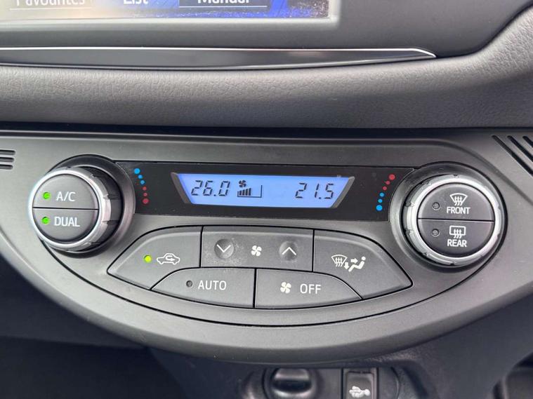 Bluetooth system, Cruise control, External temperature gauge, Fuel indicator with low level warning, Lane departure warning system, Lights on warning, Multi-information display, Power Steering, Push button starter, Rear parking sensor, Rear view camera, Road sign assist - RSA, TFT display screen, Touch 2 Go navigation system, Trip computer, 6 speakers, Auxiliary input socket, DAB Digital radio, Steering wheel mounted audio/telephone controls, Touch 2 touchscreen Radio with iPod connectivity, USB connection, 2 speed front wipers + intermittent wipe, Auto high beam, Auto up and down function on drivers window, Body colour bumpers, Body colour door handles, Body coloured door mirrors, Chrome fog light surround, Daytime running lights, Door mirror integrated indicators, Drivers window one touch up/down, Electric adjustable heated door mirrors, Electric front windows, Follow me home headlights, Front fog lights, Green tinted glass, Heated rear windscreen, Projector headlamps, Rain sensitive windscreen wipers, Rear wiper, Turning signal integrated indicators in door mirrors, 3 spoke leather steering wheel, 60/40 split folding rear seat, Active headrests, Boot light, Cloth upholstery, Driver seat height adjust, Driver/passenger vanity mirrors with covers, Dual zone automatic climate control, Front cupholders x 2, Front map reading lights, Front seats with lumbar support, Glovebox, Height adjustable front head restraints, Height adjustable rear seat head restraints (x3), Isofix system on outer rear seats, Leather gear knob, Leather parking brake handle, Rear cupholder, Removable rear parcel shelf, Sliding front seats, Tilt/telescopic steering column, 3 point seatbelts on all rear seats, ABS+EBD+Brake assist, Collision mitigation braking system, Curtain airbags, Driver and passenger airbags, Drivers knee airbag, Emergency brake light system (EBS), Front passenger airbag on/off switch, Front seatbelt reminder, Front side airbags, Height adjustable front seatbelts with pre-tensioners and load limiters, Hill start assist control (HAC), Passenger airbag deactivate switch, Rear child proof door locks, Rear seat belt reminder, Road sign information display, Seatbelt warning lamp and buzzer, Toyota safety sense including Road sign assist, Pre collision system, auto high beam and lane departure alert), Tyre pressure monitoring system, Vehicle stability control VSC + traction control, Engine immobiliser, Remote central locking, Instrument panel in grey, Space saver spare wheel,