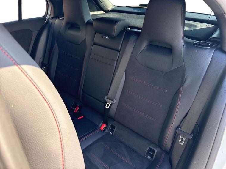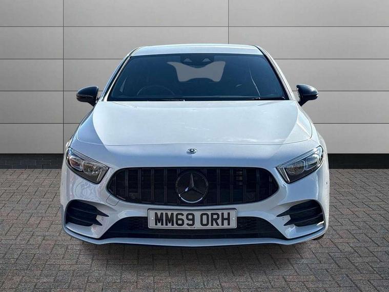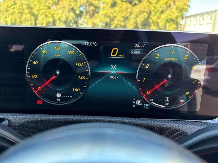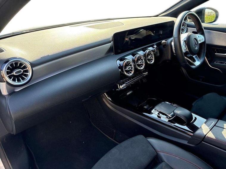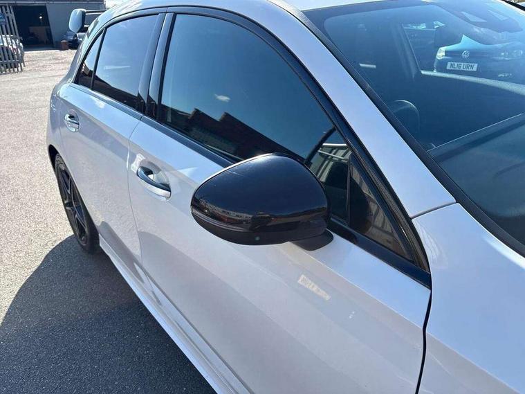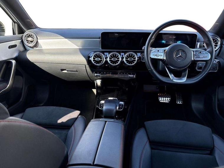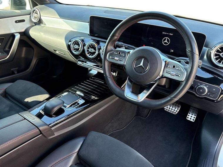 10.25" Digital instrument cluster display screen, 10.25" media display, 180 degree rear view camera with parking guidelines, Active lane keep assist, Active park assist with parktronic system including front and rear parking sensors, Attention assist, Brake pad wear indicator warning light, Cruise control + speed limiter, Direct steering, Dual bluetooth interfaces, DYNAMIC SELECT with a choice of driving modes (ECO, Comfort, Sport and Individual), ECO start/stop function, Fluid level warning indicator for fuel, oil, coolant and washer fluid, Hard-disk navigation, Hey Mercedes Voice activation, Lamp failure indicator, MBUX augmented reality for navigation, Mercedes me connect including emergency call system, accident recovery, breakdown and maintenance management, Outside temperature gauge, Owners manual in English, Pre-installation for private car sharing, Pre-installation for Vehicle Monitoring, Pre-installation for Vehicle Setup, Preinstallation for Mercedes Benz link, Service indicator (ASSYST), Smartphone integration with Apple CarPlay and Android auto, Speed sensitive power steering, Trip computer, Wireless charging, Lowered comfort suspension, Rear axle multi-link, 10 speakers, 2 USB ports (type C) in rear stowage compartment and one in front of center console, DAB Digital radio, MBUX multimedia system with DAB digital radio and touchpad including satellite navigation, Mercedes-Benz advanced sound system - 225W, 4 Electric Front and Rear windows, Adaptive brake lights, AMG bodystyling - Front apron with splitter in chrome, rear apron with chrome trim and chrome visible trim elements in tailpipe, Black weather strip, Body colour bumpers, Body colour door handles, Body colour side skirt, Body coloured door mirrors, Chrome beltline trim, Diamond radiator grille with chrome pins and silver louvre + chrome insert, Electric adjustable and heated door mirrors with integrated LED side indicators, Exhaust system - Twin visible tailpipes in polished stainless steel, Headlamp assist automatic headlamp activation, Heated glass rear windscreen + timer control, Illuminated front door sill panels with Mercedes-Benz lettering, LED high performance headlamps with integrated LED daytime running lights, LED tail lamp, LED third brake light, Privacy glass, Radio aerial, Rain sensing windscreen wipers with two sensitivity settings, Rear fog lights, Rear wiper, Window line trim strip in chrome, 3 Spoke flat bottom leather multi function steering wheel with perforated leather in grip area, 40:20:40 split folding rear seats, Artico man-made leather/Microfibre Dinamica upholstery with red contrast stitching, Auto Mercedes-Benz child seat recognition sensor, Black air vents with surround in silver chrome, Black roof lining, Brushed stainless steel sports pedals with rubber studs, Controller on centre console with chrome surround, Floor mats with stitched edging and AMG lettering, Front centre armrest with storage compartment, Front seat backs luggage nets, Front seat cushion length adjustment, Galvanished gear shift paddles on steering wheel, Heated front seats, Height/reach adjustable steering column, Interior lighting - 64 colour Ambient lighting, Manual height adjustable front seats, Rear armrest with 2 cupholders, Rear head restraints, Seat occupancy sensor for front passenger seat, Spectacles compartment for driver, Sports seats with integrated headrests, Stowage compartment in centre console with retractable cover, Sunvisors with illuminated vanity mirrors, Touchpad on center console, Twin front cupholders, Two zone thermotronic luxury automatic climate control, Light and sight pack - A Class, Mirror package - A Class, Seat comfort pack - A Class, 3 rear 3 point seatbelts, ABS with Brake Assist, Active bonnet, Active brake assist includes forward collision warning system with autonomous braking, Adaptive brake assist with hold function and hill start assist, Childproof locks manually operated for rear doors and electrically operated for rear power windows, Crash responsive emergency lighting, Driver and passenger head and side airbags, Drivers knee airbag, Dual stage driver/passenger airbags, Electronic parking brake, ESP curve dynamic assist, ESP with ASR, Front and rear seatbelt reminder, Front brake callipers with Mercedes Benz lettering, ISOFIX and top tether child seat fixing points in two outer rear seats, Tyre pressure monitoring system, Warning triangle and first aid kit, Window airbags, Alarm system/interior protection/immobiliser, Keyless entry lock/unlock, Keyless Go, Remote central locking and crash sensor with emergency opening function, Black seatbelts, Light aluminium with longitudinal grain interior trim, 18" AMG 5 twin spoke light alloy wheels in titanium grey with highsheen finish, Summer tyres, Tirefit sealant kit,