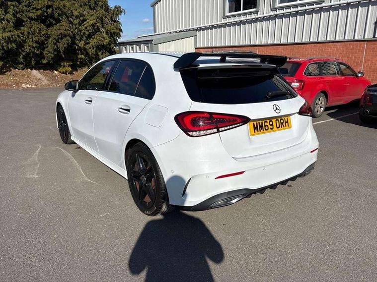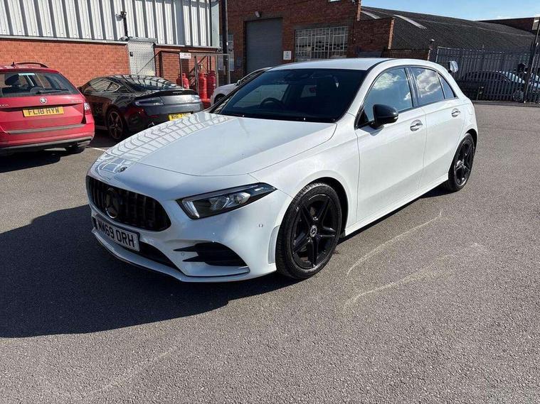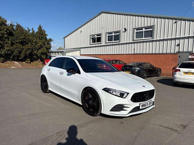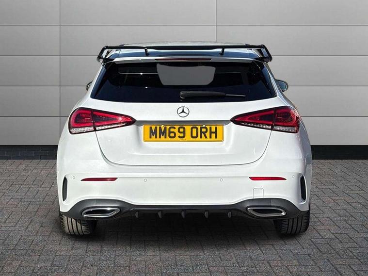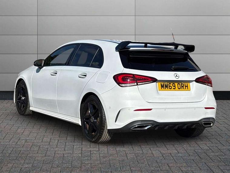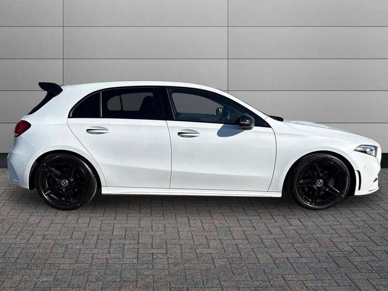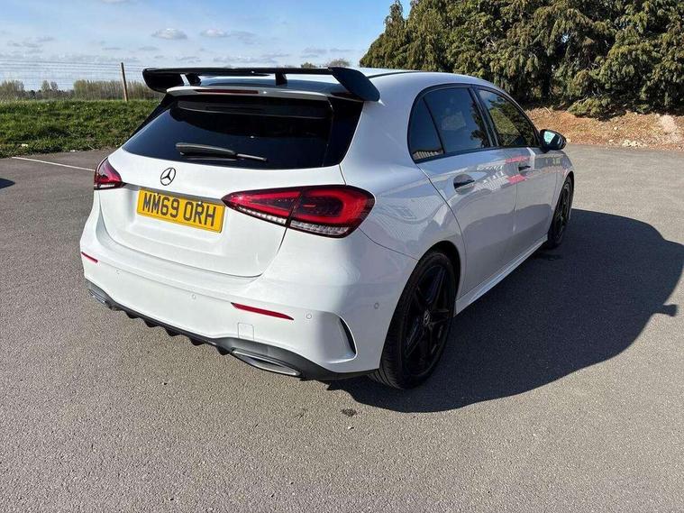 10.25" Digital instrument cluster display screen, 10.25" media display, 180 degree rear view camera with parking guidelines, Active lane keep assist, Active park assist with parktronic system including front and rear parking sensors, Attention assist, Brake pad wear indicator warning light, Cruise control + speed limiter, Direct steering, Dual bluetooth interfaces, DYNAMIC SELECT with a choice of driving modes (ECO, Comfort, Sport and Individual), ECO start/stop function, Fluid level warning indicator for fuel, oil, coolant and washer fluid, Hard-disk navigation, Hey Mercedes Voice activation, Lamp failure indicator, MBUX augmented reality for navigation, Mercedes me connect including emergency call system, accident recovery, breakdown and maintenance management, Outside temperature gauge, Owners manual in English, Pre-installation for private car sharing, Pre-installation for Vehicle Monitoring, Pre-installation for Vehicle Setup, Preinstallation for Mercedes Benz link, Service indicator (ASSYST), Smartphone integration with Apple CarPlay and Android auto, Speed sensitive power steering, Trip computer, Wireless charging, Lowered comfort suspension, Rear axle multi-link, 10 speakers, 2 USB ports (type C) in rear stowage compartment and one in front of center console, DAB Digital radio, MBUX multimedia system with DAB digital radio and touchpad including satellite navigation, Mercedes-Benz advanced sound system - 225W, 4 Electric Front and Rear windows, Adaptive brake lights, AMG bodystyling - Front apron with splitter in chrome, rear apron with chrome trim and chrome visible trim elements in tailpipe, Black weather strip, Body colour bumpers, Body colour door handles, Body colour side skirt, Body coloured door mirrors, Chrome beltline trim, Diamond radiator grille with chrome pins and silver louvre + chrome insert, Electric adjustable and heated door mirrors with integrated LED side indicators, Exhaust system - Twin visible tailpipes in polished stainless steel, Headlamp assist automatic headlamp activation, Heated glass rear windscreen + timer control, Illuminated front door sill panels with Mercedes-Benz lettering, LED high performance headlamps with integrated LED daytime running lights, LED tail lamp, LED third brake light, Privacy glass, Radio aerial, Rain sensing windscreen wipers with two sensitivity settings, Rear fog lights, Rear wiper, Window line trim strip in chrome, 3 Spoke flat bottom leather multi function steering wheel with perforated leather in grip area, 40:20:40 split folding rear seats, Artico man-made leather/Microfibre Dinamica upholstery with red contrast stitching, Auto Mercedes-Benz child seat recognition sensor, Black air vents with surround in silver chrome, Black roof lining, Brushed stainless steel sports pedals with rubber studs, Controller on centre console with chrome surround, Floor mats with stitched edging and AMG lettering, Front centre armrest with storage compartment, Front seat backs luggage nets, Front seat cushion length adjustment, Galvanished gear shift paddles on steering wheel, Heated front seats, Height/reach adjustable steering column, Interior lighting - 64 colour Ambient lighting, Manual height adjustable front seats, Rear armrest with 2 cupholders, Rear head restraints, Seat occupancy sensor for front passenger seat, Spectacles compartment for driver, Sports seats with integrated headrests, Stowage compartment in centre console with retractable cover, Sunvisors with illuminated vanity mirrors, Touchpad on center console, Twin front cupholders, Two zone thermotronic luxury automatic climate control, Light and sight pack - A Class, Mirror package - A Class, Seat comfort pack - A Class, 3 rear 3 point seatbelts, ABS with Brake Assist, Active bonnet, Active brake assist includes forward collision warning system with autonomous braking, Adaptive brake assist with hold function and hill start assist, Childproof locks manually operated for rear doors and electrically operated for rear power windows, Crash responsive emergency lighting, Driver and passenger head and side airbags, Drivers knee airbag, Dual stage driver/passenger airbags, Electronic parking brake, ESP curve dynamic assist, ESP with ASR, Front and rear seatbelt reminder, Front brake callipers with Mercedes Benz lettering, ISOFIX and top tether child seat fixing points in two outer rear seats, Tyre pressure monitoring system, Warning triangle and first aid kit, Window airbags, Alarm system/interior protection/immobiliser, Keyless entry lock/unlock, Keyless Go, Remote central locking and crash sensor with emergency opening function, Black seatbelts, Light aluminium with longitudinal grain interior trim, 18" AMG 5 twin spoke light alloy wheels in titanium grey with highsheen finish, Summer tyres, Tirefit sealant kit,