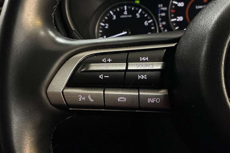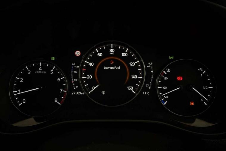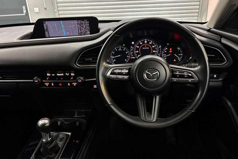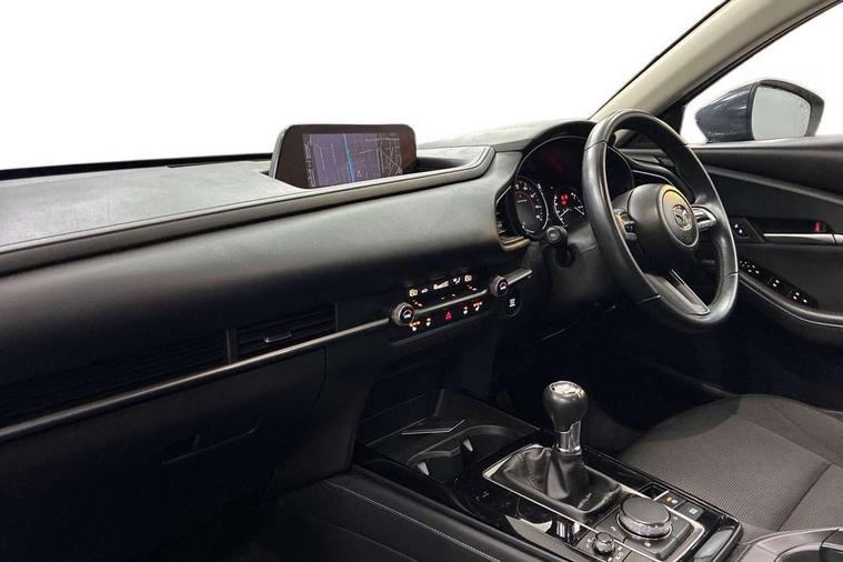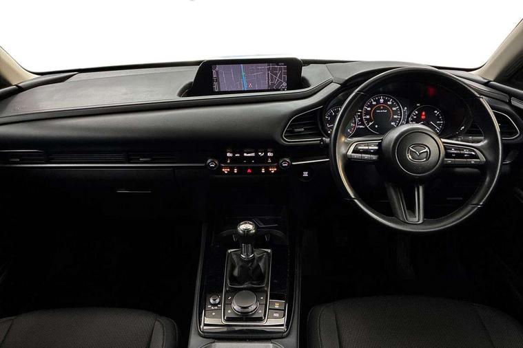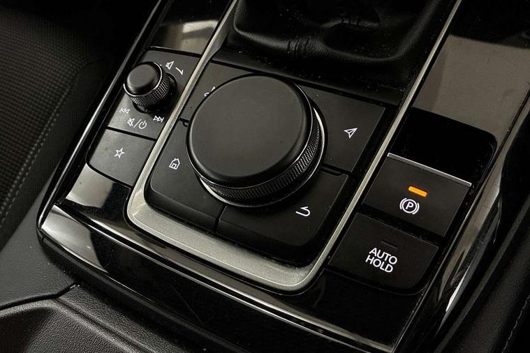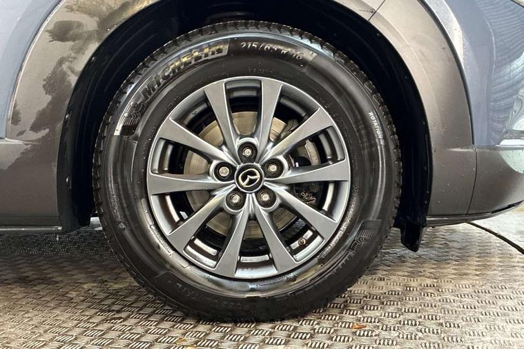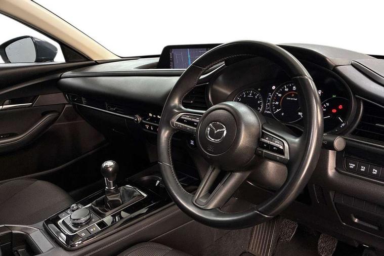 7" TFT Colour driver instrument panel display, 8.8" Colour centre touch screen display with Mazda Connect infotainment, Adaptive cruise control (Mazda radar cruise control), Apple car play/Android Auto, Blind spot monitoring with rear cross traffic alert, Driver attention alert system, E-call with GPS, Emergency stop signalling system, Engine start/stop button, Front and rear parking sensors, Integrated bluetooth, Integrated Mazda navigation system, Intelligent speed assist, Lane keep assist system (LAS) with Lane departure warning system (LDWS), Mazda connected services, PAS, Reversing camera, Service indicator, Traffic sign recognition, Trip computer, i-stop, 2 USB charging ports in front inner central armrest, AM / FM / DAB radio with 8 speakers, Multimedia Commander including separate volume dial, Steering wheel mounted audio/bluetooth controls, B-pillar and C-pillar garnishes in satin black finish, Auto dimming driver's door mirror, Auto dimming rear view mirror, Auto headlight levelling, Body coloured, electrically adjustable, heated auto power folding door mirrors with integrated indicators, Chrome finish signature wing in front grille, Coming/leaving home lighting function, Dual chrome exhaust, Dusk sensing headlights, Electric front/rear windows with one touch auto up/down, Front kodo turn signal, Gloss black rear roof spoiler, LED headlights with halogen daytime running lights and high beam control, LED rear combination lights, Rain sensing front wipers with adjustable speed and intermittent wipe, Rear fog lights, Rear side wing doors, Rear wiper, Satin black front grille, Third brake light, 12V power outlet in centre console, 3 seat bench in 2nd row, 60/40 split fold down rear seats, Cloth upholstery with interior accents, Dark cloth door panel inserts, Dashboard, door cards and front centre armrest in black cloth, Driver and front passenger visors with covered vanity mirror and driver ticket holder, Driver seat manual slide, recline, height and seat tilt adjust, Driver, front passenger and two rear door storage, Driver, Front passenger and two rear grab handles with coathooks, Dual zone climate control air conditioning with rear air vents, Folding rear centre armrest with two cup holders, Front and rear (x3) head restraints, Front and rear LED lighting, Front armrest, Front centre storage with two cupholders, Front passenger seatback pockets, Front passengers seat manual slide, recline and height adjustment, Gear shift indicator, Glovebox illumination, Heated front seats with 3 stage setting, ISOFIX child seat anchorage points attached on outer rear seats, Leather wrapped gear shift knob, Leather wrapped steering wheel with telescopic and tilt adjustment, LED luggage compartment lighting, Light roof headlining and pillars, Roof mounted sunglasses holder, Single front passenger seat, 3 point ELR front seat belts x2 with pretensioners, 3 point ELR rear seat belts, Anti-lock braking system (ABS), Drivers knee airbag, DSC - Dynamic Stability Control, Electronic parking brake with auto disengage function and auto hold function, Front and rear curtain airbags, Front dual stage driver and single stage front passenger airbags, Front passenger airbag cut-off switch, Front side airbags, Front smart city brake support, G-Vectoring control plus, Hill launch assist, Manual child lock in rear doors, Mild Hybrid system with regenerative braking, Seatbelt reminder for driver/front passenger and rear seats, Traction control system (TCS), Tyre pressure monitoring system (TPMS), Remote central locking with deadlocking and automatic door lock when driving, Smart keyless entry, Thatcham accredited alarm and immobiliser, 16" Grey alloy wheels, Emergency tyre repair kit,