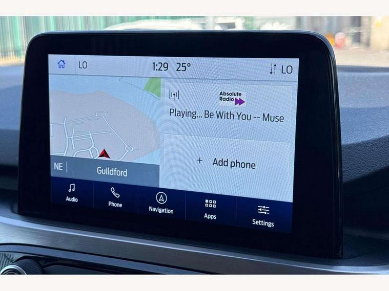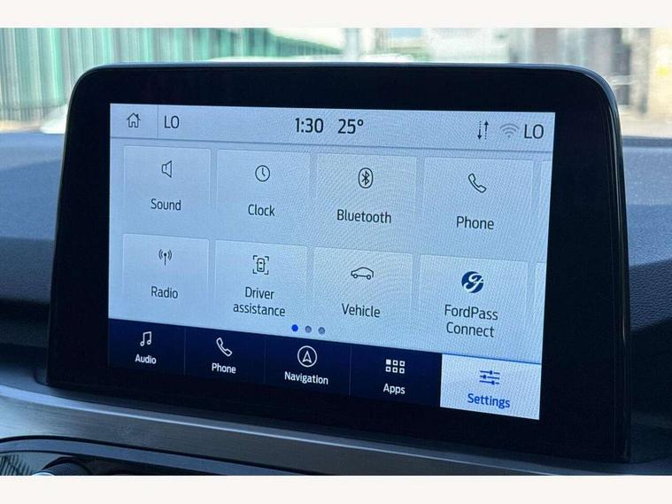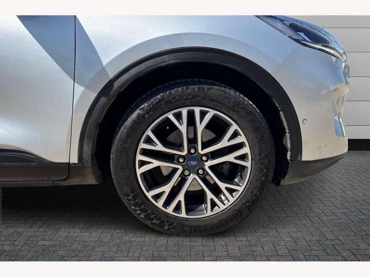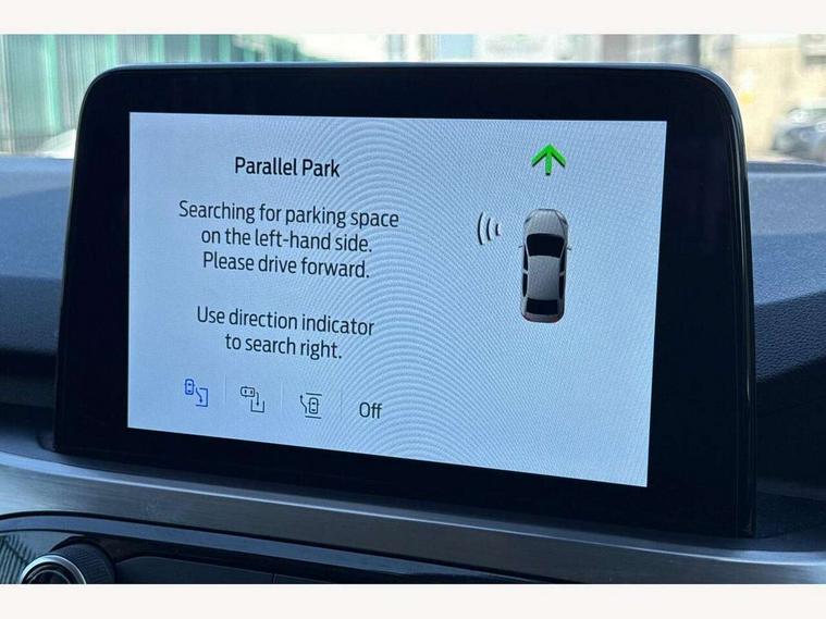 Active park assist, Adaptive cruise control (ACC) with traffic sign recognition, BLIS (Blind spot information system), Driver impairment monitor, Eco coaching, Ford easy fuel, Front and rear parking sensors, Front and rear view camera, Intelligent speed assist, Lane keeping aid with lane departure warning, Mobile phone wireless charging pad, Power assist steering, Selectable drive modes, SYNC 3 with navigation, DAB audio, Auto dimming rear view mirror, Auto headlamps with high and low beam, Auto wipers, Door edge guards, Electrically operated front and rear windows, Front LED fog lamps, Front scuff plates, Full LED headlamps, LED daytime running lights, LED rear lights, Power folding heated door mirrors with puddle lights, Power front/rear windows with global close, Privacy glass, Quickclear heated windscreen, Rear spoiler, Silver roof rails, Twin exhausts, 2nd row sliding seats, 8 way manual passenger seat including lumbar support and height adjust, Ambient lighting, Centre console with electronic parking brake, Dual electronic automatic temperature control, Front and rear floor mats, Front and rear head restraints, Leather steering wheel and gear knob, Rear charging point, Salerno partial leather upholstery, Sports seats, B&O with small instrument cluster pack - Kuga, 3x3 point rear seatbelts, Airbags - front driver/passenger, front and rear curtain, Drivers knee airbag, Electronic stability control (ESC) and ABS, Ford MyKey Gen 2 safety system, Hill launch assist, Post collision braking, Powered child proof rear door locks, Pre collision assist with autonomous emergency braking, Tyre pressure monitoring system, Engine immobiliser, Keyless entry, Keyless start with 'Ford Power' starter button, Locking wheel nuts, Remote powered central double locking doors, Thatcham category 1 alarm,
