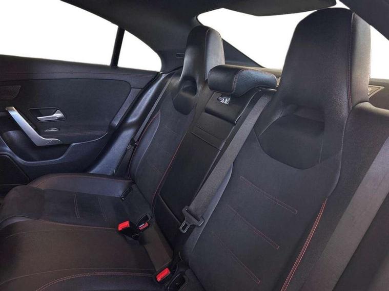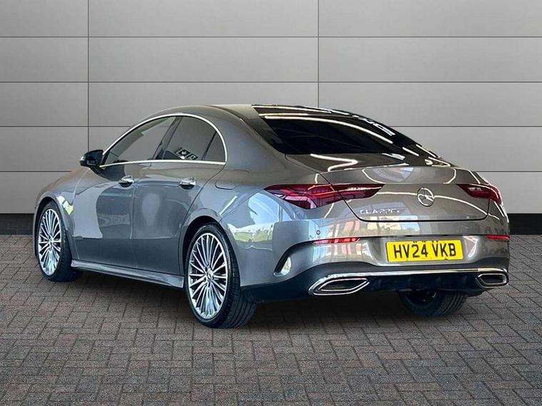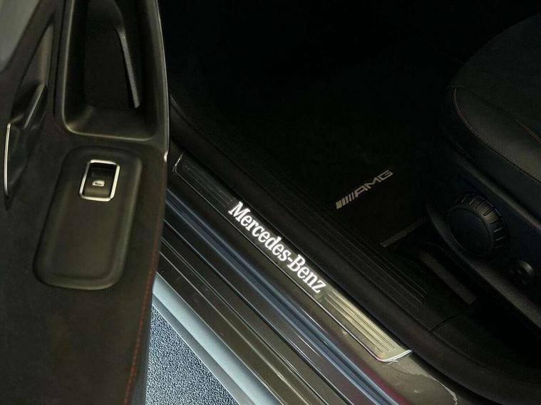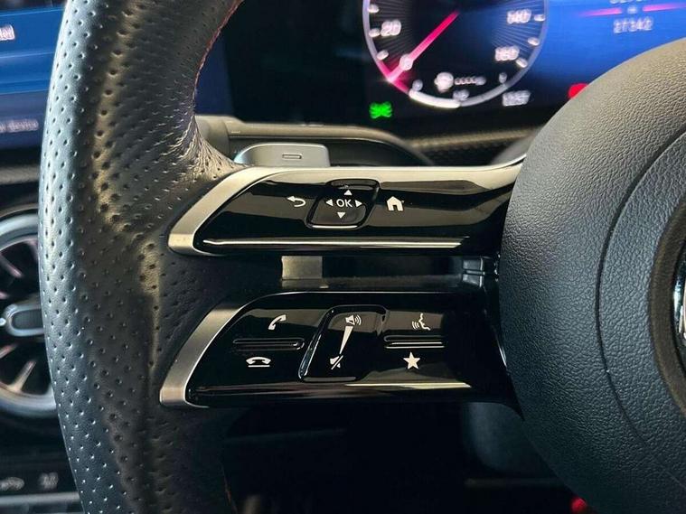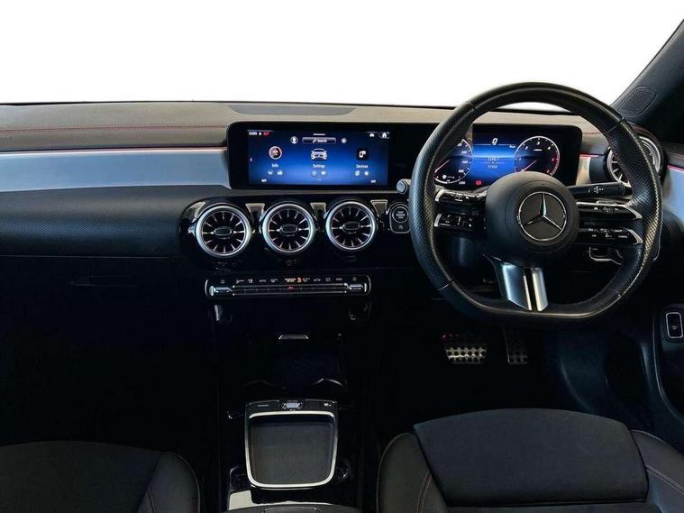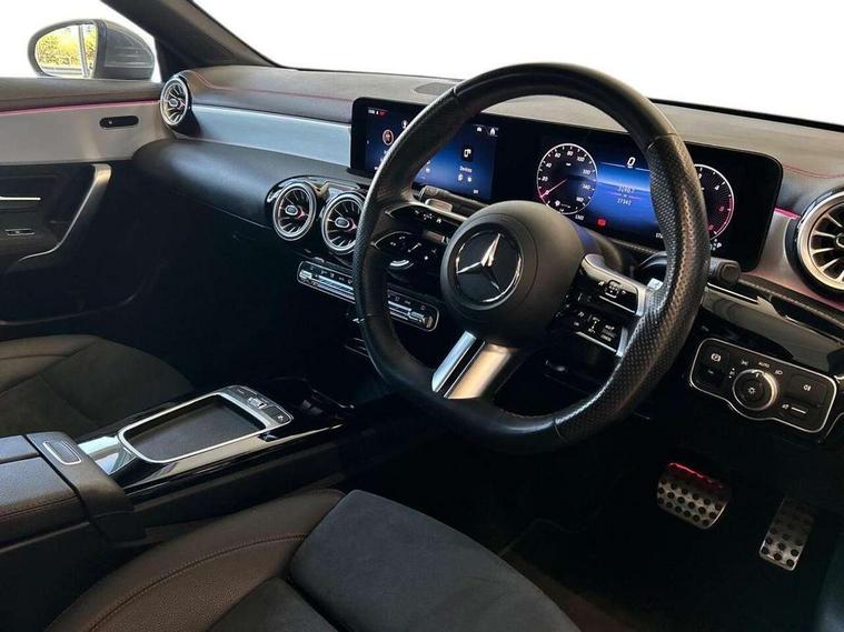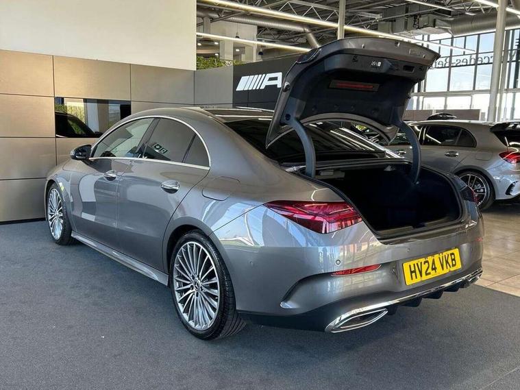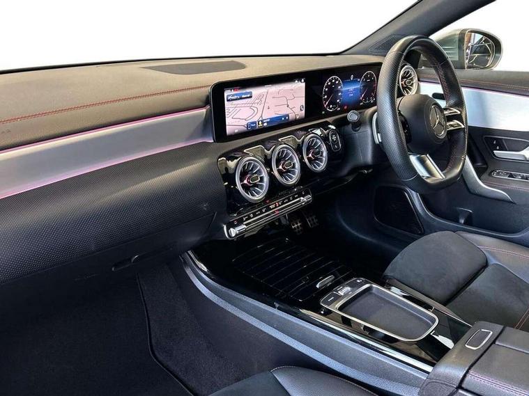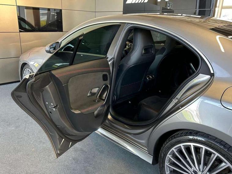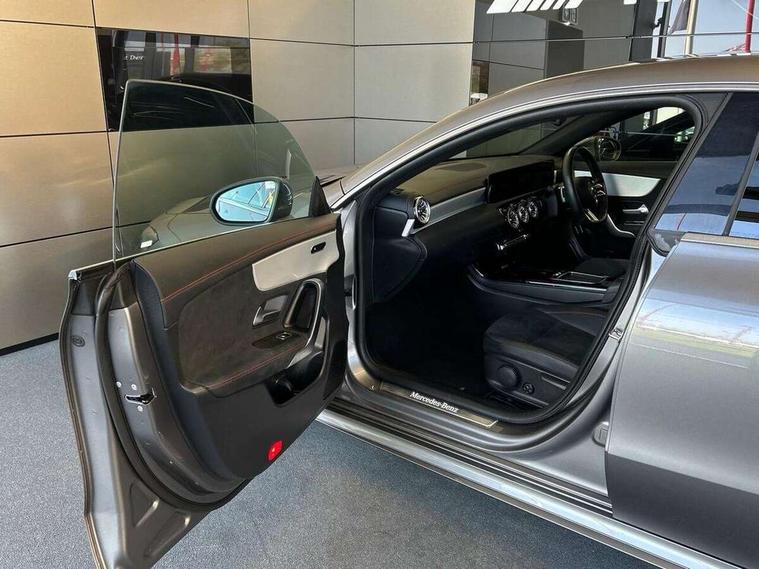 10.25 inch Instrument display with digital cockpit, 10.25 inch touchscreen central media display, Active lane keeping assist, Attention assist - Monitors steering behaviour and long journey fatigue, Blind spot assist, Bluetooth connection, Car wash mode, Cruise control with limiter, Direct steer system, DYNAMIC SELECT with a choice of driving modes (ECO, Comfort, Sport and Individual), ECO start/stop function, Fluid level warning indicator for fuel, oil, coolant and washer fluid, Hard-disk navigation, Hey Mercedes Voice activation, Lamp failure indicator, MBUX augmented reality for navigation, Mercedes me connect including emergency call system, accident recovery, breakdown and maintenance management, Mercedes me remote services, Outside temperature gauge, Owners manual in English, Pre-installation of private car share, Radio aerial integrated into front and rear windshields, Service indicator (ASSYST), Smartphone integration with Apple CarPlay and Android auto, Speed limit assist, Trip computer in multifunction display with current consumption indicator, Wireless charging in the front centre console, Comfort suspension with ride height lowering, Rear axle multi-link, DAB digital radio tuner, MBUX multimedia system, Mercedes Benz advanced sound system (225 W) with 10 speakers, 1 central speaker, speakers on doors, a tweeter on door, one sub woofer + boost amplifier, Pre installation for Mercedes Benz Link, Adaptive brake lights, AMG body styling with AMG front apron and rear apron and visible exhaust tailpipe in chrome trim elements, Body colour door handles, Chrome beltline strips, Electric windows, Electrically adjustable and heated door mirrors with integrated LED indicators, Exhaust system with 2 Visible tailpipe trim elements and rear apron with trim in chrome, Hand free access, Headlamp assist automatic headlamp activation, Heated glass rear windscreen + timer control, High level LED third brake light, Interior mirror with black reading lamps and frameless, LED high performance headlamps with integrated LED daytime running lights and adaptive highbeam assist, LED tail lamp, Privacy glass with dark tinting on rear side windows and rear window, Radiator grille with Mercedes-Benz pattern in chrome with central Mercedes star and single louvre with chrome inserts, Rain sensing windscreen wipers with two sensitivity settings, Rear boot, Rear fog lamp, Rear side wing doors, Variable front intermittent wipers, Window line trim strip in high gloss aluminium, 3 seat bench in 2nd row, 3 twin spoke flattened multifunction steering wheel in nappa leather - horizontal twin spoke in high gloss black, vertical twin spoke in silver chrome, 4 way lumbar support, 40:20:40 split folding rear seat backrests, Air condition air vents with surround in silver chrome, Air conditioning - Two zone thermotronic luxury automatic climate control with display, Artico man-made leather/Microcut microfibre upholstery, Automatic child seat recognition sensor, Black roof lining, Brushed stainless steel sports pedals with rubber studs, Floor mats with stitched AMG lettering, Fluorescent jacket, Front centre armrest with stowage, Galvanished gear shift paddles in silver chrome, Heated front seats, Illuminated front door sills with Mercedes Benz lettering and changeable cover, Interior lighting - 64 colour Ambient lighting, Luggage net on driver/front passenger seat backrest, Manually height and reach adjustable steering column, Rear armrest with two integral cup holders for drinks, Rear head restraints, Single front passenger seat, Sport seats with fixed head restraints, Stowage compartment in centre console with retractable cover, Sunvisors with illuminated vanity mirrors, Twin front cupholders, Two outer rear seat isofix and top tether child seat fixing points, Keyless go comfort pack - CLA, Light and sight pack - CLA, Mirror pack - CLA, Parking pack with reversing camera - CLA, Seat comfort pack - CLA, USB package plus - CLA, Active bonnet pedestrain safety measure which detects an impact and raises bonnet by 65mm, Active brake assist includes forward collision warning system with autonomous braking, Adaptive brake assist with hold function and hill start assist, Anti lock braking system (ABS) with brake assist, Black seat belts, Bonnet with power domes, Brake calipers with Mercedes-Benz lettering, Brake pad wear warning indicator, Childproof locks manually operated for rear doors and electrically operated for rear power windows, Crash responsive emergency lighting, Driver and front passenger head and sidebags, Driver and front passenger windowbags, Drivers knee airbag, Dual stage driver and front passenger airbags, Electric parking brake, Electronic stability programme with acceleration skid control, ESP curve dynamic assist, Exit warning, Front and rear seatbelt reminder, Front passenger seat occupancy sensor, Perforated front brake discs, Sports braking system, Three point rear seat belts, Tyre pressure monitoring system, Warning triangle and first aid kit, Alarm system with immobiliser and interior protection -Thatcham category 1, Guard 360 deg vehicle protection - tow away protection with visual, acoustic warning, interior monitoring, preinstallation for parking damage, Remote central locking and crash sensor with emergency opening function, Light aluminium with longitudinal grain interior trim, 19" AMG multi spoke light alloy wheels painted in titanium grey with high sheen finish, Summer tyres, Tirefit tyre sealant kit,