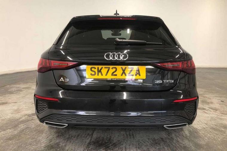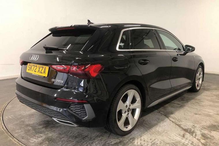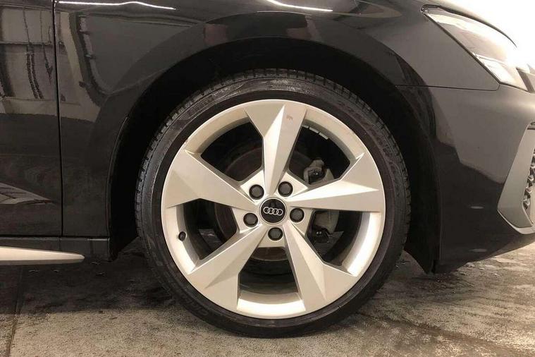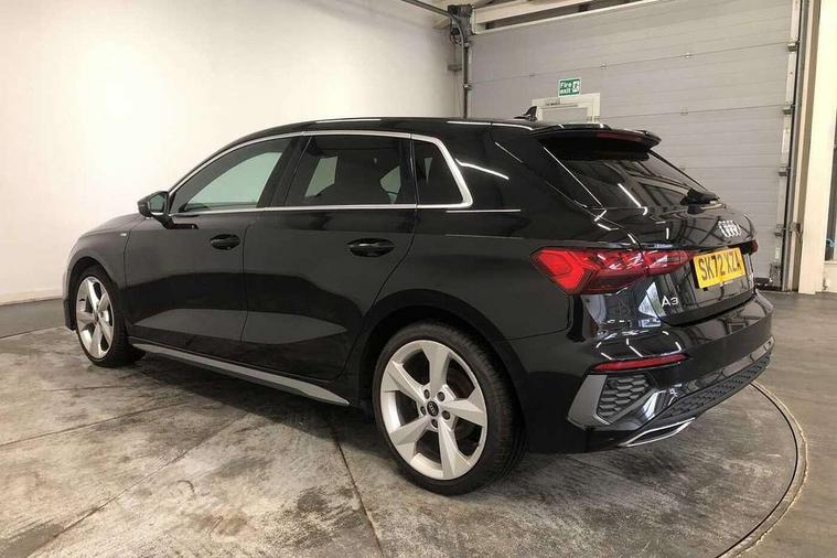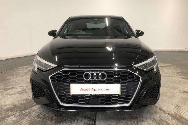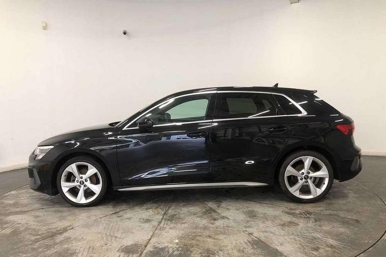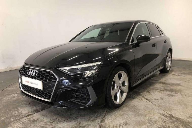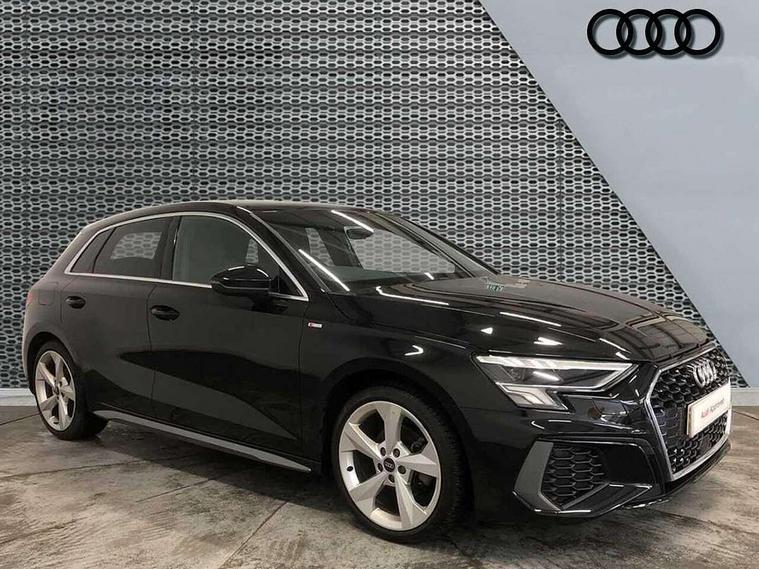 Audi drive select (Auto, Comfort, Dynamic, Efficiency and Individual), Audi smartphone interface, Audi Virtual Cockpit - 10.25" digital and colour instrument cluster, Automatic start/stop system with recuperation, Bluetooth interface, Collision avoidance assistant, Cruise control, e-Call (emergency call), Electromechanical power speed sensitive steering, Lane departure warning system, MMI Navigation Plus with high resolution 10.1" colour touch screen display, Rear parking sensors, Service indicator, Trip computer, Voice control system with natural language interaction, 2xUSB-C connection with data and charging functions, 6 passive loudspeakers, DAB Digital radio, 3rd brake light, Acoustic glass windscreen, Aluminium window trim, Auto dimming frameless rear view mirror, Electrically adjustable/heated/folding/auto dimming door mirrors with integrated LED indications + kerb view function for passenger side, Front electric windows, Illuminated aluminium inserts front door sills with S logo, LED daytime running lights, LED headlights with LED rear lights and dynamic rear indicators, Light and rain sensors, Privacy glass - dark tinted rear window, rear door and side windows, Rear electric windows, Rear side air outlets in grained matt black, Rear side wing doors, Rear wiper, S line bumpers, S roof spoiler, 12V socket and storage compartment in front centre console, 3 seat bench in 2nd row, 40/20/40 split folding rear seat bench with cupholder, Black cloth headlining, Dual zone electronic climate control, Front and rear centre armrest in leather, Front and rear headrests, Front/rear floor mats, Height and reach adjustable steering wheel, Illuminated vanity mirror, Interior lighting - glove compartment light and right hand side, Luggage compartment floor covering, Manual boot compartment lid, Manually adjustable front seats, Seat side bolsters, Single front passenger seat, Stainless steel pedals and front footrest in black, Twin leather upholstery with front sports seats S embossed logo, Aluminium interior elements pack - A3 Sportback, S line styling pack - A3 Sportback, 3x3 point rear seat belts, Audi pre sense front, Driver and front passenger airbag with passenger airbag deactivation, Electronic Stabilisation Control (ESC) including ABS, ASR and EDL, First aid kit with warning triangle and 2 safety vests, Front side airbags with head airbags and interaction airbag, Pre-sense front with pedestrian and cyclist detection, Seatbelt monitoring, Tyre pressure loss indicator, Anti theft alarm, Anti-theft wheel bolts, Immobiliser, Manual child locks, Remote control central locking, Accent surfaces in the dashboard and centre console in platinum grey silk effect paint finish, Dark spectrum aluminium inlays,