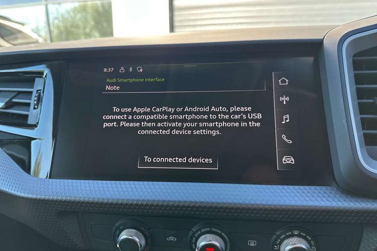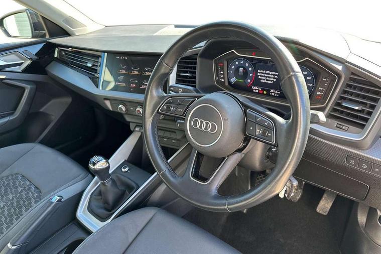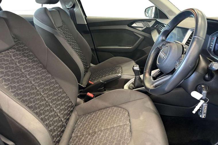 10.25" Digital instrument cluster display classis style instrument dials + speed, odometer, time, outside temperature, telephone menu + fuel level warning, Audi connect safety emergency and service including E-call, Audi drive select - power steering assistance + engine, Audi smartphone interface with connect compatible smartphone via USB directly MMI display + Nav, music, third party apps controlled via MMI controller, Automatic start/stop system, Bluetooth interface, Cruise control, Driver's information system, Electromechanical power steering, Lane departure warning system, Service interval indicator, Speed limiter, Voice control system, Washer fluid level indicator, Dynamic suspension, 1 x SDXC card reader, 2 x USB type C connection points, DAB Digital radio, MMI radio plus with 8.8" colour MMI display screen and MMI touch, Auto dimming rear view mirror, Body coloured bumpers, Body coloured door mirrors, Electric front and rear windows, Electrically adjustable, heated, folding door mirrors with integrated LED side indicator, Front side air inlets in grained matt black and C frame in titanium black, Heat insulating glass windscreen and side windows, Heated rear windscreen, LED headlights with LED rear lights + dynamic rear indicators + headlight adjustment and high beam, turning light + LED daytime running lights, Radiator grille and rear diffuser in matt titanium black, Radiator protective grille frame in matt aluminium silver, Rain and light sensors, Rear fog lights, Rear wiper, Scandium grey tailpipe trim, Side front spoiler lips in grained matt black, 12V socket in centre console with two cup holders, 3 rear seats with headrests, 40:60 Split folding rear seat or folded fully, Door sill trims with aluminium inlay, Driver and passenger seat with manual height adjust with forward and backwards adjustment, Front head restraints, Front/rear floor mats, Height and reach adjustable steering wheel, ISOFIX child seat mounting for front passenger and outer rear seats including top tether attachment point of outer rear seats, Leather gear knob with aluminium trim, Leatherette handbrake grip, Luggage compartment light with front and rear reading lights, Manually adjustable lumbar support in front seats, Novum cloth upholstery with front sport seats, Titanium grey cloth headlining, Luggage compartment pack - A1, 3x3 point rear seatbelts, Audi pre-sense front with pedestrain and cyclist recognition, Brake assist function, Driver and front passenger airbag with front side and head airbags, Electronic Stability Control including ABS, EBD, ASR and EDL, Front and rear seatbelt reminder, Front passenger airbag deactivation switch, Hill hold assist, Seatbelt height adjustment for front seats, Seatbelt monitoring, Tyre pressure warning light, Warning triangle and first aid kit, Anti theft alarm, Anti theft wheel bolts and loose wheel warning, Immobiliser, Remote central locking with 2 foldaway keys, Aluminium trim for control switches, air vents and digital instrument cluster, Silver grey accent areas including air vents, door handle recesses and centre console in diamond paint finish, Slate grey inlays polygon structure in fine paint finish,