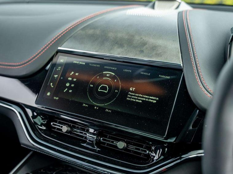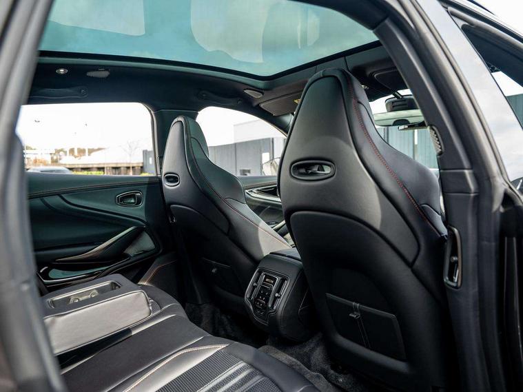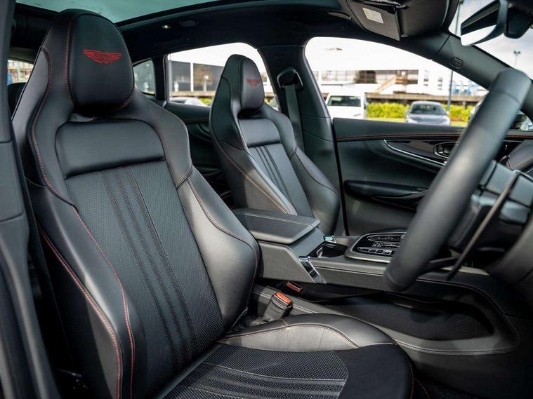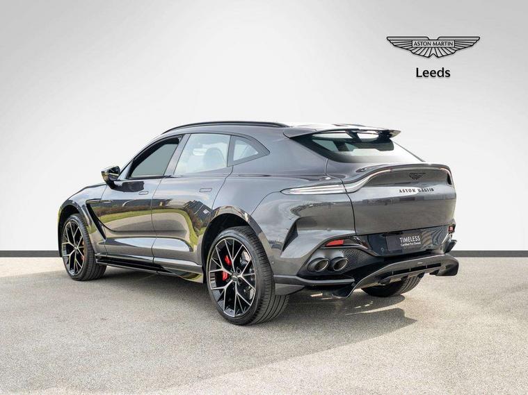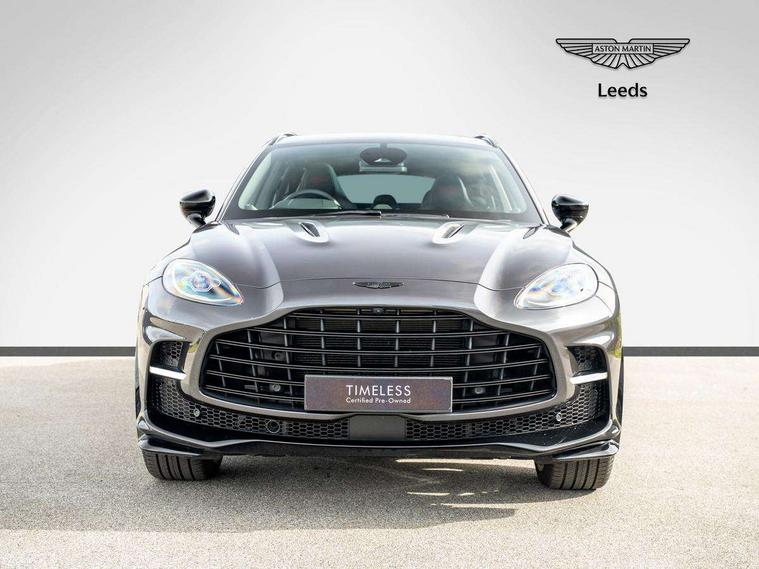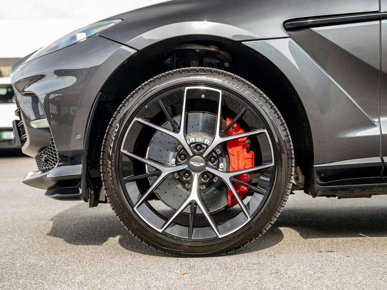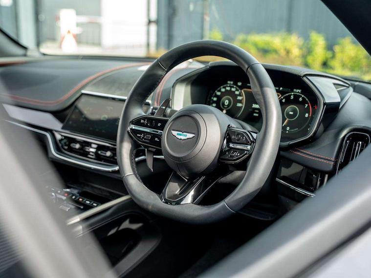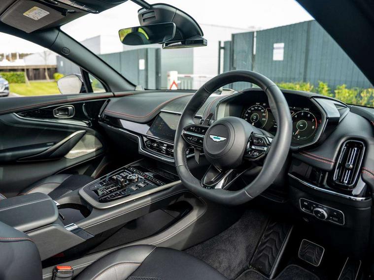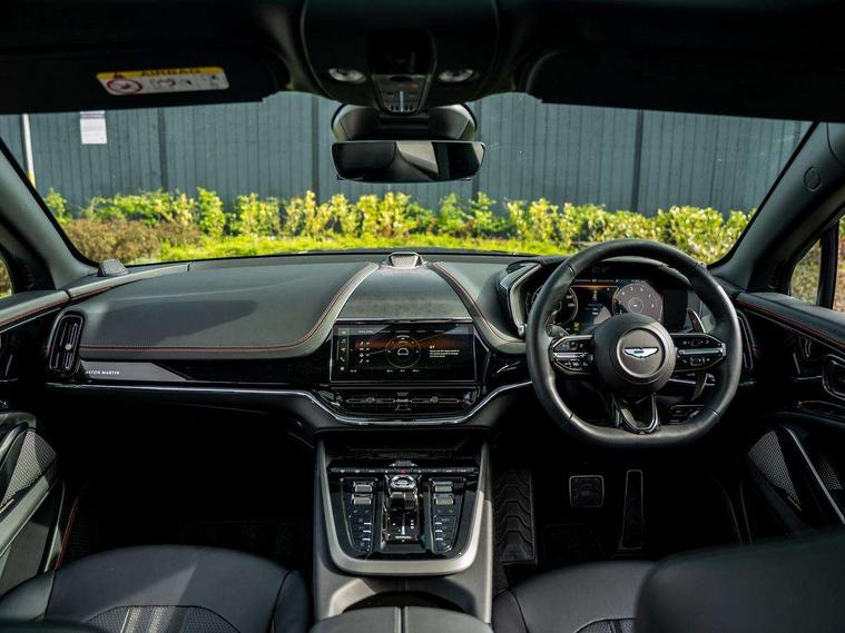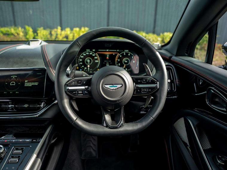 10.25" TFT centre display, 12.3" TFT instrument display, 360 degree view camera, Adaptive cruise control, Apple car play/Android Auto, Aston martin designer key, Blind spot monitoring, Bluetooth telephone connectivity, Brake pad wear indicator, Drive modes Terrain, Individual, GT, Sport, Sport + including launch control, eCall emergency call system, Electric power assisted steering (EPAS), Forward collision warning, Front parking aid with visual indicator, Inductive phone charger, Infotainment touchpad and dial, Lane change warning, Lane departure warning system (LDW), Lane keep assist, Outside temperature display, Park assist system, Rear crossing traffic warning, Rear parking aid with visual indicator, Rotary dials, Rotary infotainment system interface, Satellite navigation system, SOS emergency call button, Speed limiter, Standard underbonnet, Stop/start system, Traffic sign recognition, Voice control system, 9 speed automatic transmission, Active centre transfer case, Adaptive triple chamber air suspension, All Wheel Drive (AWD), Battery conditioning connector, Electric active roll control, Electric limited slip rear differential, Electronic adaptive damping system, AM/FM radio, Bluetooth audio streaming, Bowers and Wilkins audio system, DAB Digital radio, SD card slot, USB port, Acoustic laminated front windows, Active rear brake lights, Approach Illumination, Auto dimming interior rear view mirror, Automatic headlights, Automatic high beam - AHB, Bi LED headlights, Body colour hood, Body colour side vent, Carbon fibre rear wing lip spoiler, Electric windows, Fixed panoramic glass sunroof, Heat insulating glass, Heated rear window, Horizontal DRL/turn indicator design with larger air intakes and brake cooling grilles, LED centre high mounted stop light, LED daytime running lights, LED rear fog light, Matte black mesh bonnet vents, Power foldback door mirrors, Rain sensing windscreen wipers, Rear bumper design with integrated quarter panel vents, Rear side wing doors, Rear wiper, Sport exhaust, Standard paint protection film, 12V power sockets, 16 way electric front seats with memory, 3 seat bench in 2nd row, 40:20:40 split folding rear seats, Ambient lighting, Anodised aluminium sill plaques with aston martin wings, Automatic climate control, Black loadspace carpet, Courtesy Light, Front and rear door pockets, Front centre console storage cover, Front head restraints, Gloss black double layer side sills, Glovebox with electric locking, Heated seats, Isofix/I size rear outer, Load rails in load space, Load tie downs in load space, Lower front console storage, Map pocket on front seat storage, Monotone sport leather steering wheel, Rear head restraints, Single front passenger seat, Soft close doors, Sports plus seats, Stainless steel sill protector in load space, Twin cupholders in front and rear, Twin front centre armrest, Twin sunvisors with illuminated vanity mirrors, Satin silver interior jewellery pack - DBX, 3x3 point rear seatbelts, Airbags - Driver and front passenger and knee, Anti theft locking wheel bolts, Anti-lock braking system (ABS), Auto vehicle hold function, Autonomous emergency braking, Carbon ceramic disc brakes, Door exit warning, EBD - Electronic brakeforce distribution, Electric parking brake (EPB), Emergency brake assist, ESC (Electronic Stability Control), Front thorax airbags/Side curtain airbags, HDC - Hill descent control, High performance braking system, Hill start assist, Intelligent wet brake control, Rear child proof door locks, Rear thorax airbags, RSC - Roll stability control, Seatbelt pre-tensioners, Seatbelt status indicator, Torque vectoring brake, Traction control, Tyre pressure monitoring system, Warning triangle, Alarm/immobiliser, Keyless entry, Remote central locking, Stolen vehicle tracker, Brogue detailing, Piano black wood veneer trim, Seat perforaton elegant, Seat quilting elegant,