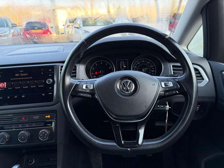 'Lights On' Reminder warning buzzer, ACC - Adaptive cruise control with front assist, forward collision warning, distance monitoring, city emergency brake and speed limiter, App-Connect, Bluetooth Telephone preparation, Brake pad wear indicator warning light, Driver alert system, Driver profile selection, Exterior temperature gauge, Front and rear parking sensors, PAS - speed related, Push tank flap, Rev counter, Speedometer, electronic odometer and fuel gauge, Stop/start system, Trip and service interval display, Warning buzzer and light for front seatbelts unfastened, White instrument cluster lighting, XDS electronic differential lock, CD/MP3/WMA, USB and SD card reader, aux-in, Composition media system, DAB Digital radio, Personalisation 1.1 profile for media, Auto dimming rear view mirror, Automatic coming/leaving home lighting function, Black front air intake and radiator grilles, Body colour bumpers, Body colour door handles, Body colour door mirrors with integral indicators, Electric front windows, Electric rear windows, Electrically adjustable and heated door mirrors, Fog light with turning light, Front fog lights with static cornering function, Galvanised body, Heat insulated tinted glass 65% light absorbing from B pillar back, Heated rear windscreen, LED 3rd brake lamp, LED daytime running lights, LED rear lights, Rain sensor, Range adjustable headlights, Rear diffuser, Rear roof spoiler, Rear window antenna, Rear windscreen washer and wiper with interval delay, Twin exhaust tailpipe, Windscreen wipers/ intermittent wipe + 4 position delay, 12V socket in luggage compartment, 2 front reading lights, 3 rear headrests, 3 spoke multi-function leather steering wheel and gearknob, 60/40 split folding rear seat, Auto fold down lever in rear seat backrest, Boot lashing points, Centre console storage box, Cooled glovebox, Courtesy light delay, Driver and front passenger under seat drawer, Driver/front passenger seat height adjustment, Dust/pollen filter, Front centre armrest with storage box and rear air vents, Front comfort seats, Front seat back storage pockets, Grab handles, Height/reach adjust steering wheel, Interior lighting with switch off delay and contact switches on all doors, Isofix preparation for 2 rear child seats, Luggage compartment cover, Luggage compartment lighting, Overhead storage box, Pearl grey headlining, Rear armrest with 2 cupholders and load through provision, Rear reading lights x 2, Storage box in luggage compartment, Storage boxes under front seats, Storage compartments in doors, Sunvisors with illuminated vanity mirrors, Variable boot floor, height adjustable and removable, White adjustable panel illumination, Mirror pack - Golf, 3 point height adj front seatbelts + pretensioners, 3 rear 3 point seatbelts, ABS, Automatic post collision braking, Child locks on rear doors, Door open warning reflectors, Driver/Front Passenger airbags, Driver/Passenger whiplash optimised head restraints, Drivers knee airbag, Electronic parking brake with auto hold, Electronic tyre pressure monitoring, ESP with EDL + ASR, Front and rear curtain airbags, Front passenger airbag deactivation, Front side airbags, Hydraulic Brake Assist (HBA), Pre crash system, Ventilated front disc brakes, Alarm with interior protection, Electronic engine immobiliser, Remote central locking with 2 remote folding keys, Brushed dark metal decorative inserts in dash and front door panels, Chrome-plated light switch surround, Decor strip on dashboard and door side trim, Polar night black centre console, Steel space saver spare wheel,