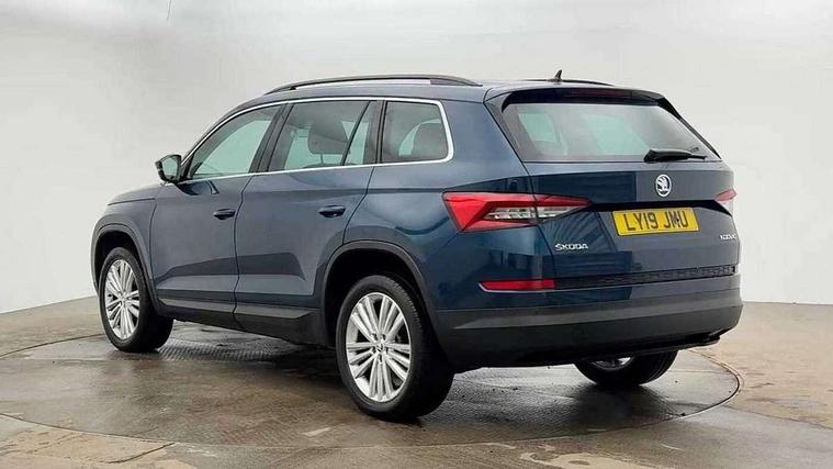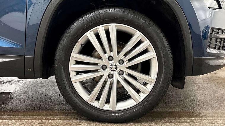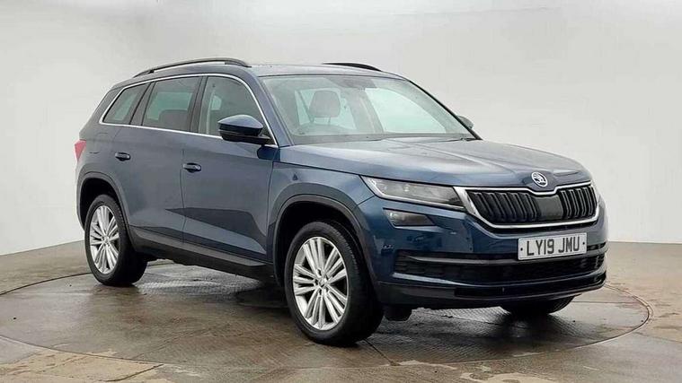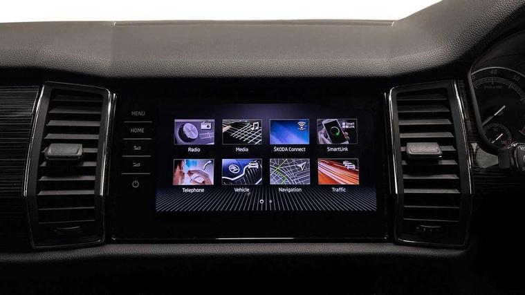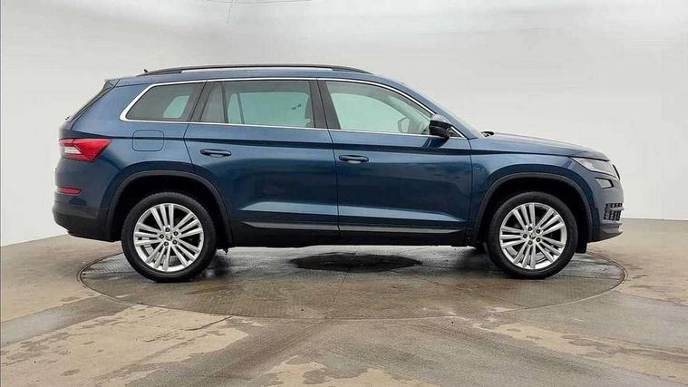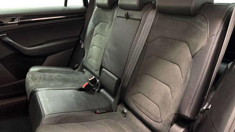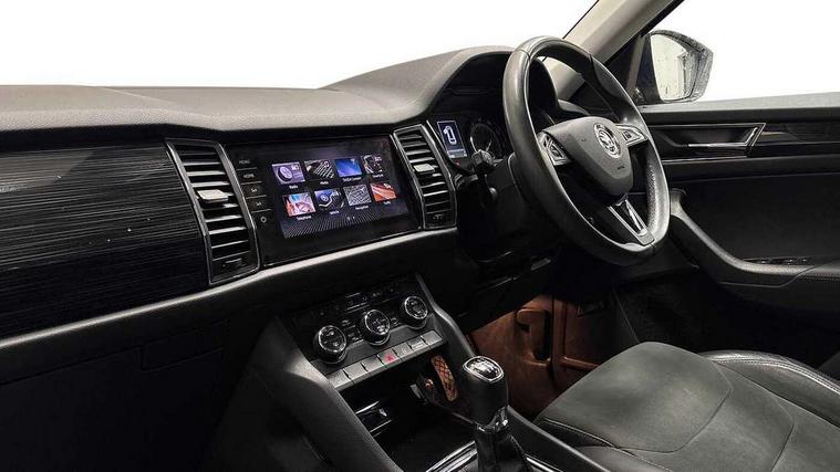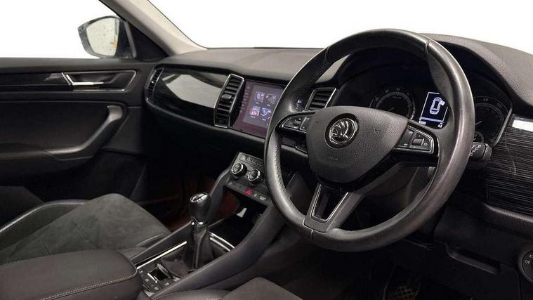 Bluetooth system, Columbus satellite navigation with 9.2" touch screen and integrated Wi-Fi, Digital voice enhancement, Drive mode selector, ECO Stop/start function, Exterior temperature indicator, SmartLink plus, Speed limiter, Bolero Radio, DAB Digital radio, DVD System, USB and SD card connectivity, Aero front windscreen wipers with intermittent function, Aero rear window wiper, Auto dimming rear view mirror, Automatic activation of hazard warning lights, Black wheel arch surrounds, Body colour bumpers, Body colour door mirrors and handles, Electric front and rear windows, Electrically adjustable heated foldable and auto dimming door mirrors with boarding spots, Front and Rear door steps, Full LED Headlights with adaptive front light system and LED daytime running lights, Headlight washers, Heated rear window, Invisible tailpipe, LED front fog lights with static cornering light function, LED third brake light in rear spoiler, Light assistant (coming home/tunnel light), Radiator grille frame in black with chrome strip, Rain and light sensors, Rear spoiler, Safety reflectors on front and rear doors, Sunset privacy glass, Tinted windows, 12V socket in boot, 2 rails with 2 hooks including 4 hooks for net programme, 4 foldable roof handles with rear coat hooks, 4 lashing points on luggage floor, 60:40 foldable rear seat with sliding adjustment and backrest angle adjustment, Bottle holders in door panel in the 1.5 litre front and 1 litre rear, Centre console with open storage box, cup holder and 12V socket, Chrome headlight control button, Chrome interior door handles, Coat hooks on B pillar, Covered storage compartment on driver side, Drawers under driver and front passenger seats, Front and rear height adjustable headrests, Front centre armrest with storage compartment, Front/rear courtesy lights, Gear shift lever with chrome frame and black gloss insert, Height adjustable front seats, Illuminated and cooled glovebox, Illuminated luggage compartment, Isofix system on outer rear seats, Manually adjustable steering column, Net programme in boot (1x horizontal Net, 2x vertical Nets), Overhead glasses storage compartment, Passenger side net compartment on centre console, Pollen filter, Rear centre armrest with cupholders, Removable lamp in luggage compartment, Roll up luggage compartment cover with intermediate position, Small Bags on the inner sides of the front backrests, Small pockets on the inner side of the front backrests, Storage compartment in lower middle Instrument panel, illuminated with closing, Sunvisors with illuminated vanity mirrors, Ticket holder on A Pillar, Umbrella in door panel, Chrome pack - Kodiaq, Auto door release and activation of warning lights, Driver and passenger airbags, Electronic parking brake with hill hold control, Emergency rear braking signal, ESC (incl. ABS+MSR+ASR+EDS+HBA+DSR+RBS+MKB), Front and rear three point safety belt on all seats, Front assist includes AEB city/urban, Front side airbags, Fuel cut off safety device, Head and knee airbags, Passenger airbag deactivate switch, Rear disc brakes, Safety vest holder in door, Seat belt reminder for all seats, Tailgate unlocking from outside, Two tone horn, Tyre pressure monitor, Warning lights in front doors, Alarm with interior monitoring and tilt sensor with safe function, Immobiliser, Keyless entry and start system (KESSY), Remote central locking, Piano black dash inserts,