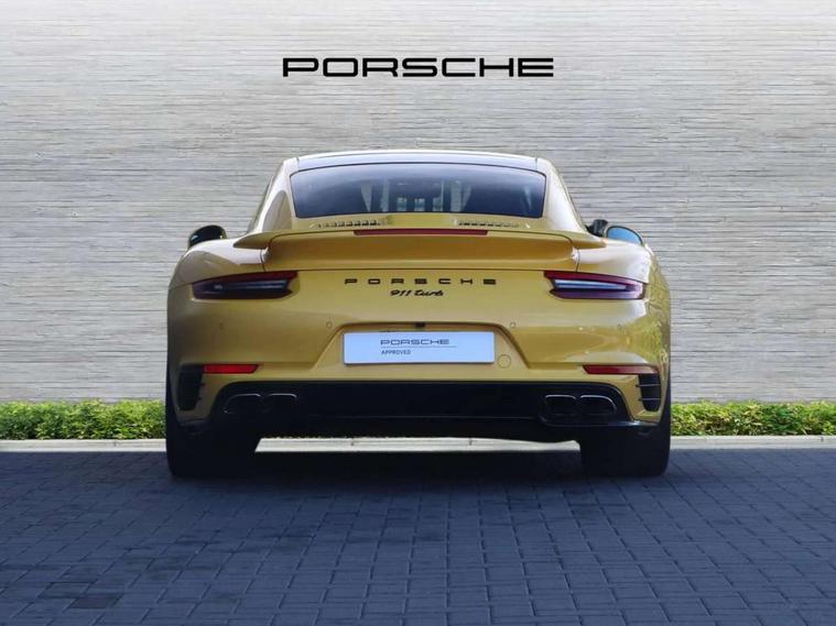 Brake pad wear indicator warning light, Central rev counter and multi purpose display, Front and rear park assist, Oil pressure gauge, Oil temperature gauge, On board computer, Outside temperature gauge, PCM navigation module, Remote boot release, Telephone module for PCM, Porsche Active Suspension Management (PASM), Porsche stability management (PSM), Porsche Torque Vectoring Plus (PTV Plus), 2 USB ports, DAB Digital radio, Radio/CD/DVD/MP3 player with touchscreen display, SD card slot, USB interface in rear, 2 speed front wipers + intermittent wipe, Aspherical driver's exterior mirror, Auto dimming interior/exterior mirrors+rain sensor, Body colour bumpers, Door entry guards with 'Turbo' logo, Dual chrome twin tailpipes on left and right, Dynamic cornering light with headlamp levelling and speed sensitive driving light control, Electric windows with one touch open, Electrically adjustable and heated door mirrors, Green tinted heat insulating glass, Headlight washers, Heated rear window, Heated windscreen washers, LED tail lights, Porsche active aerodynamics (PAA) for front and rear spoiler, Water repellent laminated side windows, Welcome home function, Windscreen with grey top tint, 2 in-dash cupholders above glove compartment, 3 x 12V power sockets, Alcantara roof lining, Centre console storage, Centre console with three storage compartments, Clothes hooks on front seat backrests, Dual zone automatic climate control, Electric steering column with memory, Extended headrests intergrated in front seats, Footwell illumination, Ignition Lock illumination, Interior orientation lighting, Isofix child seat preparation, LED reading lights, Lockable glovebox, Multifunction steering wheel, Pollen/active carbon filters, Split folding rear seats, Steering wheel gearshift paddles, Storage compartments in doors, Sport chrono package - 911 Turbo (PDK), 3 point inertia reel seatbelts, ABS, ASR + ABD, Brake calipers in red, Driver/Front Passenger airbags, Electronic parking brake, Front seat thorax airbags, Front seatbelt pretensioners with force limiters, Height adjustable front seatbelts, Motor Slip Regulation (MSR) - Engine Drag Torque Control, POSIP, PTM (Porsche Traction Management), Side window airbags, Tyre pressure monitoring system, Alarm system with interior radar surveillance, Anti-theft wheel bolts, Immobiliser, Porsche vehicle tracking system (VTS), Remote control central locking, Galvano silver interior trim, Sealing compound and compressor kit,