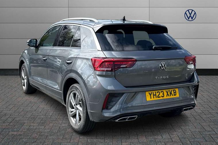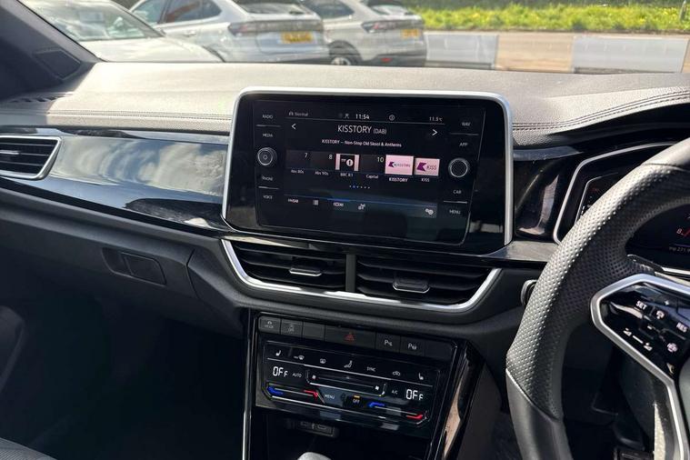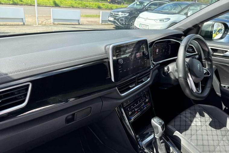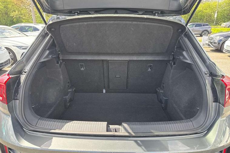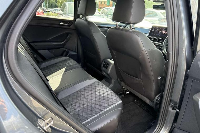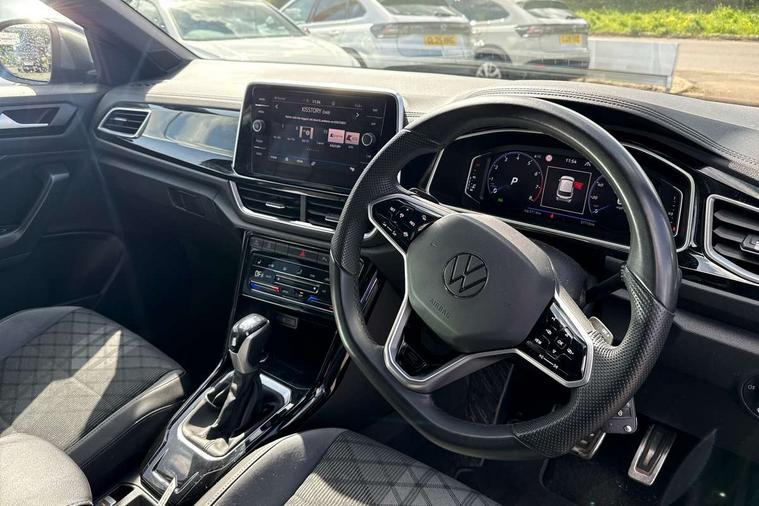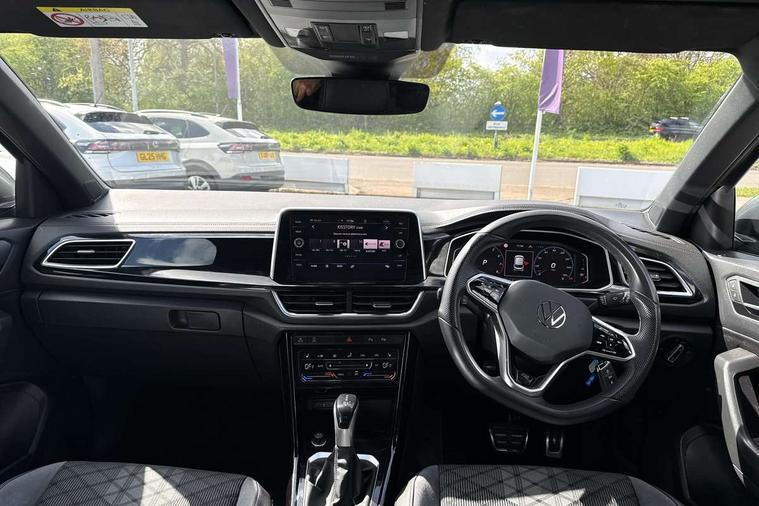 10.25" Digital cockpit pro, Bluetooth mobile phone interface, Driver alert system with fatigue detection, Driver tips and journey analysis, Emergency call service, Lane keeping system Lane Assist, Modified key software - reduce switch off time for key status change to Long no motion, Online services, Park assist including front and rear parking sensors, Service interval indicator, Tailgate/trunk lid release from outside, Think blue trainer driver tips and journey analysis, Warning sound and light for front seatbelts unfastened, Wireless app connect, Battery regeneration during braking, Start/stop function with battery regeneration, Diversity antenna for FM reception, Front and rear 6 speakers, Music playback - MP3, WMA and AAC files, Premium USB cable in choice of either Apple or Android smartphone compatibility, SD card slot, Simultaneous pairing of 2 compatible mobile devices, Title and cover art display, We Connect and We Connect Plus functionality, 3rd brake light, Auto dimming interior rear view mirror, Automatic hazard lights activation under emergency braking, Automatic headlight control with LED separate daytime running lights with coming/leaving home function, Extended roof spoiler, Exterior mirrors aspherical on driver side, convex on front passenger side, External USB type C socket and charging sockets, Front windscreen wiper with intermittent wipe and 4 position delay, Heated rear window, LED Plus headlamps, LED rear combination lamps, LED rear number plate lights, LED tail lamp rear comination lamps, Power windows with comfort operation and circuit breaker, R-Line design body coloured bumpers, Rain sensor, Rear exhaust tailpipe, Rear fog light on one side and reversing lights on both sides, Rear side wing doors, Rear wash/wipe with intermittent wipe setting, Remote electrically foldable door mirrors, puddle lights and reverse activated passenger's door mirror, 12V power socket in centre console, 3 rear head restraints, 3 seat bench in 2nd row, 4 load lashing points in luggage compartment, Air care climatronic air conditoning system with active combination filter and 2-zone temperature control, Black roof lining, Chrome plated radiator grille inserts, air vent surrounds and light switch surrounds, Door and side trim panel with leatherette insert, Drawer under drivers seat, Front + rear carpet mats, Front centre armrest, Front cupholders x 2, Front footwell illumination, Front reading light, Front scuff plates with R logo, Instrument lighting, white adjustable panel illumination, Interior ambient lighting and surround lighting, Interior light delay, Isofix child seat preparation, Leather gearshift handle, Load-through provision with cup holder when folded down ('Unsplit rear seat bench, split folding backrest, with centre armrest), Luggage compartment lighting, Single front passenger seat, Stainless steel pedals, Storage compartment in left and right luggage area, Storage compartment in rear doors, Storage compartments in driver and front passenger doors, Sunvisors with illuminated vanity mirrors, Variable boot floor, height adjustable and removable, Driver assistance pack without proactive passenger protection - T-Roc, 3 point height adj front seatbelts + pretensioners, 3 point seatbelts in outer rear with ECE label, ABS, Child locks on rear doors, Driver and front passenger airbag with front passenger airbag deactivation, Driver and front passenger safety-optimised head restraints, Drivers seatbelt reminder, Electronic parking brake, Electronic Stability Control (ESC) inc EDL (Electronic Differential Lock) and ASR (Traction Control), Front and rear passengers curtain airbag system including front side airbags, Front assist with city emergency braking and pedestrian monitoring, Front seat side impact airbags, Hill start assist, Predictive pedestrian protection, Rear disc brakes, Single tone horn, Tyre pressure loss indicator, Volkswagen roadside assistance, Alarm with interior protection, Anti-theft alarm system with interior monitoring, backup horn, and towing protection, Remote central locking with SAFELOCK, radio remote control with 2 remote control folding keys, Trims for alloy wheels,