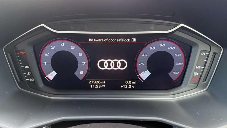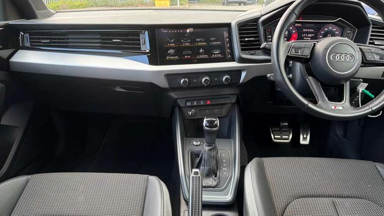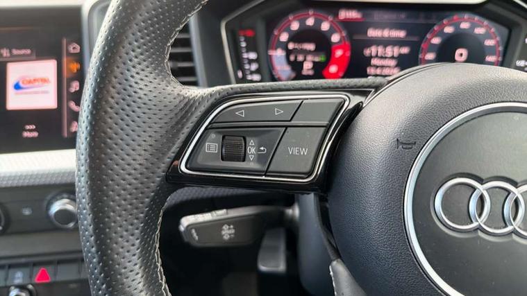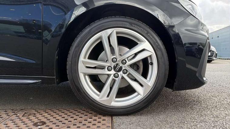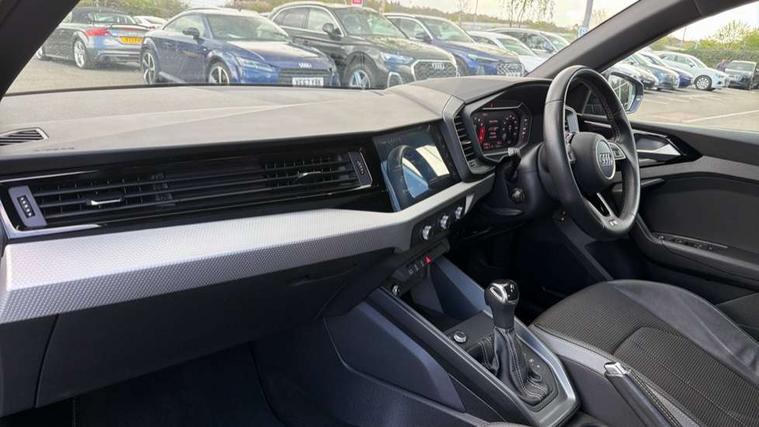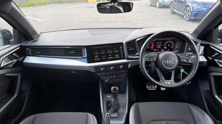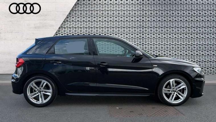 10.25" Digital instrument cluster display classis style instrument dials + speed, odometer, time, outside temperature, telephone menu + fuel level warning, Audi connect safety emergency and service including E-call, Audi drive select - power steering assistance + engine + gear shift 3 preset modes (auto, dynamic, efficiency and an Individual mode), Audi smartphone interface with connect compatible smartphone via USB directly MMI display + Nav, music, third party apps controlled via MMI controller, Automatic start/stop system, Bluetooth interface, Cruise control, Driver's information system, Electromechanical power steering, Lane departure warning system, Service interval indicator, Speed limiter, Voice control system, Washer fluid level indicator, Sports suspension, 1 x SDXC card reader, 2 x USB type C connection points, DAB Digital radio, MMI radio plus with 8.8" colour MMI display screen and MMI touch, Auto dimming rear view mirror, Body coloured door mirrors, Door sills with aluminium inlays and S Line logo, Electric front and rear windows, Electrically adjustable, heated, folding door mirrors with integrated LED side indicator, Front side air inlets in grained matt black and C frame in titanium black, Heat insulating glass windscreen and side windows, Heated rear windscreen, LED headlights with LED rear lights + dynamic rear indicators + headlight adjustment and high beam, turning light + LED daytime running lights, Radiator grille and rear diffuser in matt titanium black, Radiator protective grille frame in matt aluminium silver, Rain and light sensors, Rear fog lights, Rear wiper, S line badges on front wings, Side front spoiler lips in grained matt black, 12V socket in centre console with two cup holders, 3 rear seats with headrests, 40:60 Split folding rear seat or folded fully, Black cloth headlining, Driver and passenger seat with manual height adjust with forward and backwards adjustment, Front and rear black floor mats with contrast stitching in fine silver, Front head restraints, Height and reach adjustable steering wheel, ISOFIX child seat mounting for front passenger and outer rear seats including top tether attachment point of outer rear seats, Leather gear knob with aluminium trim, Luggage compartment light with front and rear reading lights, Manually adjustable lumbar support in front seats, Stainless steel pedals, LED interior lighting pack - A1, Luggage compartment pack - A1, S line exterior styling pack - A1 Sportback, 3x3 point rear seatbelts, Brake assist function, Driver and front passenger airbag with front side and head airbags, Electronic Stability Control including ABS, EBD, ASR and EDL, Front passenger airbag deactivation switch, Hill hold assist, Seatbelt height adjustment for front seats, Seatbelt monitoring, Tyre pressure warning light, Warning triangle and first aid kit, Anti theft alarm, Anti theft wheel bolts and loose wheel warning, Audi pre-sense front with pedestrain and cyclist recognition, Immobiliser, Remote central locking with 2 foldaway keys, Aluminium trim for control switches, air vents and digital instrument cluster, Silver grey inlays polygon structure in diamond paint finish, Structured grey accent areas including air vents, door handle recesses and centre console in quartz paint finish,