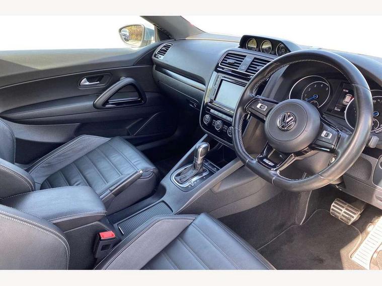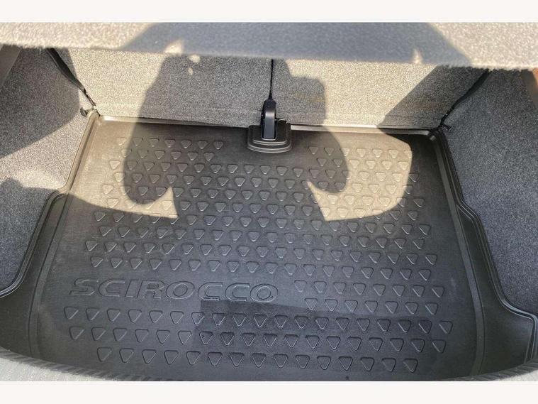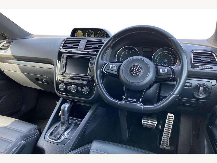 'Lights On' Reminder warning buzzer, Bluetooth system, Discover navigation system with 6.5" colour screen + radio/CD player and aux in, Exterior temperature gauge, Flat tyre indicator, Front and rear parking sensors, Multi function display colour screen, Multifunction computer - Highline, Rev counter, Service interval indicator, Speed sensitive variable PAS, Dynamic chassis control, Sports suspension, XDS electronic differential lock, DAB Digital radio, MDI with USB/iPod connection cables, Volkswagen media control, Auto dimming rear view mirror/rain sensor, Automatic activation of hazard warning lights, Bi-Xenon headlights / auto height adjust/ headlight washers, Body colour door handles, Body coloured bumpers, Coming home function, Dusk sensor + auto driving lights, Electric front windows, Electrically heated + operated door mirrors, Intermittent rear wash/wipe, LED daytime running lights, LED rear lights, Range adjustable headlights, Rear roof spoiler, 12V socket in luggage compartment, 2 bag hooks in luggage compartment, 2 cupholders, 2 rear head restraints, 2 Zone electronic climate control with automatic air recirculation, 3 spoke multifunction leather steering wheel with radio controls + paddle shift, 4 lashing points on luggage floor, 50/50 split folding rear seat backrest, Aluminium pedals, Black roof lining, Dust/pollen filter, Easy entry slide seats (access to rear seats), Front + rear carpet mats, Front centre armrest with storage compartment, Front footwell illumination, Front reading lights, Height/reach adjust steering wheel, Illuminated vanity mirrors, Interior light with delay, Isofix Preparation 2 Rear child seats, Leather gear knob, Leather handbrake grip, Lockable/illuminated air conditioned glovebox, Luggage compartment cover, Luggage compartment lighting, Sports front seats, Storage compartments in doors, Styling pack - Scirocco R, 2 rear 3 point safety belts, 2x3 point front seatbelts with pre-tensioners, ABS+EBD+Brake assist, Door open warning reflectors, Driver/Front Passenger airbags, Driver/Passenger whiplash optimised head restraints, ESP with EDL + ASR, Front and rear curtain airbags, Front seat side impact airbags, Hill hold function, Passenger airbag deactivation system, Seatbelt warning, Two tone horn, Alarm with interior protection, Electronic engine immobiliser, Remote central locking with 2 remote folding keys, Brushed aluminium instrument surrounds, Carbon look decorative inserts, 19" Cadiz alloy wheels + anti-theft wheel bolts, Steel space saver spare wheel,