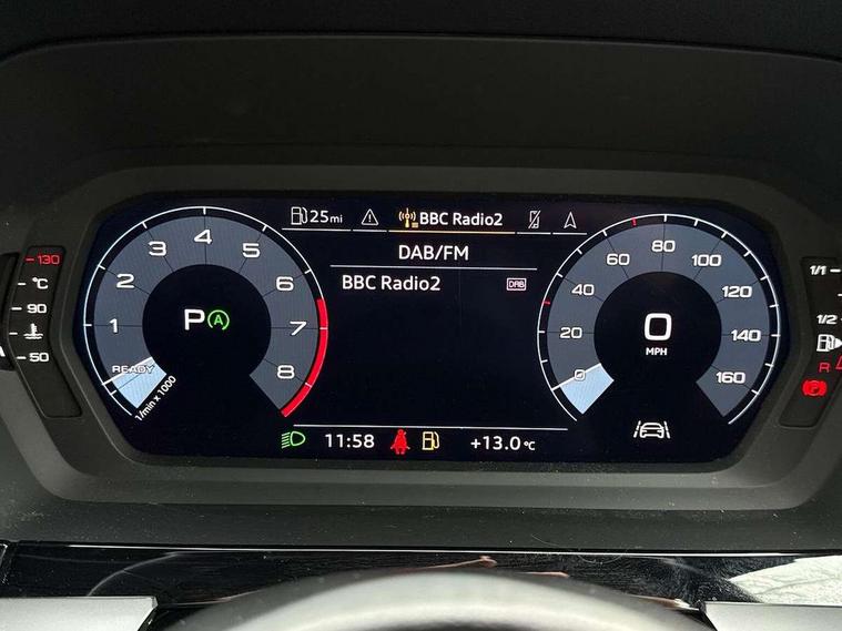 Black decorative window trim, Inlays with silk effect paint in platinum grey, 16" 5 double arm alloy wheels, Anti theft alarm, Anti-theft wheel bolts, Immobiliser, Manual child locks, Remote control central locking, 2xUSB-C connection with data and charging functions, 6 passive loudspeakers, DAB Digital radio, 3x3 point rear seat belts, Audi pre sense front, Driver and front passenger airbag with passenger airbag deactivation, Electronic Stabilisation Control (ESC) including ABS, ASR and EDL, First aid kit with warning triangle and 2 safety vests, Front side airbags with head airbags and interaction airbag, Hill hold assist, Pre-sense front with pedestrian and cyclist detection, Seatbelt monitoring, Tyre pressure loss indicator, 3rd brake light, Acoustic glass windscreen, Auto dimming frameless rear view mirror, Body colour exterior mirrors, Body colour front spoiler blade, Body colour roof spoiler, Electrically adjustable/heated/folding/dimming door mirrors with kerb view includes integrated LED indications + kerb view function for passenger side, Front electric windows, LED daytime running lights, LED headlights and halogen rear lights, Light and rain sensors, Radiator grille and frame in grained matt black and honeycomb look, Rear diffuser in grained matt black, Rear electric windows, Rear side air outlets in grained matt black, Rear side wing doors, Rear window, rear door windows and rear side windows in clear glass, Rear wiper, Side air inlets in grained matt black, 12V socket and storage compartment in front centre console, 3 seat bench in 2nd row, 3 spoke leather multifunction steering wheel with paddle shift, 60/40 split folding rear seat, Front and rear headrests, Front centre armrest, Front/rear floor mats, Height and reach adjustable steering wheel, Interior lighting - Front and rear roof module including reading lights, glove compartment light and right hand side, Luggage compartment floor covering, Manual air conditioning, Manual boot compartment lid, Manually adjustable front seats, Seat side bolsters, Single front passenger seat, Steel grey cloth headlining, Audi smartphone interface, Audi Virtual Cockpit - 10.25" digital and colour instrument cluster, Automatic start/stop system with recuperation, Bluetooth interface, Collision avoidance assistant, e-Call (emergency call), Electromechanical power speed sensitive steering, Lane departure warning system, MMI Navigation Plus with high resolution 10.1" colour touch screen display, Rear parking sensors, Service indicator, Trip computer, Voice control system with natural language interaction, Standard suspension,