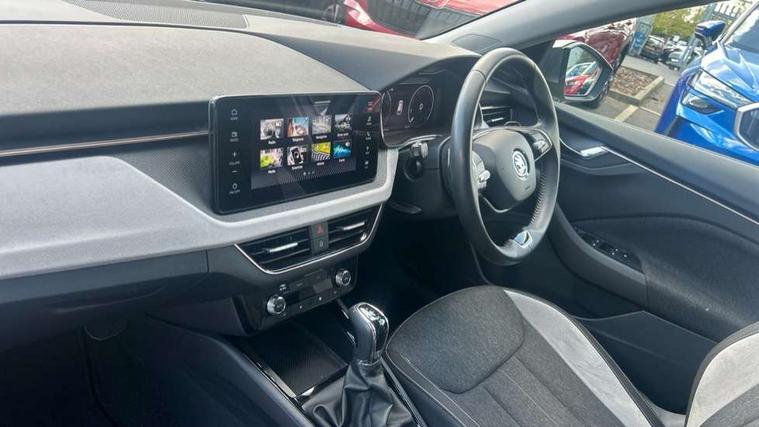 Advanced driver attention and drowsiness monitor, Bluetooth, e-Call (emergency call), Front assist system, PAS, Rear parking sensors, Speed limiter, Tailgate, Traffic sign recognition, Virtual Cockpit - 10.25" digital display, Voice control system, Wireless smartlink, 4 USB C ports, 8 Speakers, 9.2" Skoda navigation display, DAB radio, Auto dimming rear view mirror, Automatic headlamp activation with Coming home and Leaving home feature, Automatic high/low beam, Automatic intermittent wipers, Body colour bumpers, Body colour door mirrors and handles, Chrome moulding around grille, Chrome window frames, Front and rear electric windows, Heated rear window, LED 3rd brake light, LED brake lights, LED daytime running lights, LED front turning lights, LED high beam, LED low beam, Light sensors, Privacy glass, Rear LED fog light, Rear side wing doors, Rear wiper, Tinted windows, 12V socket in luggage compartment, 3 seat bench in 2nd row, Ambient lighting in white/red, Black / Copper armrest stitching, Cargo elements, Chrome inner door handles, Copper hotstamping, Door inserts in accent black, Driver and passenger sun visors with vanity mirror, Dual zone climate control, Front and rear roof lights, Front centre armrest, Front head restraints, Glasses storage in roof liner, Height adjustable driver seat, Height adjustable passenger seat, Ice scraper, Illuminated glove compartment, Inner circulation control with pollen filter, ISOFIX for front passenger seat, Isofix preparation for back seats, Leather gearknob and handbrake lever, Lodge cloth upholstery, Luggage net under rear parcel shelf, Manual lumbar support for front seats, Net package and top tether hooks in boot space, Pearl grey ceiling, Pocket on the back of both front seats, incl. mobile phone pockets, Rear centre armrest, Single front passenger seat, Textile floor mats, Third rear headrest, Ticket holder, Top tether for front passenger seat, Umbrella in driver's door, 3x3 point rear seatbelts, ABS, Child locks, Curtain airbags and front side airbags, Disc brakes, Driver and front passenger airbags, ESP, Hill hold control, Manual leather parking brake, One tone horn, Passenger airbag switch off function, Seatbelt reminder for driver and front passenger, Tyre pressure monitoring system, Anti theft alarm system with interior monitoring, backup horn and towing protection, Anti-theft wheel bolts, Remote central locking with 2 remote folding keys, SAFE function for remote central locking, Decorative inserts,
