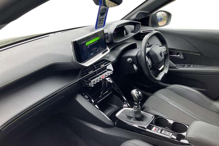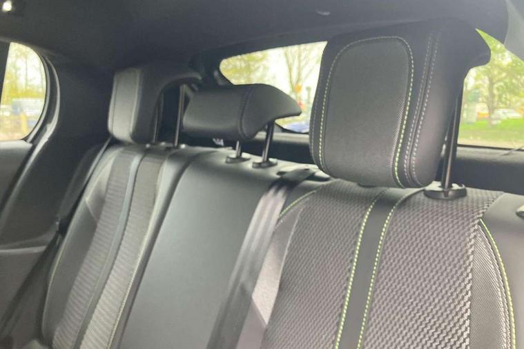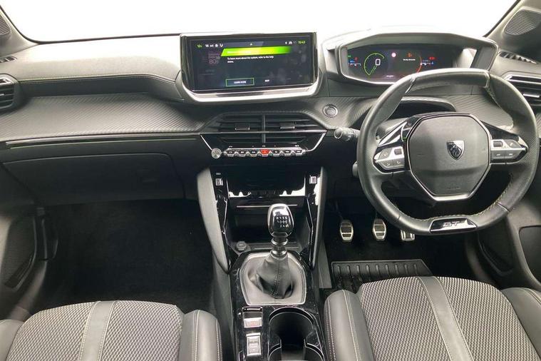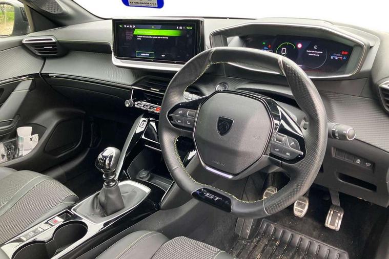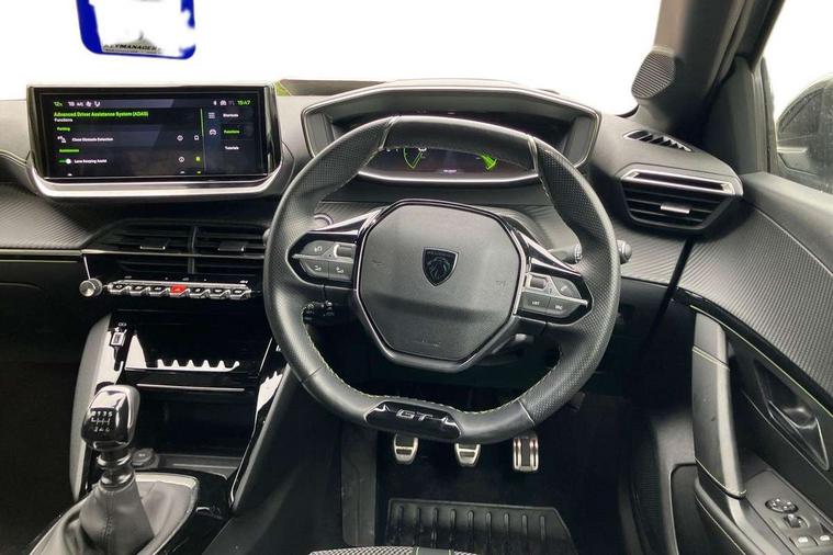 Bluetooth telephone facility, Drive mode select (Eco/Normal/Sport), Driver attention warning, Emergency call service, Exterior temperature indicator with ice warning, Front and rear parking sensors, Multi function trip computer, PEUGEOT i-Cockpit with 10" configurable 3D colour head up instrument panel, PEUGEOT i-Cockpit with 10" HD capacitive colour touchscreen, PEUGEOT i-Cockpit with compact steering wheel, PEUGEOT SOS and assistance, Push button start, Smart phone docking station, Smartphone 15W wireless charging plate, Speed limit recognition and recommendation, Start/stop system, Wireless mirror screen with apple carplay and android auto, 6 Speakers - 2 tweeters and 4 door speakers, DAB Digital radio, Peugeot i-connect infotainment system - 10in HD touchscreen, AM/FM/DAB digital radio, Wifi Mirroring, Bluetooth & 2 USB connection, USB-A socket (x1) and USB-C socket (x1) - rear, USB-C data and charge socket and USB-C charge socket in front, Voice recognition for radio, navigation and telephony features, 2 X Rear number plate lights, Acoustic windscreen, Antenna - Gloss Black 'fin' design, Automatic hazard light activation upon heavy brake application, Body coloured exterior door handles, Dark tinted rear side and tailgate windows, Diamond black rear spoiler (roof), Door sills protection with PEUGEOT signature lettering, Electric heated and power folding door mirrors with courtesy floor lighting, Frameless electrochrome interior rear view mirror, Full LED headlights with automatic height adjustment and PEUGEOT smartbeam assist, Gloss black B pillar, Gloss black door mirror shells, Gloss black front bumper grille with body colour accents, Gloss black rear cluster connecting strip, Gloss black wheel arch extensions, Gloss black window weatherstrips, GT model designation badging on C pillar, GT model designation badging on tailgate, Headlights left on audible warning, LED 3 claw horizontal rear lighting signature (with daylight function) and LED brake lights, indicators and reversing lights, LED daytime running lights with distinctive 3 claw signature, LED front indicators, LED third brake light, Model designation badges front and rear in basalt grey, One touch electric front/rear windows with pinch protection, Rear bumper with gloss black finish, Rear reversing lights, Rear side wing doors, Rear windscreen wiper triggered automatically in reverse gear, Roof spoiler, Tailgate with heated rear windscreen and wiper blade, Variable front intermittent wipers, 1/3 to 2/3 split folding rear seats, 12V socket, 3 seat bench in 2nd row, 8 Colour personalisable ambient lighting, Adamite green contrast stitching to front and rear armrest, front centre console, dashboard facia, Aluminium pedals, Automatic mono zone climate control air condition, Boot lighting, Driver and front passenger dynamic seats, Driver and front passenger seat manual adjustment in longitudinal and back rest angle, Driver and front passenger seat mechanical height adjustment, Driver and passenger sun visors, front footwells and central storage with LED lighting, Electric power steering with reach and rake adjustable steering column, Front centre armrest with storage compartment, Front LED interior light, front LED reading spotlights(x2), rear LED reading spotlight(x2), Gear shift indicator, High centre console with 2 cup holders, Luxury carpet mats, Map pockets on the backs of the front seats, Multi function full grain perforated leather steering wheel with adamite green stitch detail and 'GT' emblem, Passenger seat height adjuster, Piano keys gloss black plated toggle switches to access main functions of the vehicle, Rear centre headrest, Roof lining - Mistral black, Seatbelt unfastened on the move audible and visual alert for front and rear seats, Single front passenger seat, Visibility pack - 208, 2x Isofix child seat fitting on outer rear seats, 3 rear 3 point seatbelts, ABS (Anti-lock Braking System) with EBD (Electronic Brakeforce Distribution) and EBA (Emergency Braking Assistance), Active safety brake with night function/cyclists/pedestrians, Child locking functionality on rear doors, Driver and front passenger airbag with passenger airbag deactivation, Driver/front passenger side airbags, Electric parking brake, ESP with Hill Assist, Front and rear curtain airbags, Front and rear disc brakes, Front optimised safety headrests and 3 x rear retractable headrests with height adjustable, Front three point retractable seatbelts with force limiters, Remote plip(x2) for locking, unlocking, includes emergency key blade, Tyre pressure monitoring system, Acoustic vehicle alert system (AVAS), Alarm - Connected, volumetric , perimetric, anti lift sensor, Automatic door locking when moving off, Deadlock, Electronic code immobiliser, Peugeot Open and Go System, Remote central locking, Carbon effect Dashboard, front and rear door panel finish, 17" Yanaka two tone diamond cut alloy wheels wheels includes gloss black inserts, Space saver spare wheel,