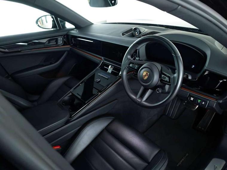 Active speed limit assist, Auto start/stop function and coasting, Driver awarness detection, Emergency call service, Lane keep assist, Power steering plus, Powered tailgate, Service interval indicator, Smartphone integration with Apple CarPlay and Android auto, Speed limit indicator, Traffic sign recognition, Trip computer, Warn and brake assist including pedestrian protection, 11 kW on board AC charger, 4D Integrated chassis control, 8 Speed Porsche Doppelkupplung (PDK), 80 litre fuel tank, Adaptive air suspension including Porsche Active Suspension Management (PASM), Aluminium double wishbone front axle, Aluminium multi link rear axle, Mode 3 charging cable, Starter battery, DAB Digital radio, Smartphone compartment with wireless charging upto 15W, 2 speed front wipers + intermittent wipe, Auto dimming exterior mirrors, Auto dimming rear view mirror, Automatic headlight activation including welcome home lighting, Door handles painted in exterior colour, Electric front and rear windows + anti trap + one touch, Electrically adjustable, folding and heatable exterior mirrors with aspherical on driver's side, Fuel/charging cover, Heated rear window with auto timer, LED 3rd brake light, LED daytime running lights, Rear diffusor in louvered design, Rear side wing doors, Rear wiper, Remote window closing, Windscreen washer system including rain sensor, 2 individual seats in 2nd row, Deletion of turbo S logo embossed on headrests, Front seat heating, Integrated front and rear headrests, Isofix child seat mounting points on outer rear seats, Leather door panel and central armrests, Particle/pollen filter with active carbon filter, PDK gear lever, Pedals and footrest in black, Single front passenger seat with armrest, Sun visors, Two integrated cup holders in the front centre console, 2 x 3-point rear seatbelts, 2x3 point front seatbelts with pre-tensioners, Active bonnet, Anti-lock braking system (ABS), Brake system, Curtain airbags along entire roof frame and side windows from the A pillar to the C pillar left and right, Driver and front passenger knee airbag, Electronic parking brake, Front side airbags, Full size driver and front passenger airbags, Manual child lock in rear doors, Tyre pressure monitoring system, Vehicle stability system and porsche stability management (PSM), Alcohol interlock preparation, Anti-theft wheel bolts, Comfort access system, Dashcam preparation, Engine immobiliser with remote central locking and alarm system with radar based interior surveillance, TPM valve in silver, Tyre sealing compound and electric air compressor,