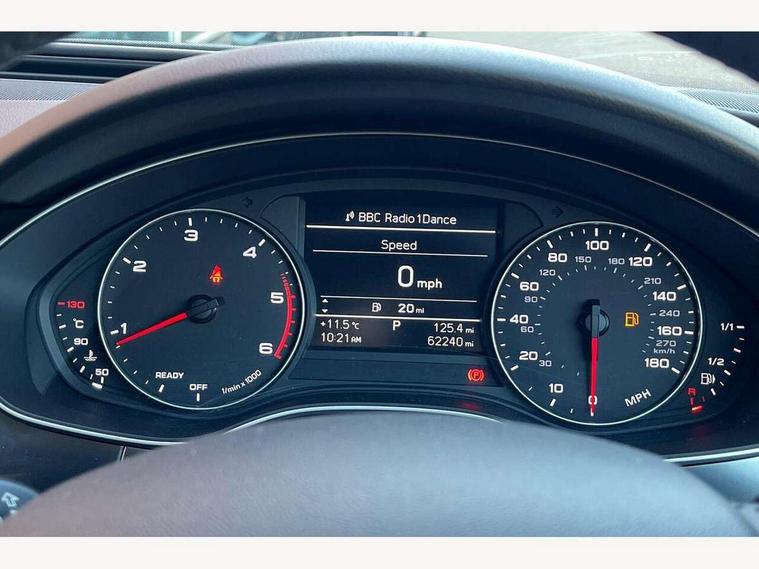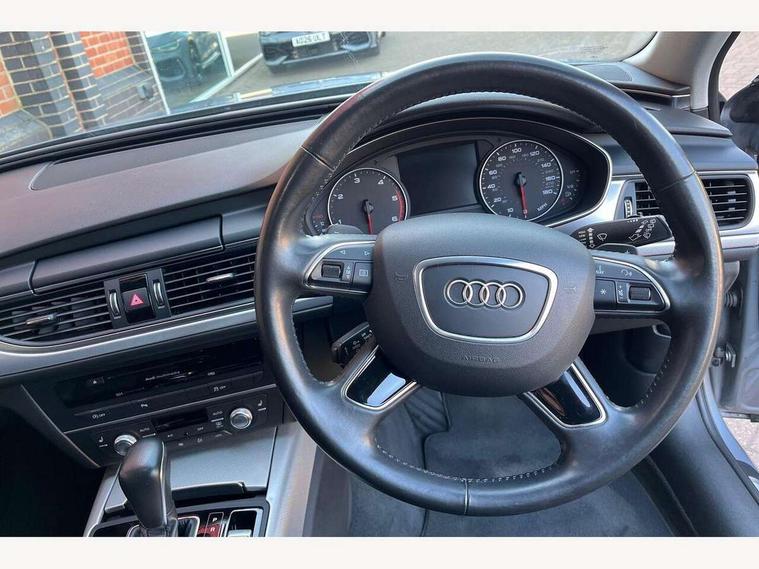 Audi drive select, Audi parking system plus with front and rear sensors, Audible and visual fasten seat belt warning - front and rear, Mobile telephone preparation, PAS, Service interval indicator, Diesel particulate filter, Audi music interface, Auxiliary input socket, DAB digital radio module, MMI Radio plus with CD player and bluetooth interface, USB connection, Auto dimming rear view mirror, Automatic headlights + automatic windscreen wipers, Body colour bumpers, Body colour door mirrors and handles, Body colour roof spoiler, Body coloured door mirrors, Electric front/rear windows, High gloss black finish B pillar, High gloss black triangular aperture at rear door, LED daytime running lights, LED rear lights, Rear wiper, 12V power in rear centre console, 4 way electric lumbar support for driver and front passenger, 4 zone climate control, Aluminium door sill trims, Double cargo floor, Front centre armrest, Front head restraints, Front/rear floor mats, Height adjustable front seats, Isofix front passenger and rear seat preparation, Jack and tool kit, Load lashing points, Luggage compartment cover, Luggage rails, Rear headrests, Split folding rear seat, Non smoking pack - A6, 3 point seatbelts on all seats, ABS/EBD, ASR traction control, Curtain airbags, Driver and passenger airbags, Driver/front passenger side airbags, Electromechanical parking brake, Electronic stability control, Front passenger airbag deactivation, Hill hold assist, Tyre pressure monitoring system, Warning triangle and first aid kit, Anti theft alarm, Anti-theft wheel bolts, Immobiliser, Keyless start, Remote central locking, Space saver spare wheel,