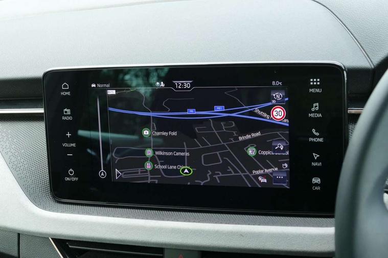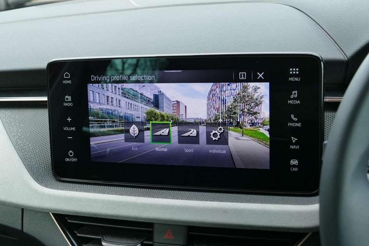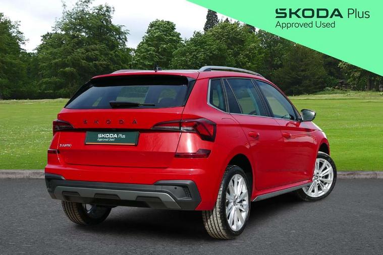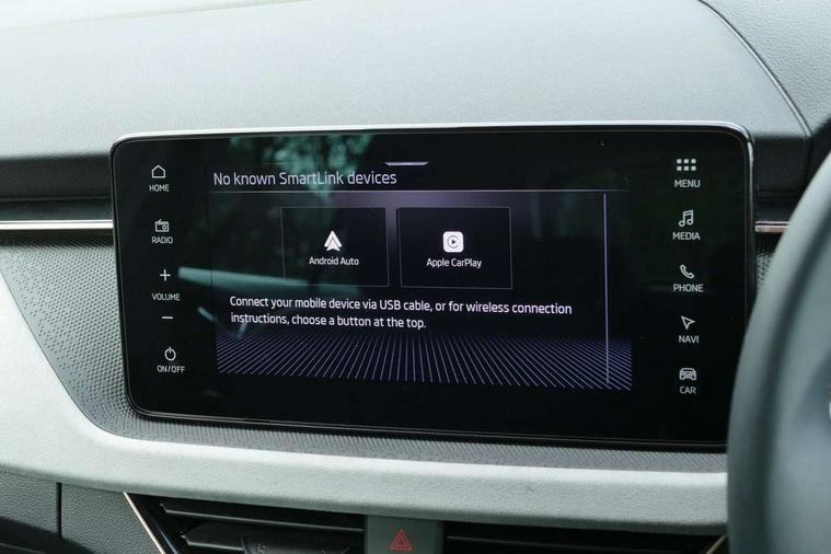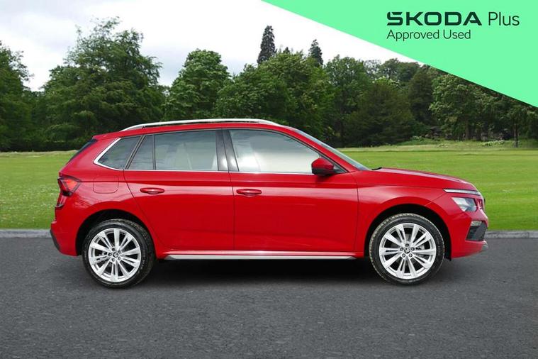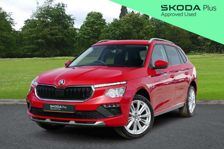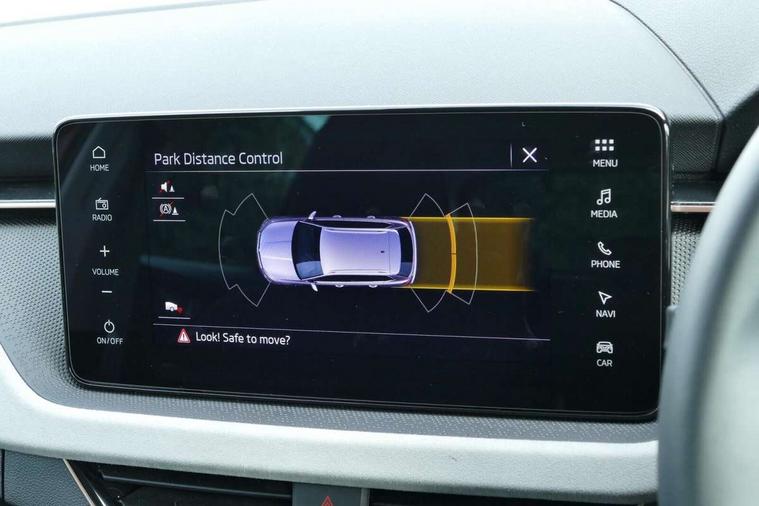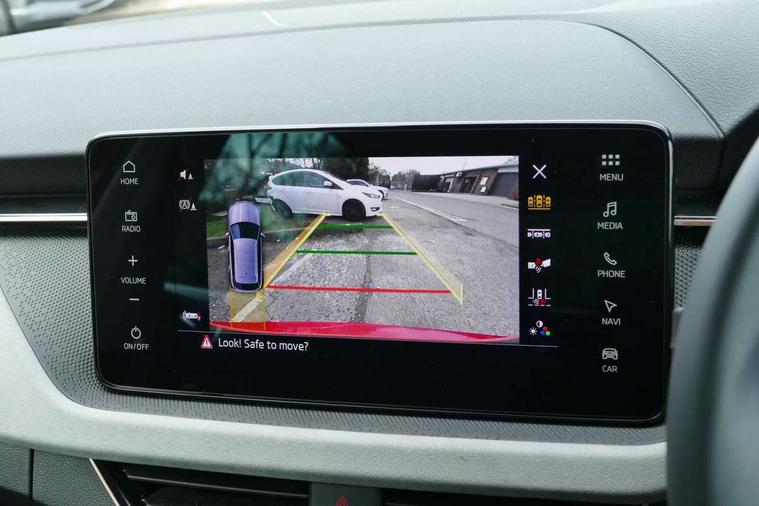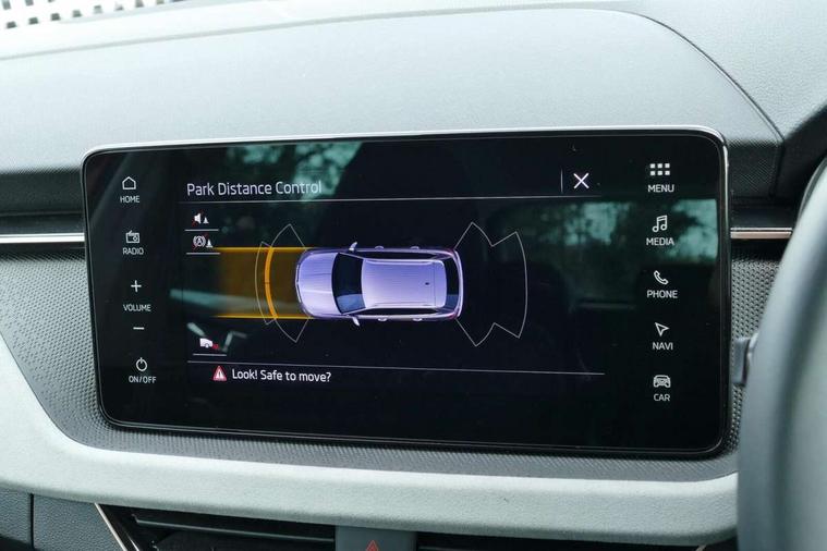 Advanced driver attention and drowsiness monitor, Bluetooth system, E-call, Front assist system, PAS, Rear parking sensors, Rear view camera, Service indicator, Speed limiter, Traffic sign recognition, Virtual cockpit with 10.25" display, Voice control system, Wireless smartlink, 4 USB C ports, 8 Speakers, 9.2" Skoda navigation display, DAB Digital radio, Auto dimming rear view mirror, Automatic headlight control with coming home and leaving home feature, Body colour bumpers, Body colour door mirrors and handles, Chrome grille surround, Chrome roof rails with chrome window surround, Front and rear electric windows, Heated rear window, LED daytime running lights, LED high beam, LED low beam, LED third brake light, Light sensors, Privacy glass, Rear side wing doors, Rear wiper, Ticket holder inside windscreen, 12V socket in luggage compartment, 3 seat bench in 2nd row, Accent black door inserts, Ambient lighting in white/red, Cargo elements, Chrome inner door handles, Copper hotstamping, Driver and passenger sun visors with vanity mirror, Dual zone climate control, Front and rear roof lights, Front centre armrest, Front head restraints, Glove compartment with illumination, Height adjustable driver seat, Height adjustable front passenger seat, Ice scraper, Inner circulation control with pollen filter, ISOFIX on front passenger seat, Isofix preparation for back seats, Leather gearknob and handbrake lever, Lodge cloth upholstery, Manual lumbar support for front seats, Net package and top tether hooks in boot space, Net under rear shelf, Overhead glasses storage compartment, Pocket on the back of both front seats include mobile phone pockets, Rake/reach adjustable steering wheel, Reading lights, Rear centre armrests, Single front passenger seat, Suedia grey decor inserts, Textile floor mats, Third rear headrest, Top tether for front passenger seat, Umbrella in driver's door, Convenience pack - Kamiq, 3x3 point rear seatbelts, Airbags - driver and front passenger, Disc brakes, ESP, Extended and predictive pedestrian/cyclist protection, Front passenger airbag deactivation switch, Front side airbags with curtain airbags, Hill hold control, Manual leather parking brake, Manual rear child locks, One tone horn, Seatbelt reminder for driver an co-driver, Traction control, Tyre pressure monitor, Anti-theft alarm system with interior monitoring, backup horn, towing protection and remote central locking with SAFE system, Anti-theft wheel bolts, Electronic engine immobilizer,