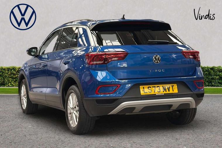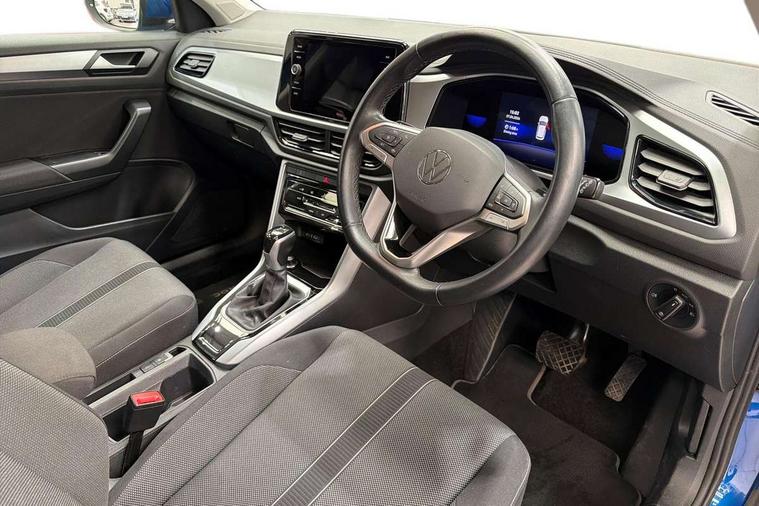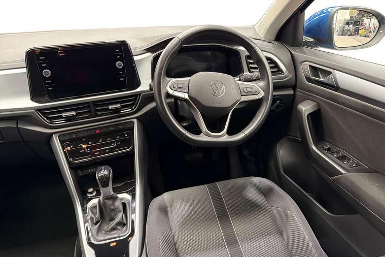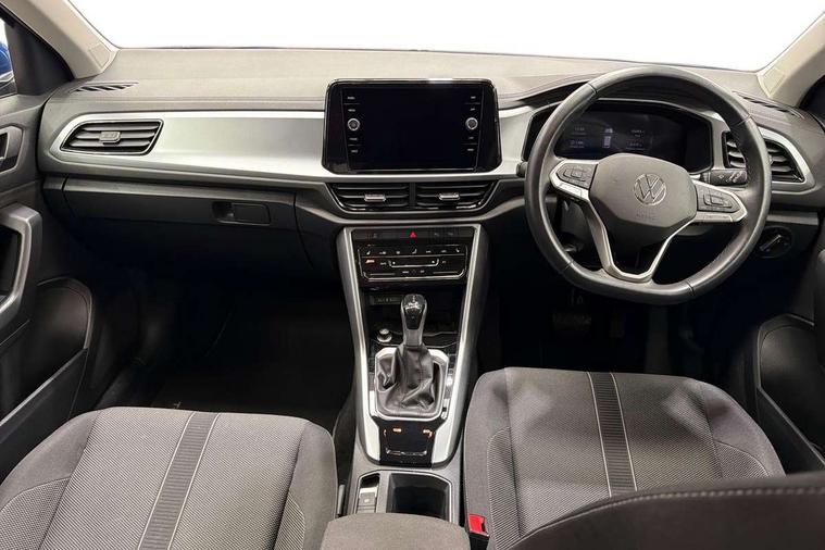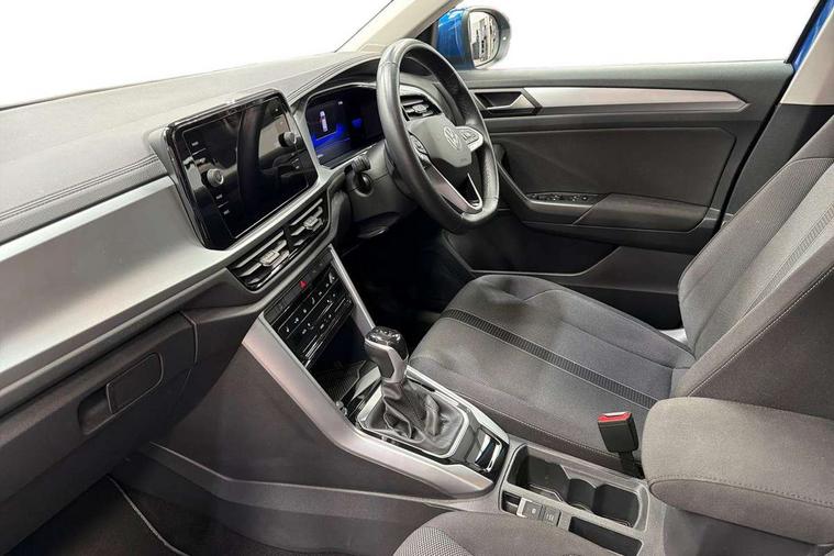 Advanced driver attention and drowsiness monitor, Bluetooth mobile phone interface, Driver tips and journey analysis, Emergency call service, Lane keeping system Lane Assist, Modified key software - reduce switch off time for key status change to Long no motion, Online services, Park assist including front and rear parking sensors, Power assisted speed sensitive steering, Service interval indicator, Tailgate/trunk lid release from outside, Think blue trainer driver tips and journey analysis, Warning sound and light for front seatbelts unfastened, Wireless app connect, Battery regeneration during braking, Front shock absorption, Rear shock absorption chassis with increased ride height, Start/stop function with battery regeneration, DAB Digital radio, Diversity antenna for FM reception, Music playback - MP3, WMA and AAC files, Premium USB cable in choice of either Apple or Android smartphone compatibility, SD card slot, Simultaneous pairing of 2 compatible mobile devices, Title and cover art display, We Connect and We Connect Plus functionality, 3rd brake light, Auto dimming interior rear view mirror, Automatic hazard lights activation under emergency braking, Automatic headlight control with LED separate daytime running lights with coming/leaving home function, Black roof rails, Body coloured bumpers and radiator grille with chrome trim and front fog lamps with chrome bezel, Body coloured exterior mirror housings and door handles, Extended roof spoiler, Exterior mirrors aspherical on driver side, convex on front passenger side, External USB type C socket and charging sockets, Front windscreen wiper with intermittent wipe and 4 position delay, Heated rear window, LED rear combination lamps, LED rear number plate lights, LED tail lamp rear comination lamps, Power windows with comfort operation and circuit breaker, Rain sensor, Rear exhaust tailpipe, Rear fog light on one side and reversing lights on both sides, Rear side wing doors, Rear wash/wipe with intermittent wipe setting, Remote electrically foldable door mirrors, puddle lights and reverse activated passenger's door mirror, 12V power socket in centre console, 3 rear head restraints, 3 seat bench in 2nd row, 4 load lashing points in luggage compartment, Air care climatronic air conditoning system with active combination filter and 2-zone temperature control, Ambient lighting with mirror logo projection, Cloth upholstery, Door and side trim panel in cloth, Drawer under drivers seat, Driver/front passenger seat height adjustment, Front centre armrest, Front comfort sports seats, Front cupholders x 2, Front reading light, Instrument lighting, white adjustable panel illumination, Interior light delay, Isofix child seat preparation, Leather gearshift handle, Load-through provision with cup holder when folded down ('Unsplit rear seat bench, split folding backrest, with centre armrest), Luggage compartment lighting, Lumbar support for driver's and front passengers seat, Non-folding front passenger seat backrest, Single front passenger seat, Storage compartment in left and right luggage area, Storage compartment in rear doors, Storage compartments in driver and front passenger doors, Sunvisors with illuminated vanity mirrors, Variable boot floor, height adjustable and removable, Driver assistance pack without proactive passenger protection - T-Roc, 3 point height adj front seatbelts + pretensioners, 3 point seatbelts in outer rear with ECE label, ABS, Child locks on rear doors, Driver and front passenger airbag with front passenger airbag deactivation, Driver and front passenger safety-optimised head restraints, Drivers seatbelt reminder, Electronic parking brake, Electronic Stability Control (ESC) inc EDL (Electronic Differential Lock) and ASR (Traction Control), Front and rear passengers curtain airbag system including front side airbags, Front assist with city emergency braking and pedestrian monitoring, Front disc brakes, Front seat side impact airbags, Hill start assist, Predictive pedestrian protection, Rear disc brakes, Two tone horn, Tyre pressure loss indicator, Volkswagen roadside assistance, Alarm with interior protection, Anti-theft alarm system with interior monitoring, backup horn, and towing protection, Remote central locking with SAFELOCK, radio remote control with 2 remote control folding keys, Pewter matt decorative inserts for intrument panel, centre console and door panels at the front, Trims for alloy wheels,