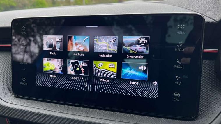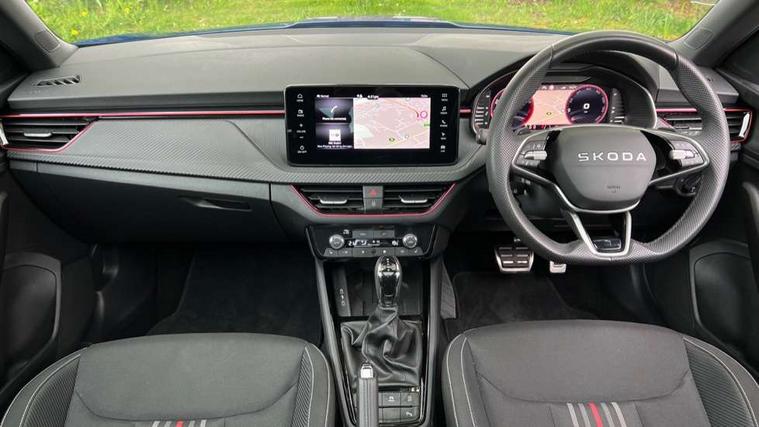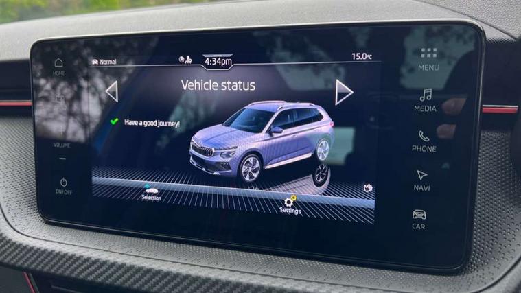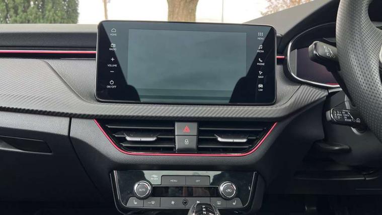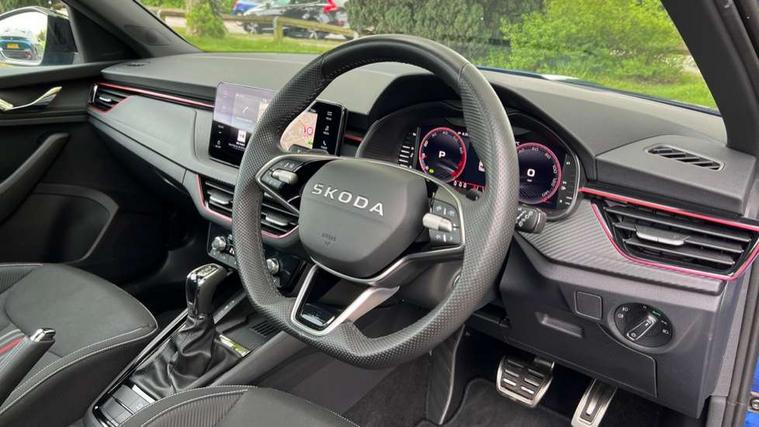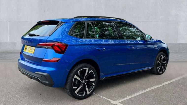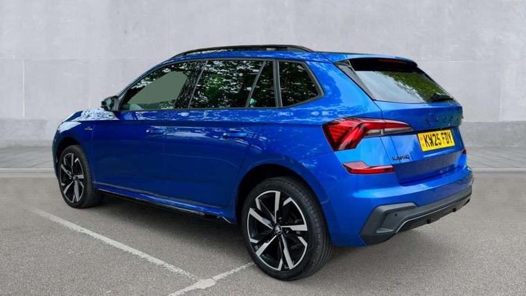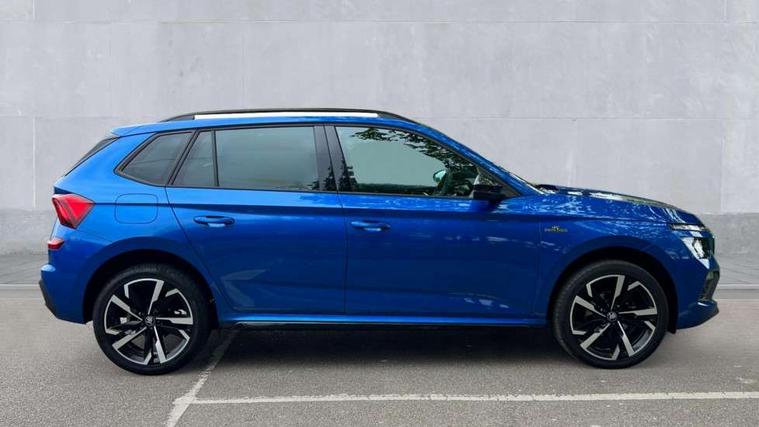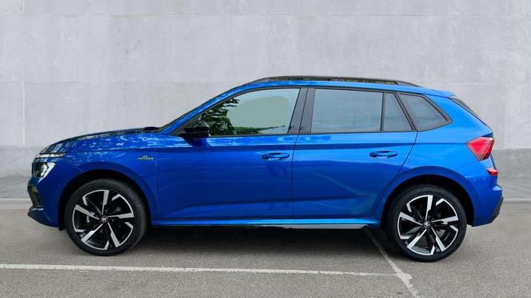 Advanced driver attention and drowsiness monitor, Bluetooth system, E-call, Front assist system, PAS, Rear parking sensors, Rear view camera, Service indicator, Speed limiter, Traffic sign recognition, Virtual cockpit with 10.25" display, Voice control system, Wireless smartlink, 4 USB C ports, 8 Speakers, 9.2" Skoda navigation display, DAB Digital radio, Auto dimming rear view mirror, Automatic headlight control with coming home and leaving home feature, Black door mirrors, Black radiator grille, Black rear diffuser, Black roof spoiler, Body colour bumpers, Body colour door handles, Boot lettering in black, Extended tailgate glass, Fixed panoramic sunroof with black roof rails, Front and rear electric windows, Heated rear window, LED daytime running lights, LED high beam, LED low beam, LED third brake light, Light sensors, Monte carlo plaque, Privacy glass, Rear side wing doors, Rear wiper, Ticket holder inside windscreen, 12V socket in luggage compartment, 3 seat bench in 2nd row, Aluminium pedals, Ambient lighting in white/red, Art leather carbon decor inserts, Art leather carbon door inserts, Black roof lining, Cargo elements, Chrome inner door handles, Driver and passenger sun visors with vanity mirror, Dual zone climate control, Front and rear roof lights, Front centre armrest, Front head restraints, Glove compartment with illumination, Height adjustable driver seat, Height adjustable front passenger seat, Ice scraper, Inner circulation control with pollen filter, ISOFIX on front passenger seat, Isofix preparation for back seats, Leather gearknob and handbrake lever, Manual lumbar support for front seats, Monte Carlo cloth upholstery, Net package and top tether hooks in boot space, Net under rear shelf, Pocket on the back of both front seats include mobile phone pockets, Rake/reach adjustable steering wheel, Reading lights, Rear centre armrests, Red hotstamping, Single front passenger seat, Sports seats, Textile floor mats, Third rear headrest, Top tether for front passenger seat, Umbrella in driver's door, Light and view plus package - Kamiq, 3x3 point rear seatbelts, Airbags - driver and front passenger, Disc brakes, ESP, Extended and predictive pedestrian/cyclist protection, Front passenger airbag deactivation switch, Front side airbags with curtain airbags, Hill hold control, Manual leather parking brake, Manual rear child locks, One tone horn, Seatbelt reminder for driver an co-driver, Traction control, Tyre pressure monitor, Anti-theft alarm system with interior monitoring, backup horn, towing protection and remote central locking with SAFE system, Anti-theft wheel bolts, Electronic engine immobilizer, 18" Ursa black diamond cut alloy wheels,
