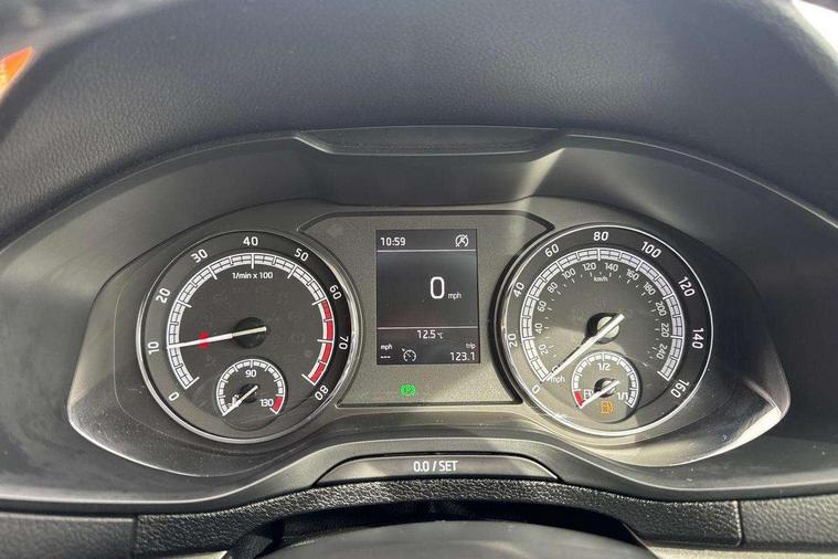 Care connect, Driver alert system, Driver fatigue sensor, Driver profile selection, Electro-mechanical PAS, Outside temperature gauge, Service interval indicator, SmartLink + wireless for Apple and wired for Android, Start/stop system with regenerative braking, USB C Port x 2 in front centre console, WLAN, DAB radio with Bluetooth, USB connection, Acoustic glass, Aero front windscreen wipers with intermittent function, Automatic headlight control system, Black electric window control buttons, Body colour door mirrors and handles, Body coloured bumpers, Electric front and rear windows with child proof lock, Electrically adjustable heated folding and auto dimming door mirrors, Heated rear windscreen, LED rear lights with high functionality, Light assistant (coming/leaving home/tunnel light), Privacy glass, Safety reflectors on front doors, Third brake light, 1.5 litre bottle holders in driver and front passenger door panels, 12V socket in boot, 12v socket in front centre armrest with storage compartment and rear air vents, 2 Folding hooks and nets in boot, 2 Front readings lights for driver and passenger, 3 rear height adjustable headrests, 4 foldable roof handles with rear coat hooks, 4 lashing points on luggage floor, Backrest release, Cargo elements in boot, Chrome inner door handles, Driver and passenger seats height adjust, Folding tables on the front seat backrests, Front head restraints, Front seat and rear pockets, Height adjustable front three point seats belts with tensioners, Height/reach adjust steering wheel, Ice scraper, Illuminated and cooled glovebox, Illuminated luggage compartment, Isofix child seat preparation outer rear, Manual lumbar support for front seats, Net programme in boot, Pen holder, Pollen filter, Rear boot cover, Rear reading lights, Rear seats fixed folding and divided 60:40, Safety vest holder, Seatbelt reminder signalisation and pretensioner for all seats, Storage box in upper central dashboard closed, Sunvisors with illuminated vanity mirrors, Umbrella under passenger seat, Airbags - Front side, head, knee and curtain, Automatic door unlocking in case of crash, Automatic fuel cut off in case of crash, Driver airbag, Electronic parking brake with auto hold function, Emergency rear braking signal, ESC including ABS, MSR, ASR, EDS, HBA, DSR, RBS, MKB and traction control, Front assist radar scanning of the space in front of the car with automatic braking, Hill hold control, Passenger airbag with switch-off function, Pedestrian monitor, Three point seatbelts rear, Two tone horn, Tyre pressure display, Tyre pressure monitor, Alarm with interior monitoring, back up horn and tilt sensor with safe function, Electronic engine immobiliser, Remote central locking with 2 remote folding keys, Chrome framed air vents, Storage on wheel cover,
